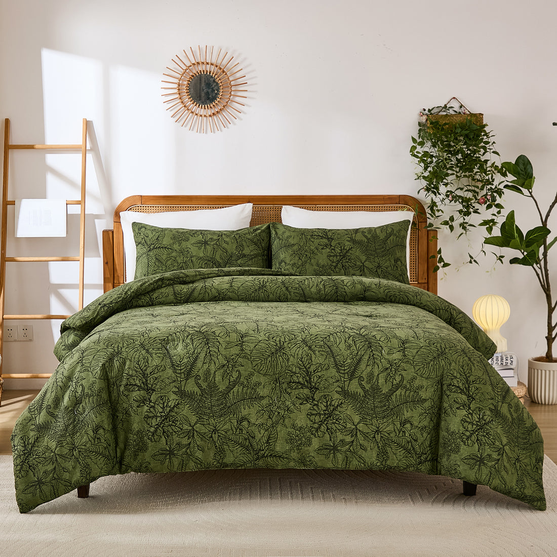 Vintage Floral Cotton Comforter Set – 100% Cotton Botanical Bedding, Soft Breathable All Season Comforter with Pillowcases, Queen/King