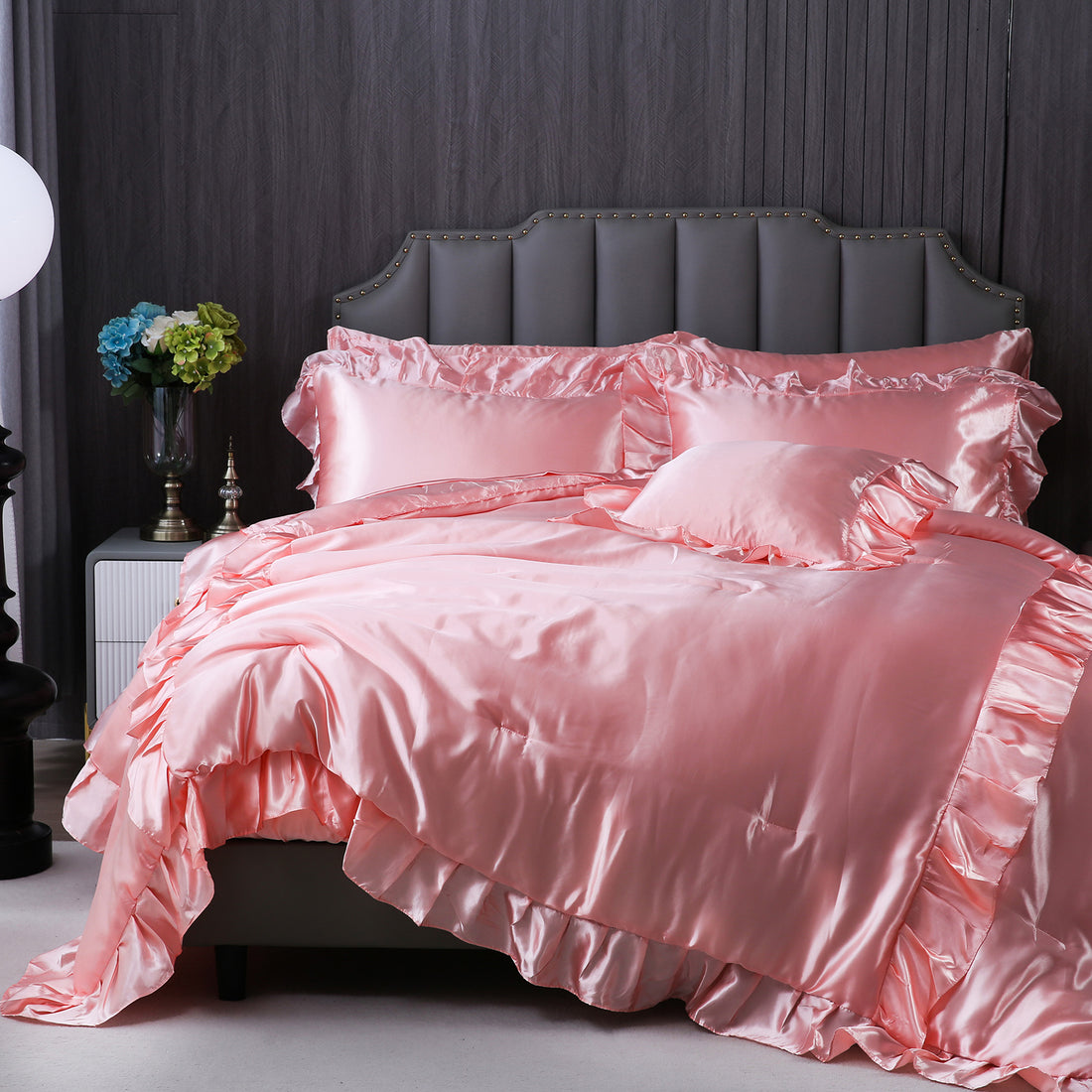 Satin Ruffle Comforter Set Bed in a Bag – 6/8-Piece Luxury Waterfall Bedding with Sheets, Pillowcases & Cushion Cover, Soft Silky Quilt