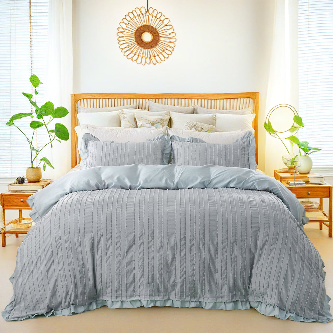 Tufted Ruffle Comforter Set – Soft Lightweight Jacquard Bedding with Fringe Pattern, Shabby Chic Farmhouse Quilt 3-Piece, King/Queen Options
