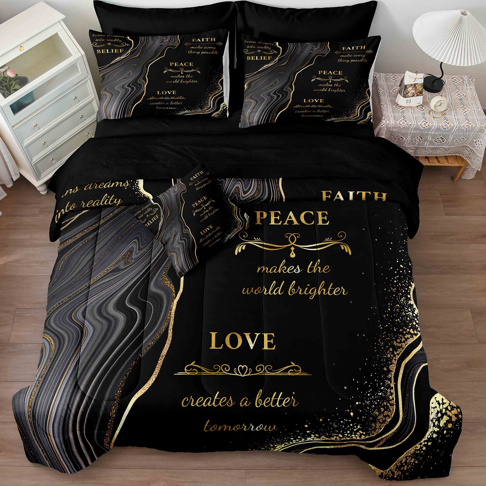 3D Print Bed in a Bag – 8-Piece Comforter with Sheets, Luxury Printed Bedding for All Seasons, Queen/King