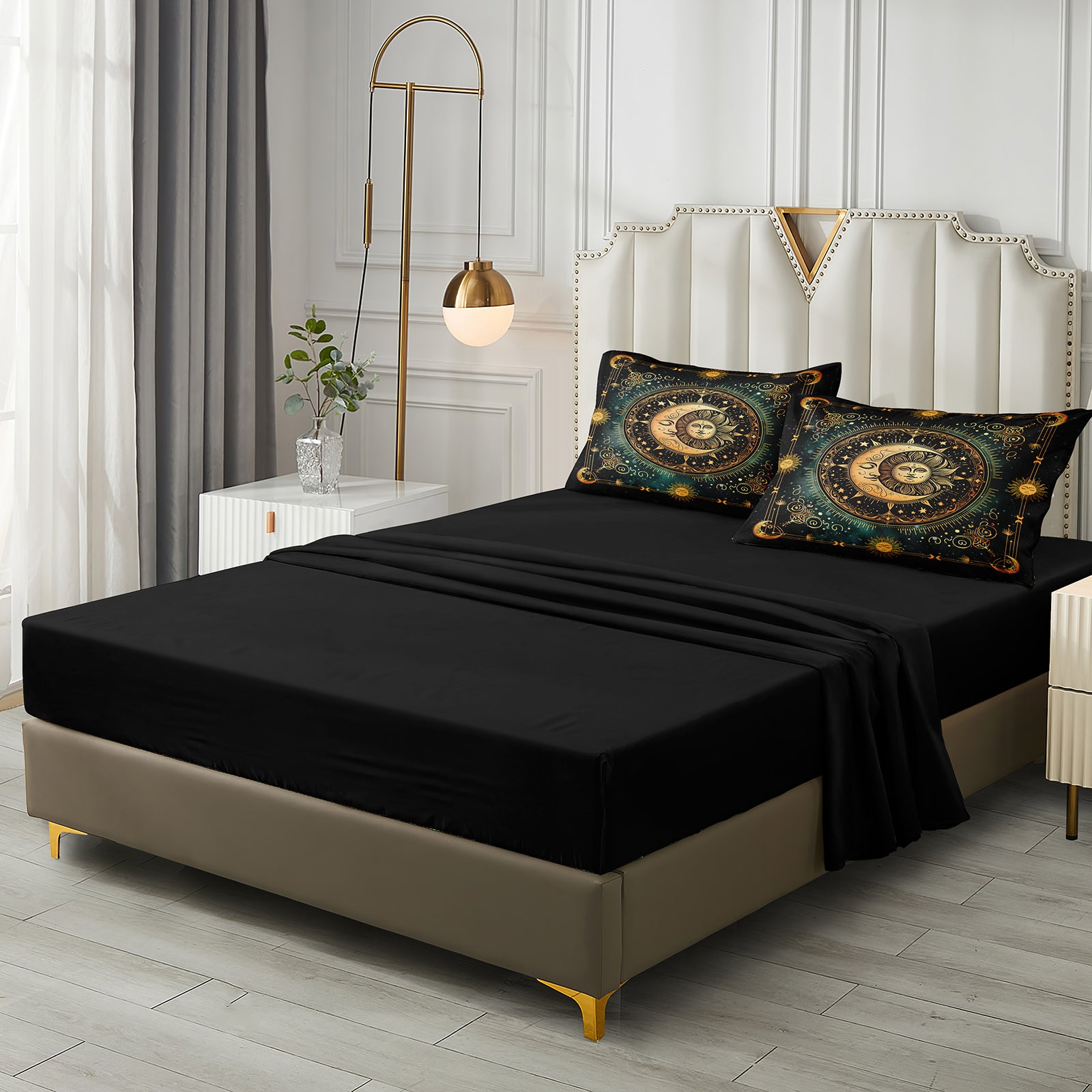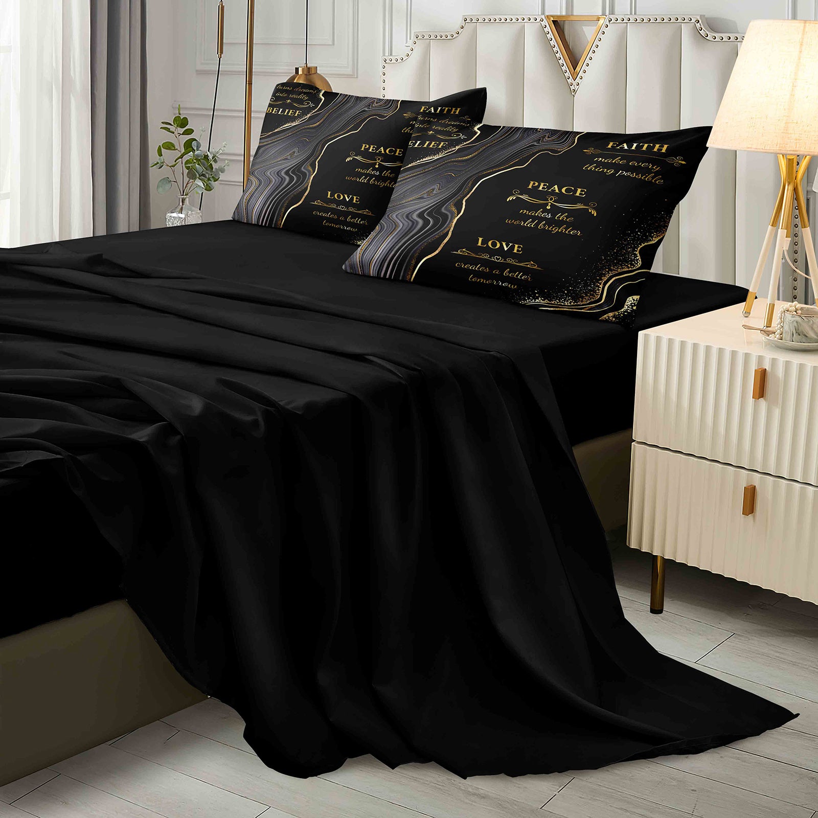 Each 8-piece set includes everything you need for a coordinated bed. You get a comforter, four matching pillowcases, a flat sheet, a deep pocket fitted sheet, and a cushion cover. Available in Queen and King sizes, it creates a clean, complete look in one step.