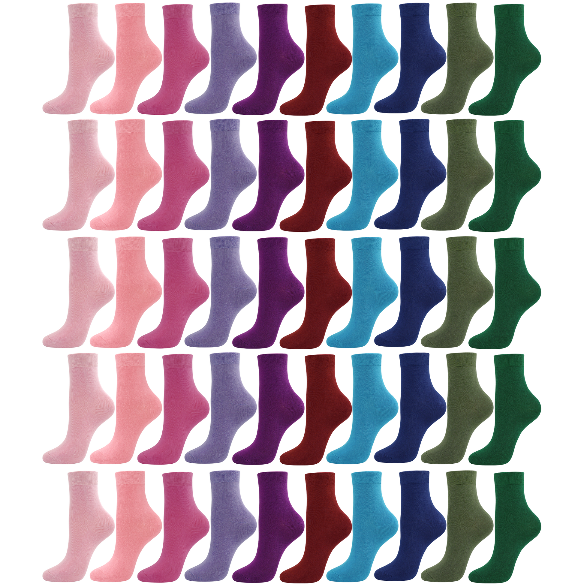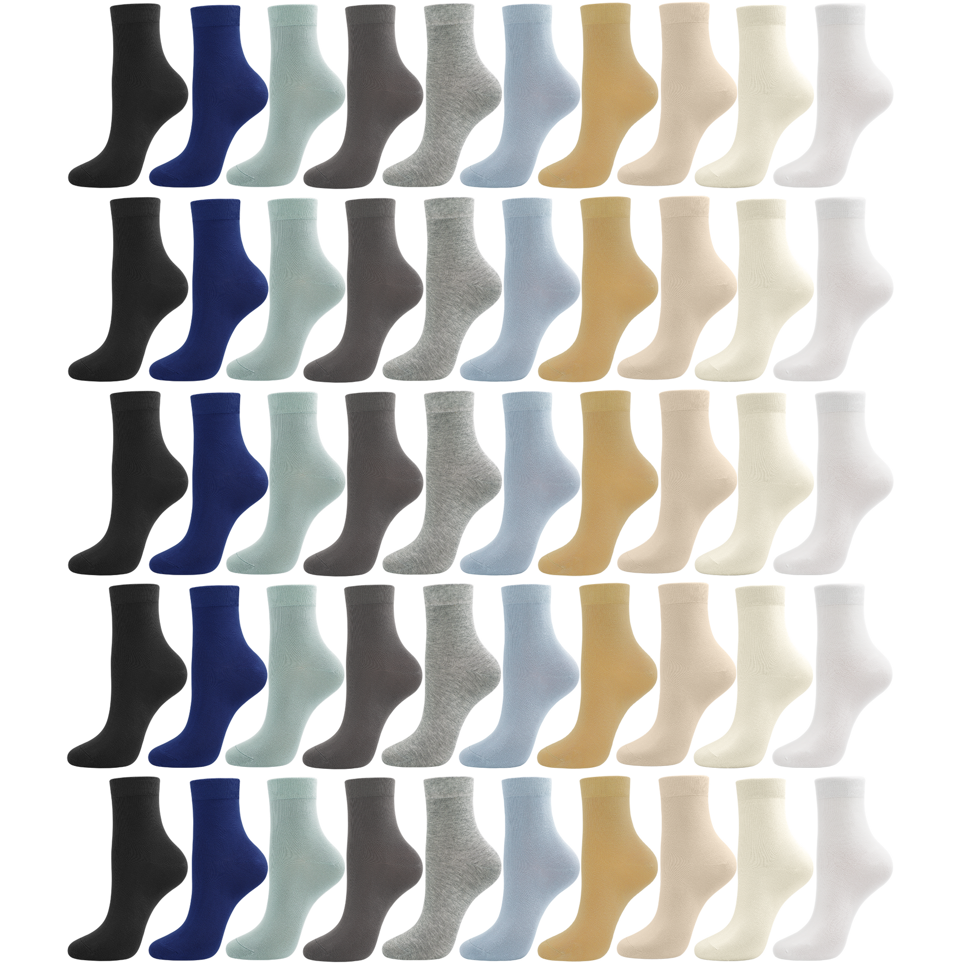 GENTLEAGU Women's Bamboo Crew Socks – Soft, Lightweight, Thin & Stretchy, Assorted Colors, 50-Pair Bulk Wholesale Pack