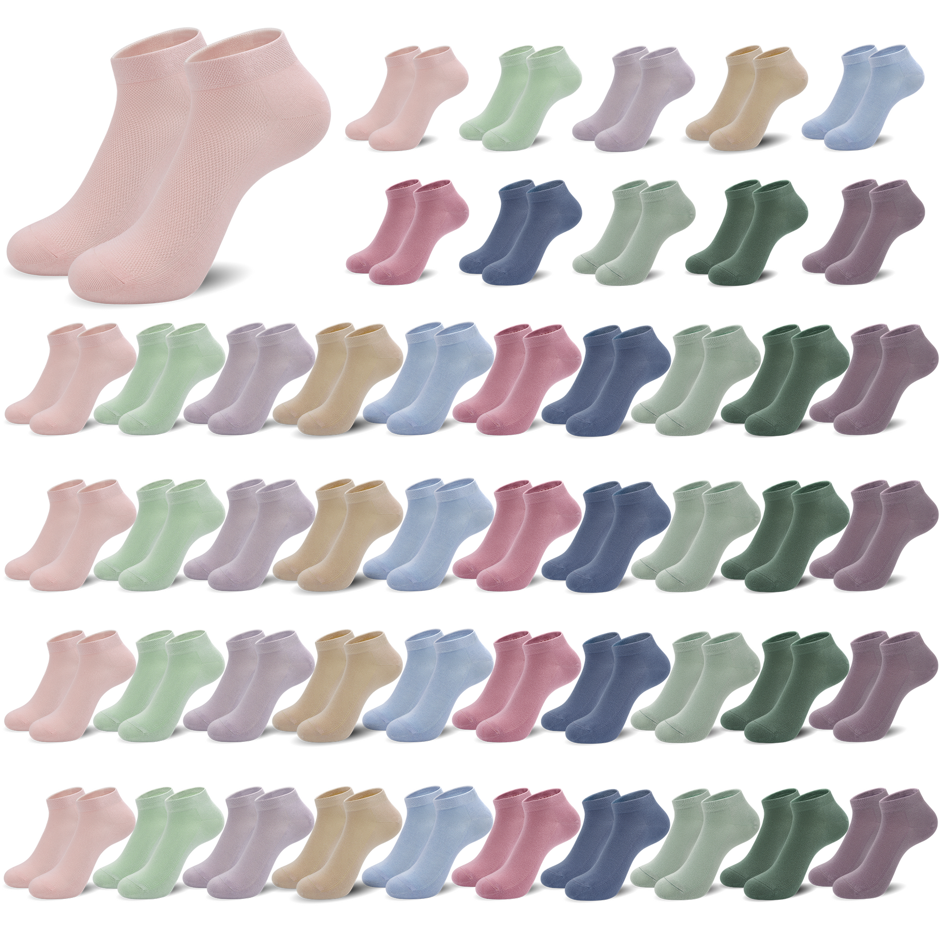 50 Pairs of High-Quality Ankle Socks: Stock up with this bulk pack of 50 pairs, offering unbeatable value for daily wear. Ideal for casual use, family needs, or as a convenient bulk option for long-term rotation.