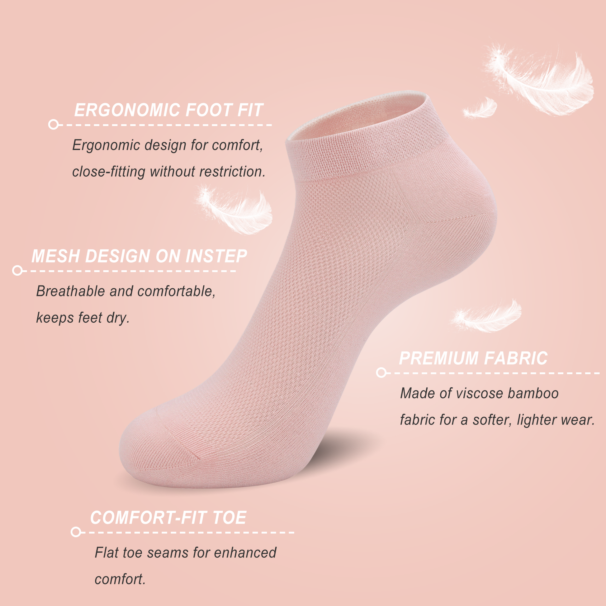Soft & Breathable Viscose Bamboo Fabric: Made from 90% viscose derived from bamboo, these ultra-light socks are gentle on the skin, ensuring superior airflow to keep your feet cool, dry, and odor-free all day long.
