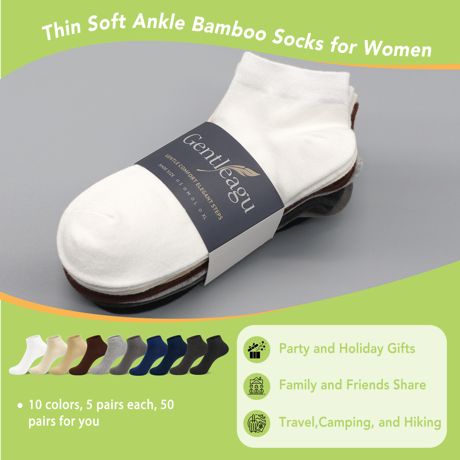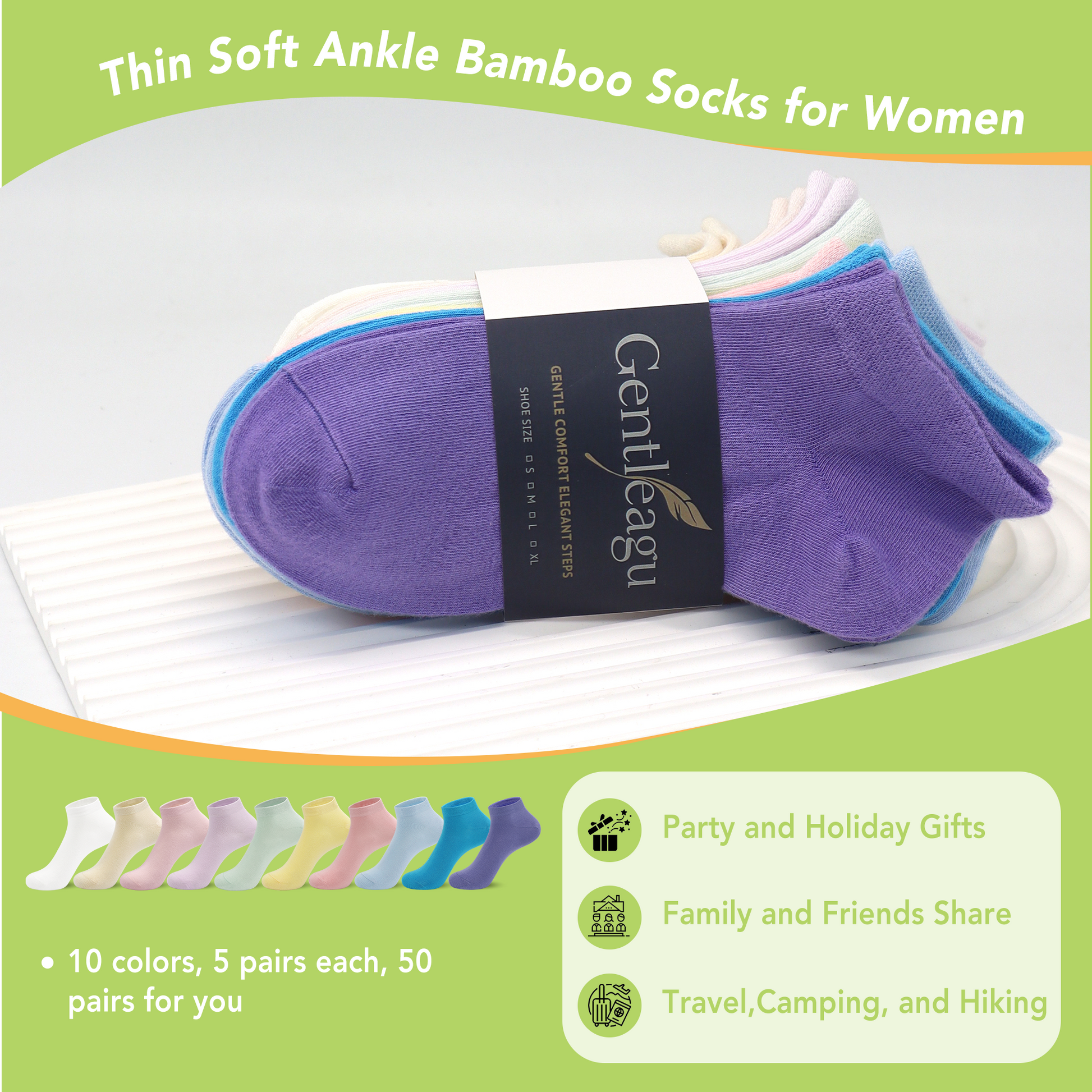 GENTLEAGU Women's Viscose Bamboo Ankle Socks - Thin, Soft & Breathable Assorted Color, 50 Pairs Wholesale Family Bulk Pack