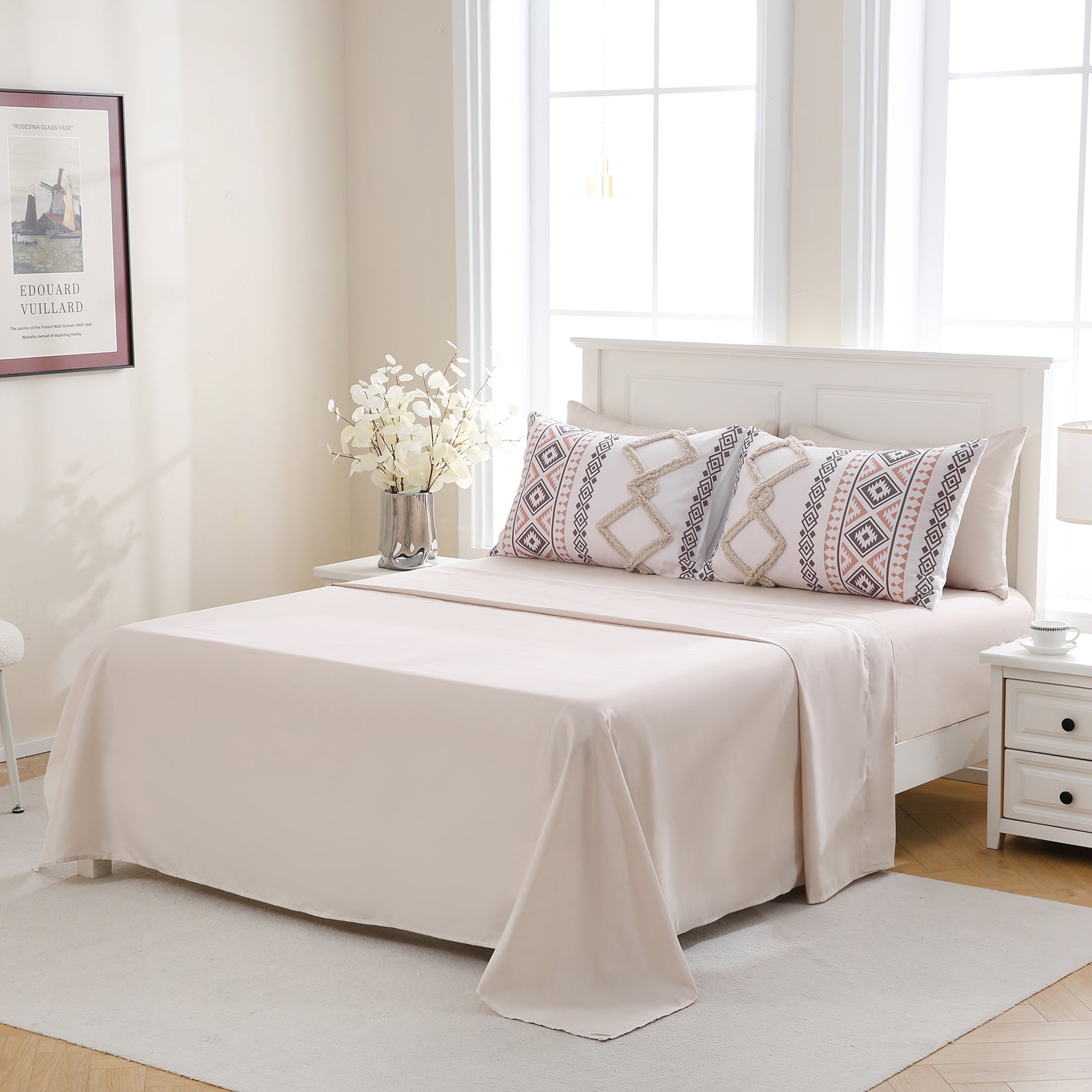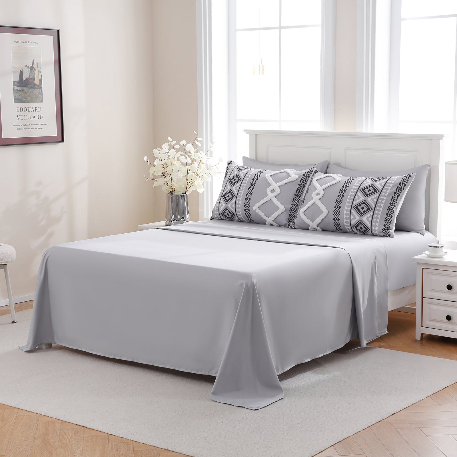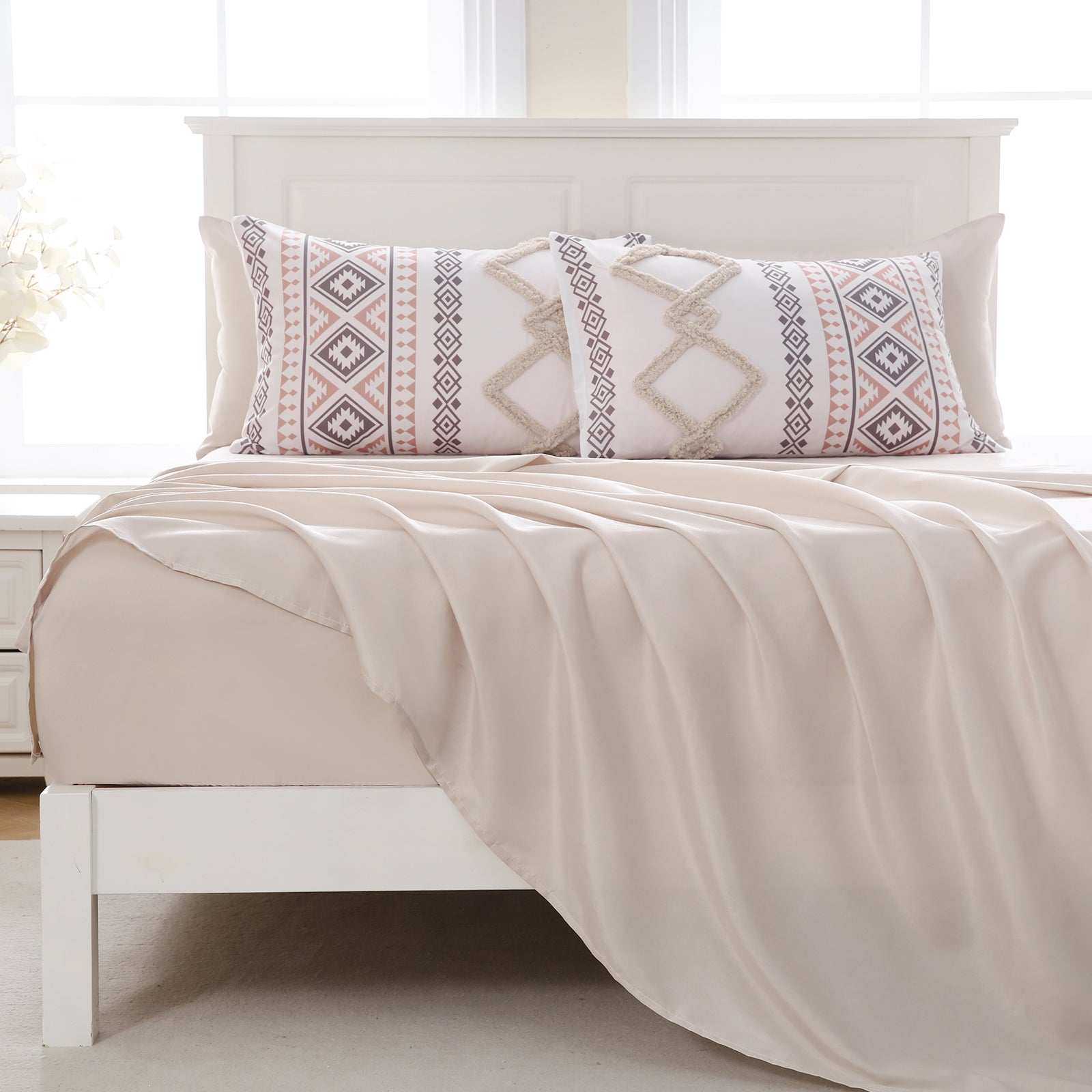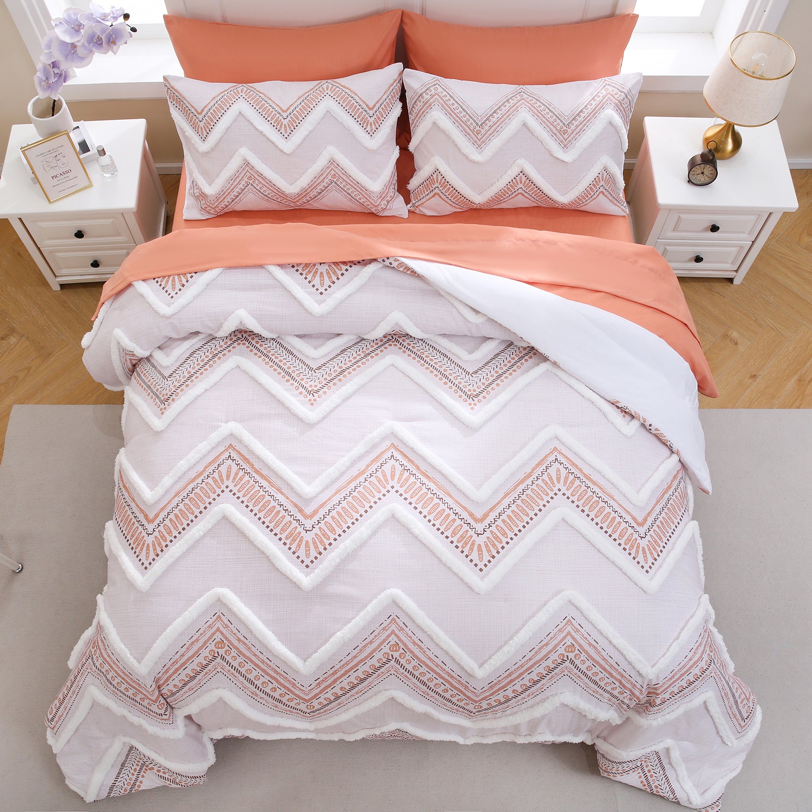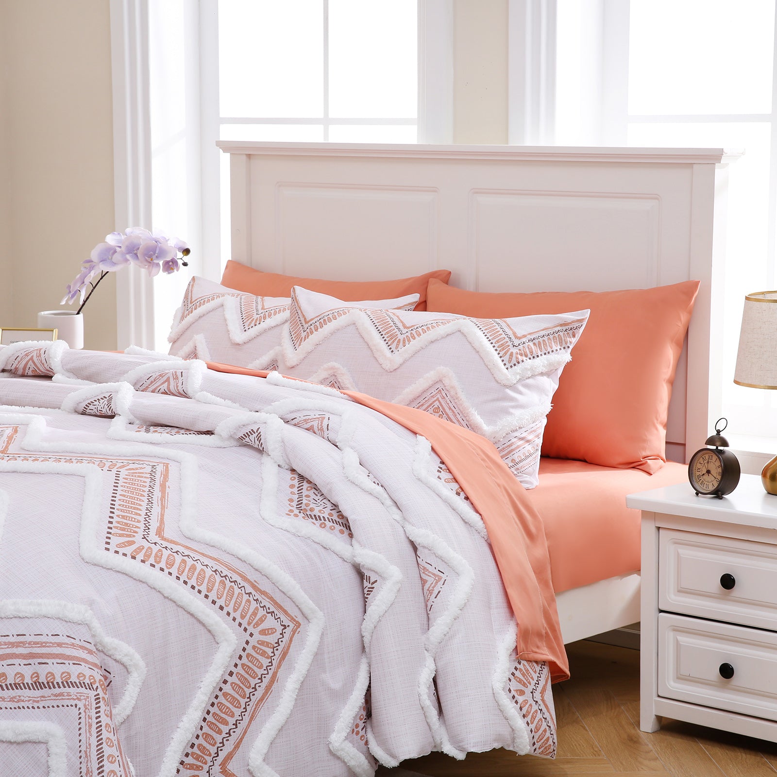 Refresh your bedroom with the 7-Piece Tufted Comforter Set Bed in a Bag, blending boho chic style with everyday comfort. Featuring hand-embellished chenille tufting and geometric Aztec-inspired designs, this set adds warmth and texture for a farmhouse or bohemian look.