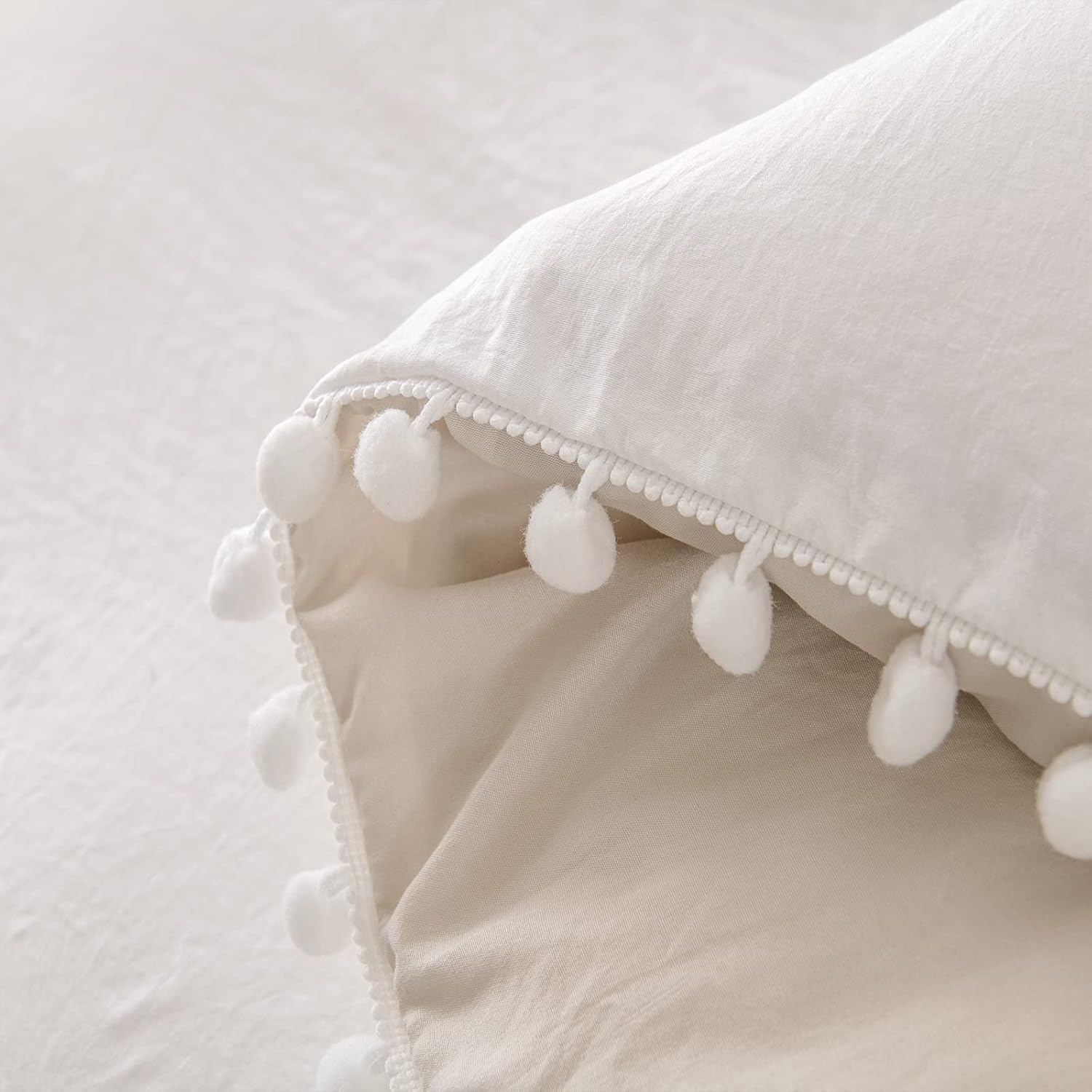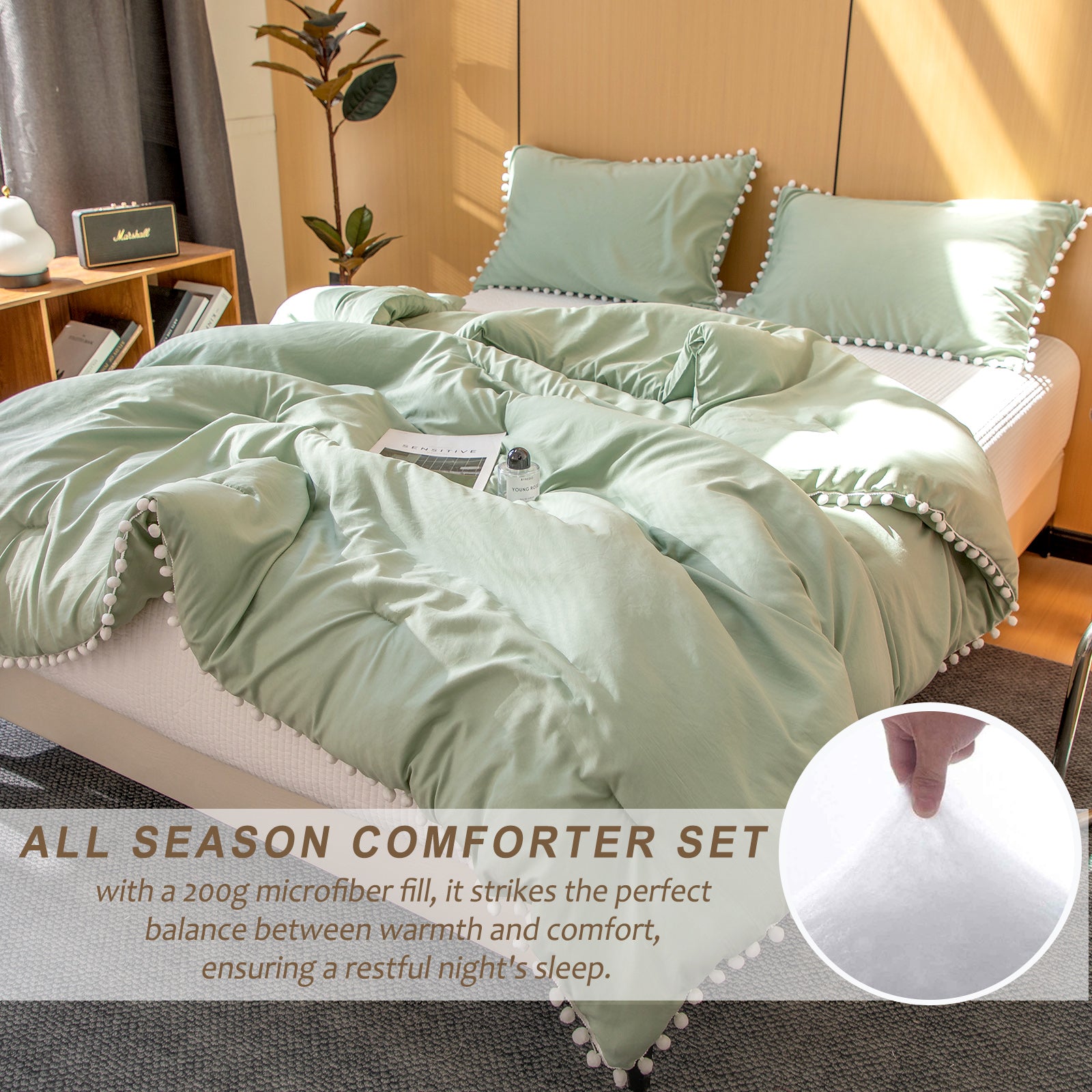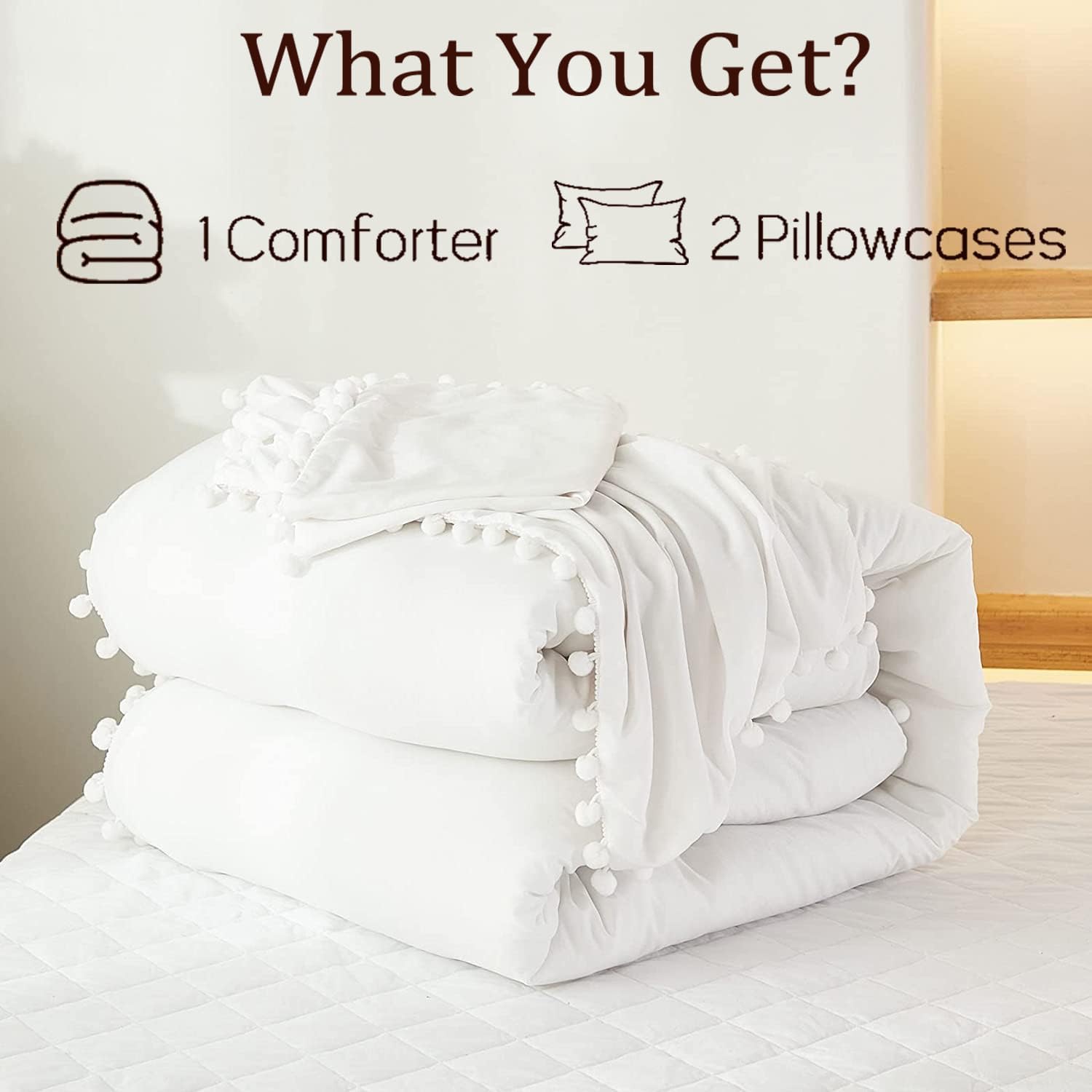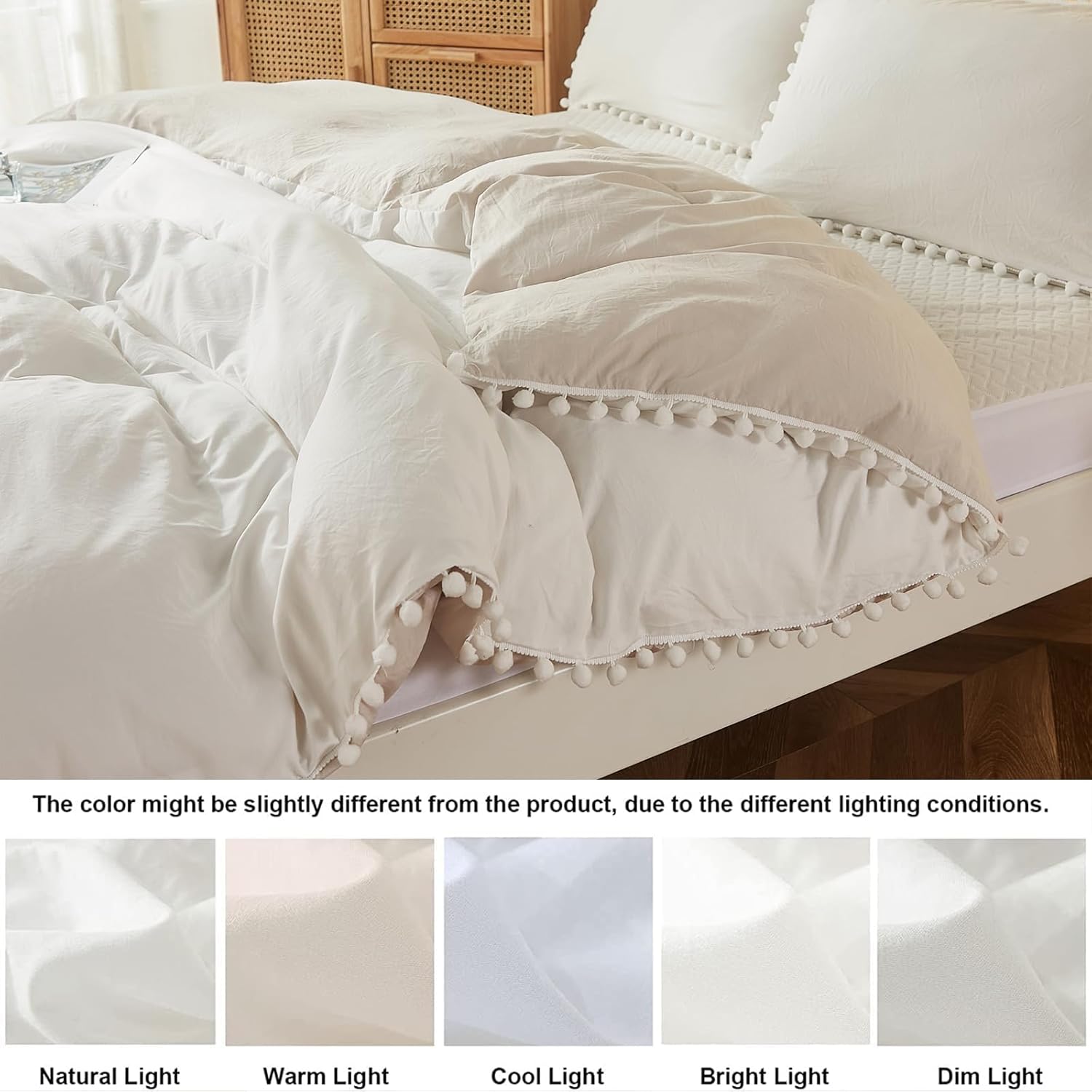 Boho Pom Pom Comforter Set – Soft Lightweight All Season Bedding with Decorative Fringe, Extra Soft Microfiber, Twin/Queen/King