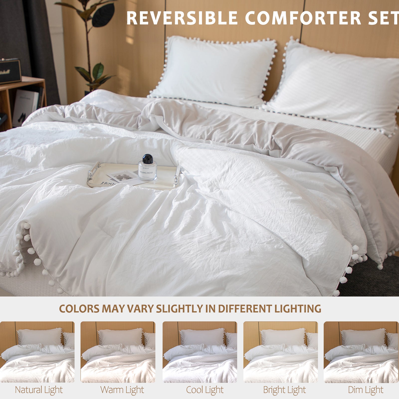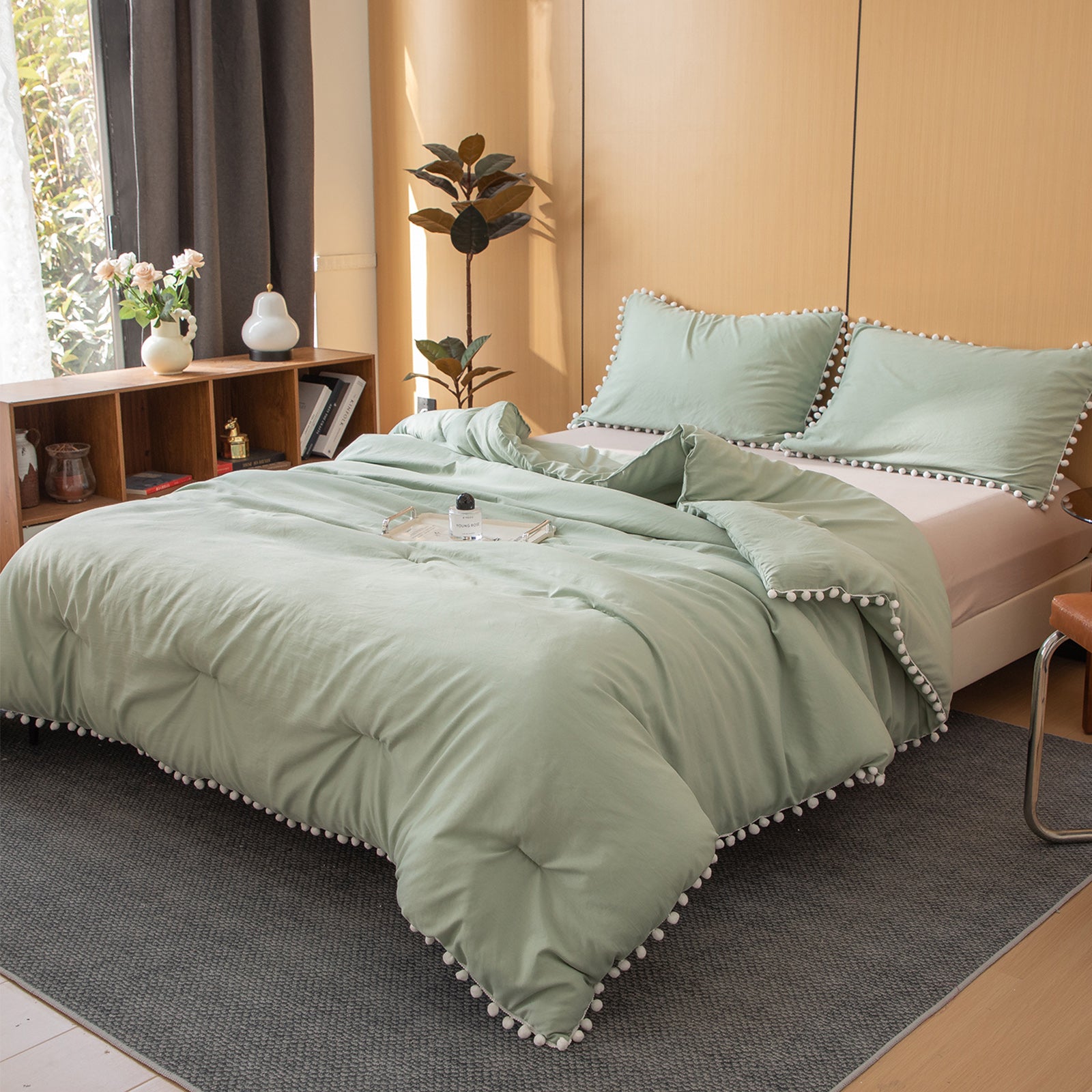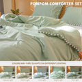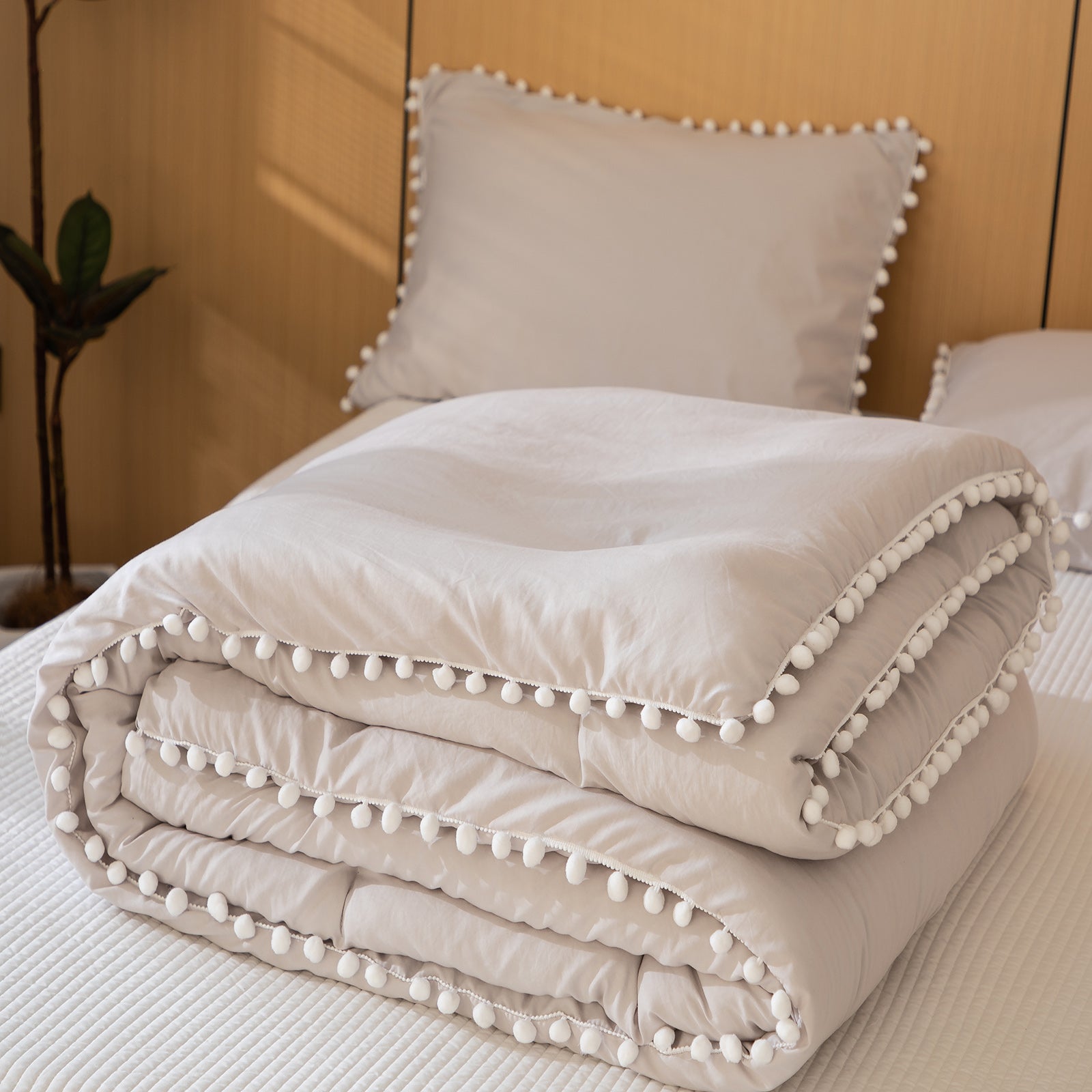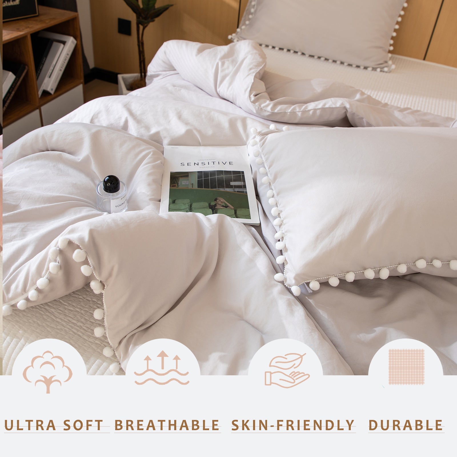 Boho Pom Pom Comforter Set – Soft Lightweight All Season Bedding with Decorative Fringe, Extra Soft Microfiber, Twin/Queen/King