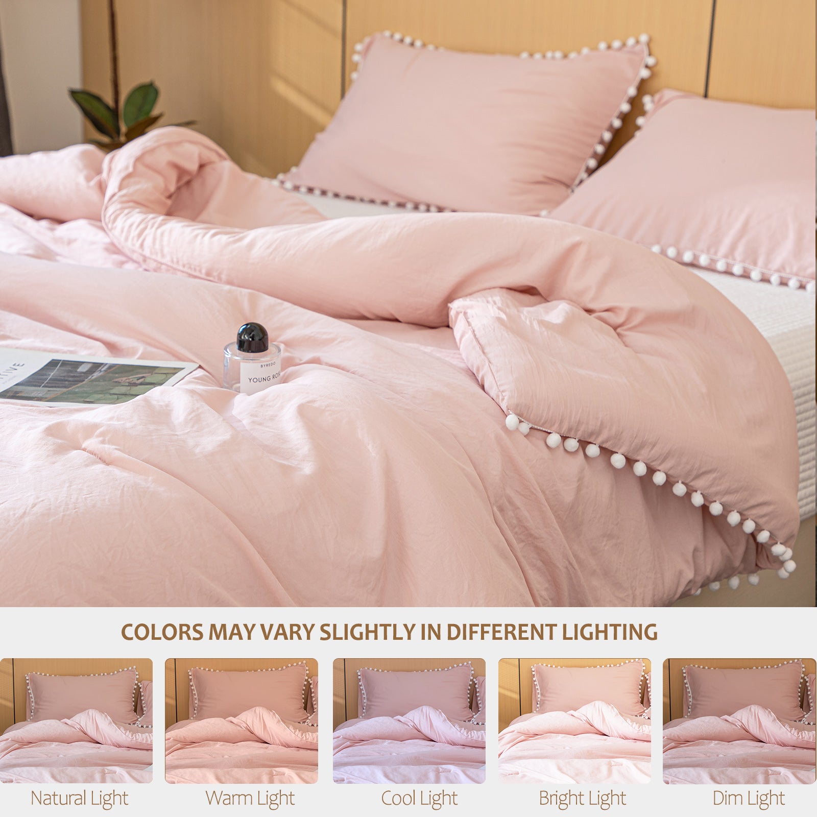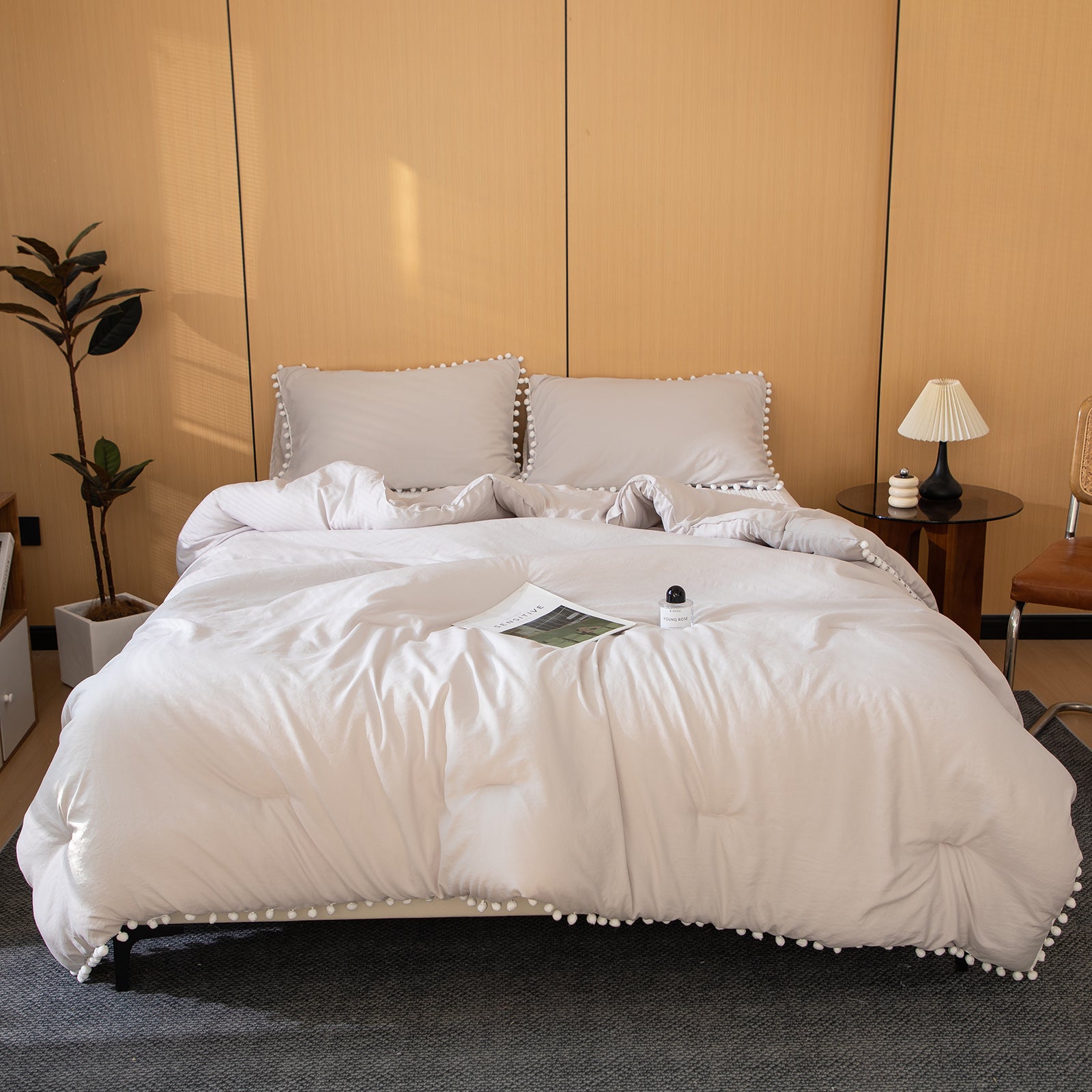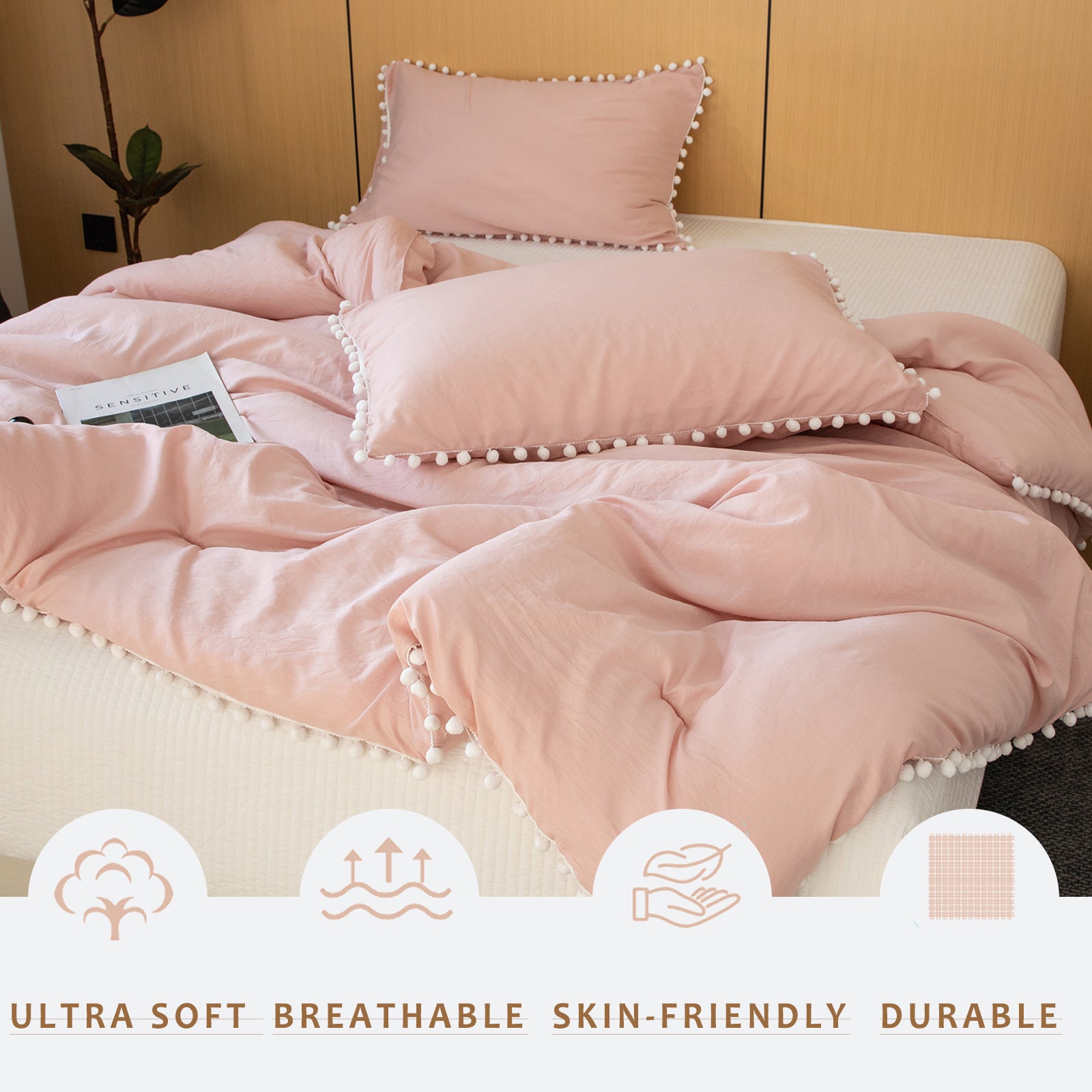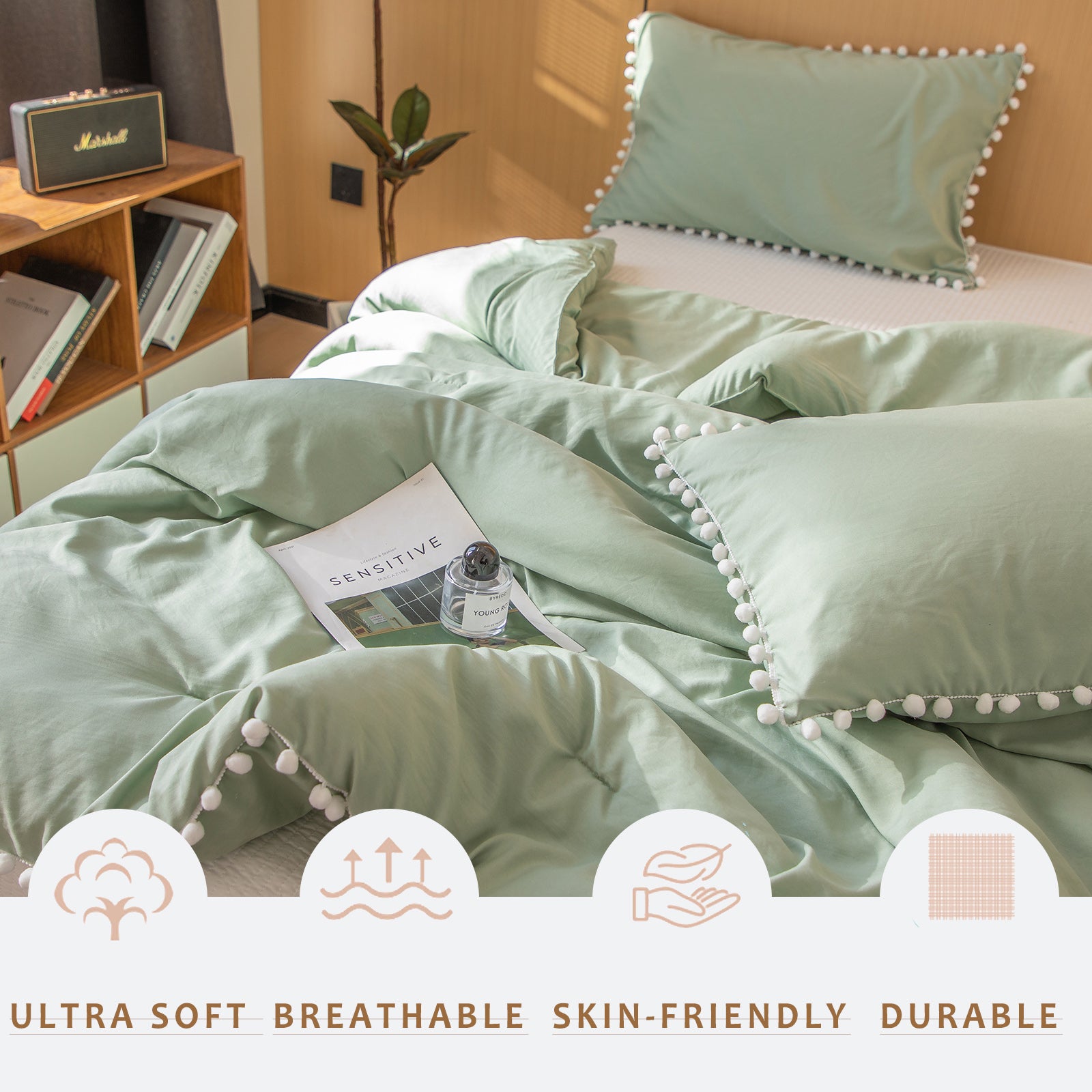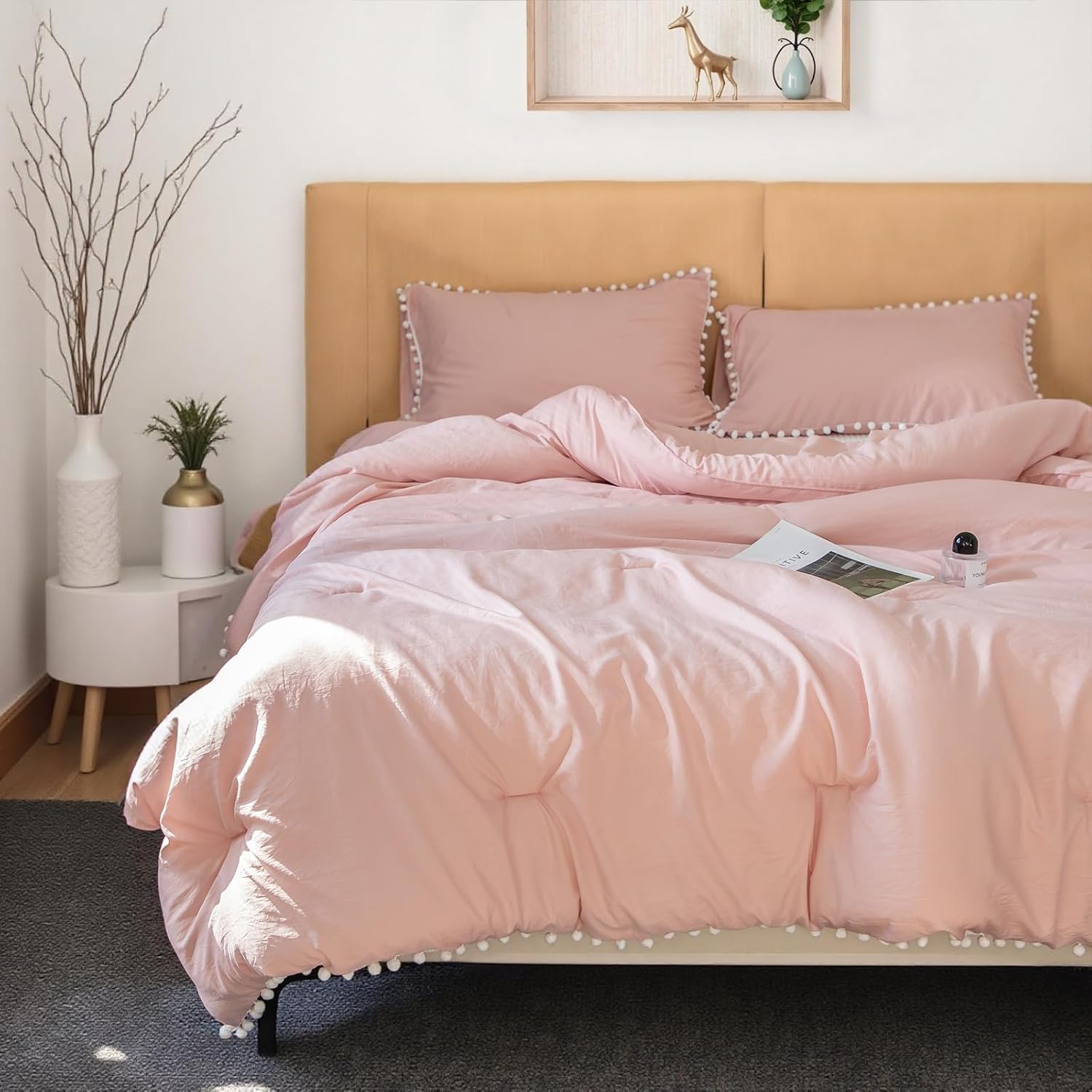 Boho Pom Pom Comforter Set – Soft Lightweight All Season Bedding with Decorative Fringe, Extra Soft Microfiber, Twin/Queen/King