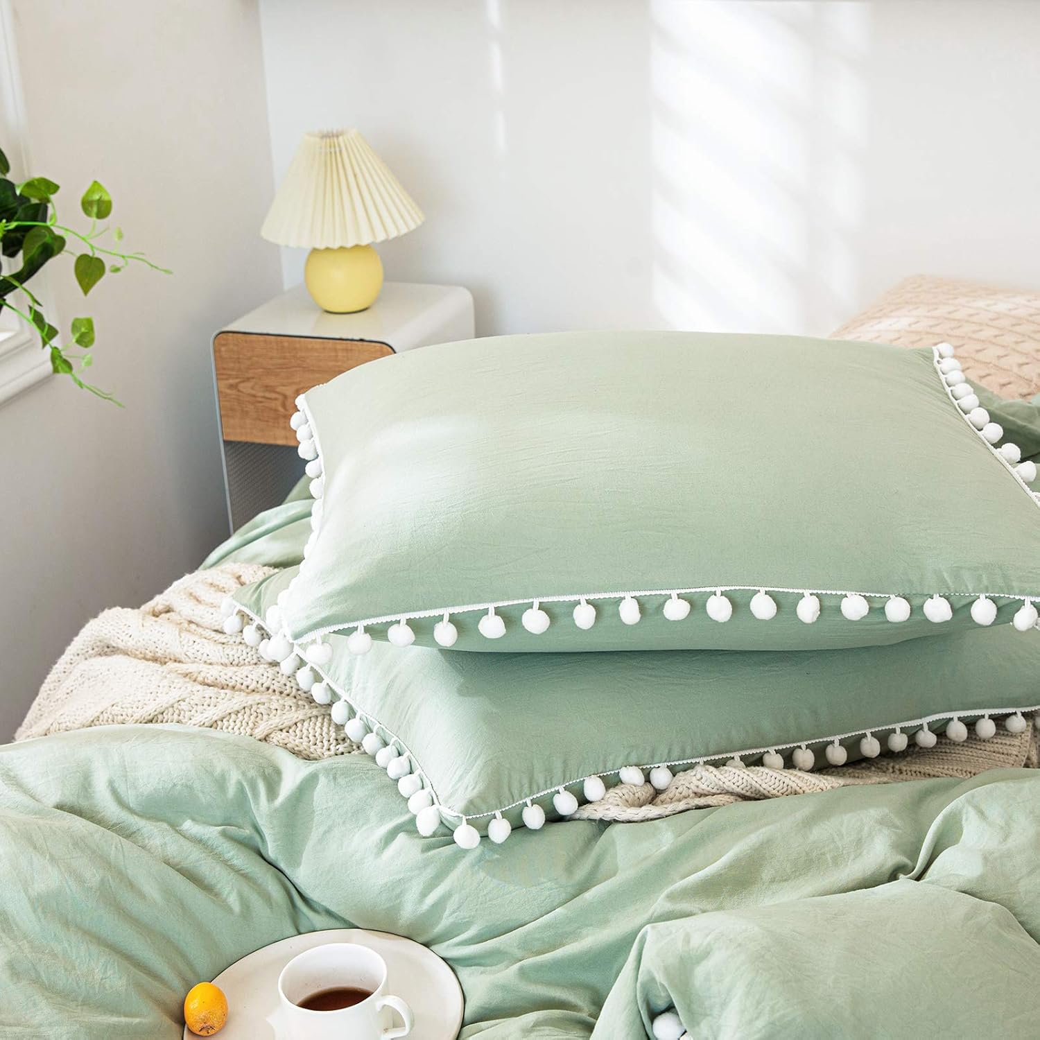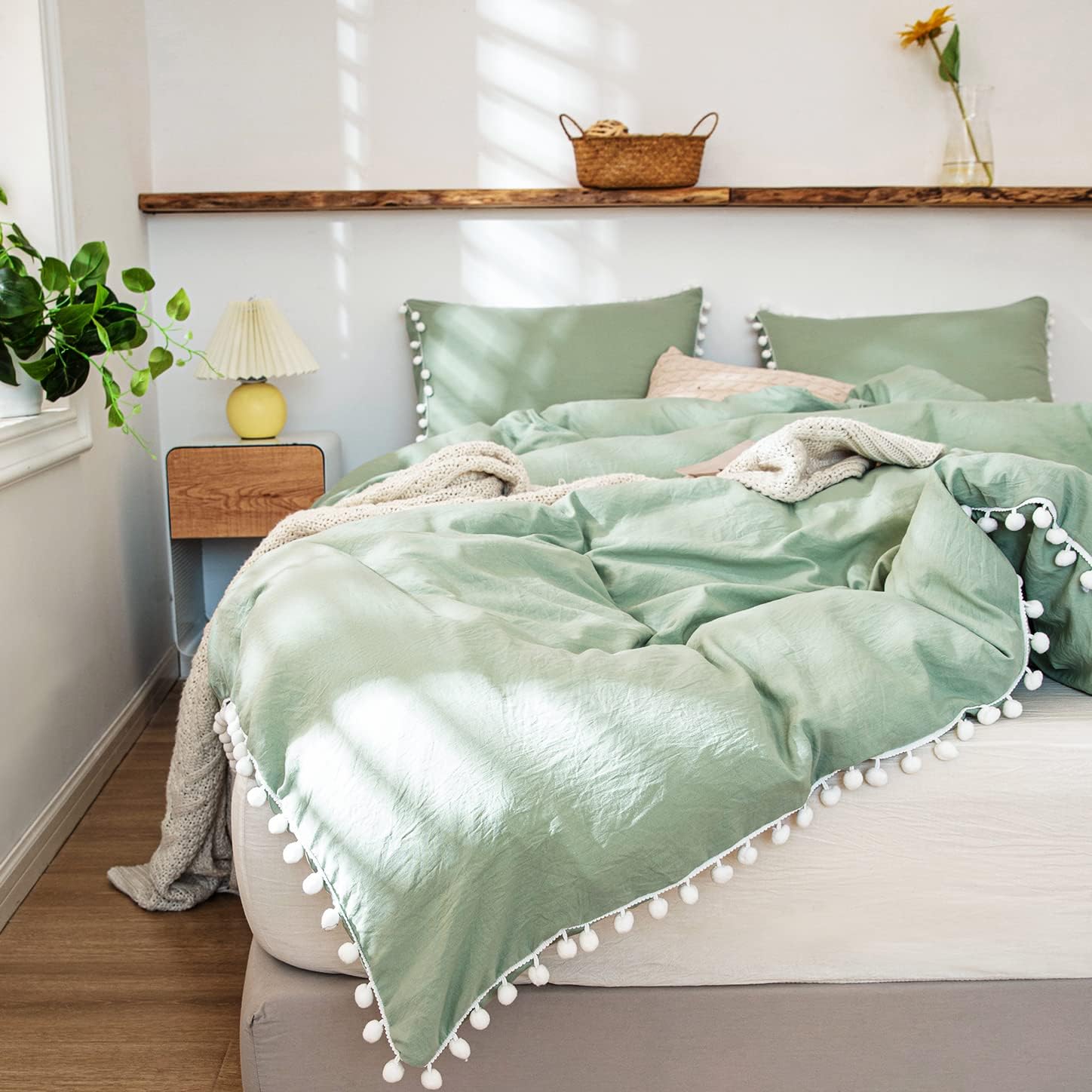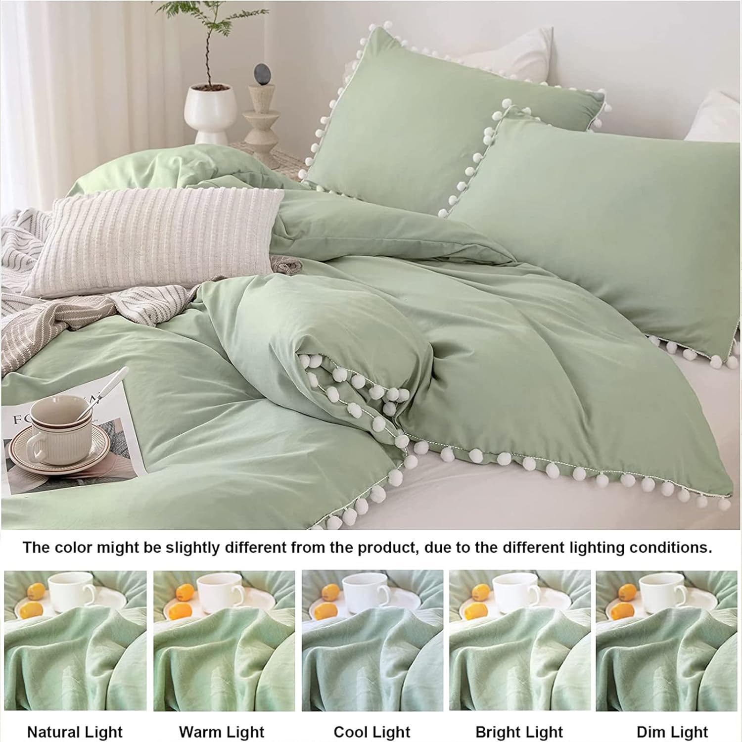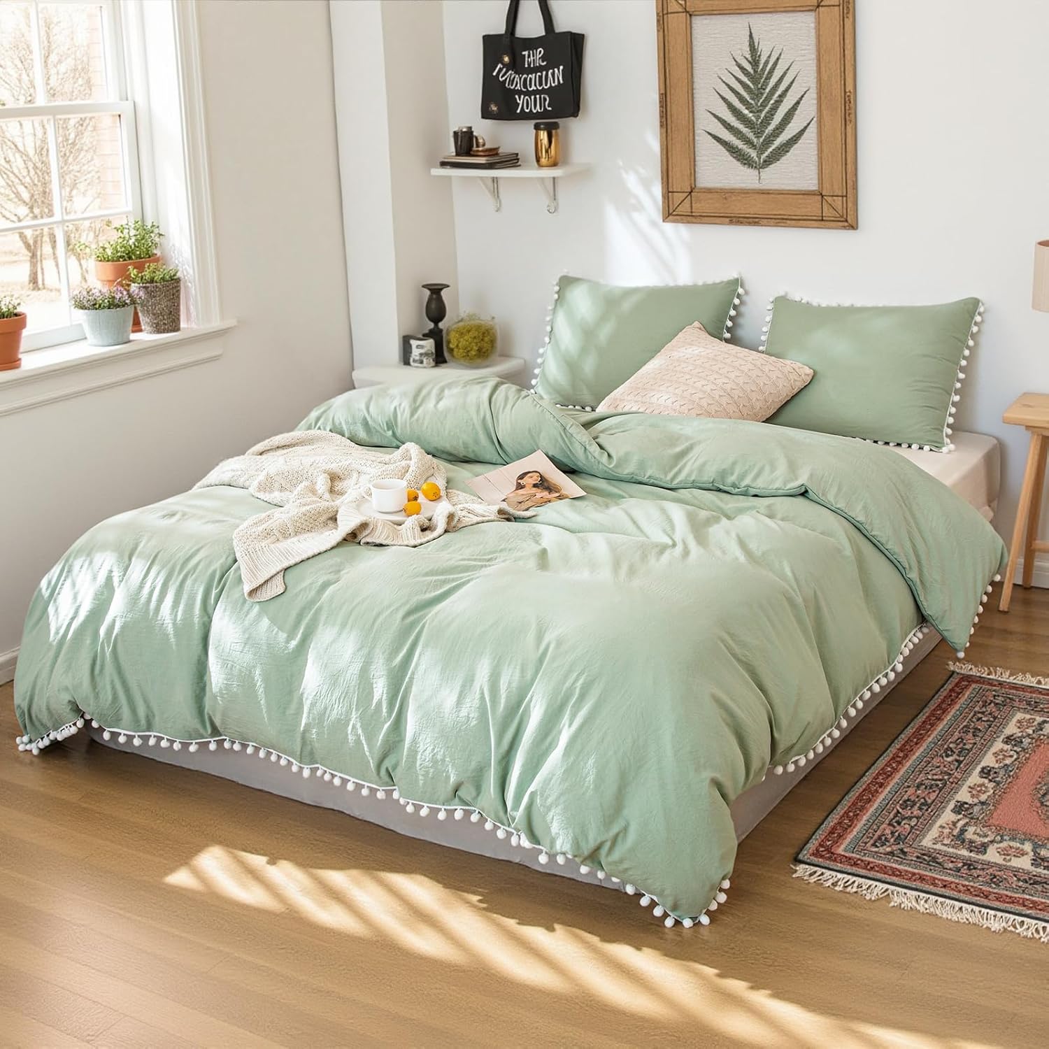 Boho Pom Pom Comforter Set – Soft Lightweight All Season Bedding with Decorative Fringe, Extra Soft Microfiber, Twin/Queen/King
