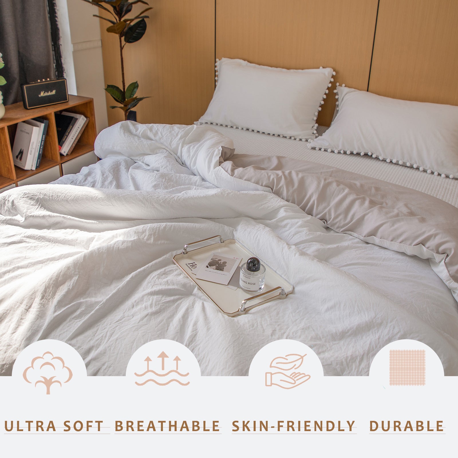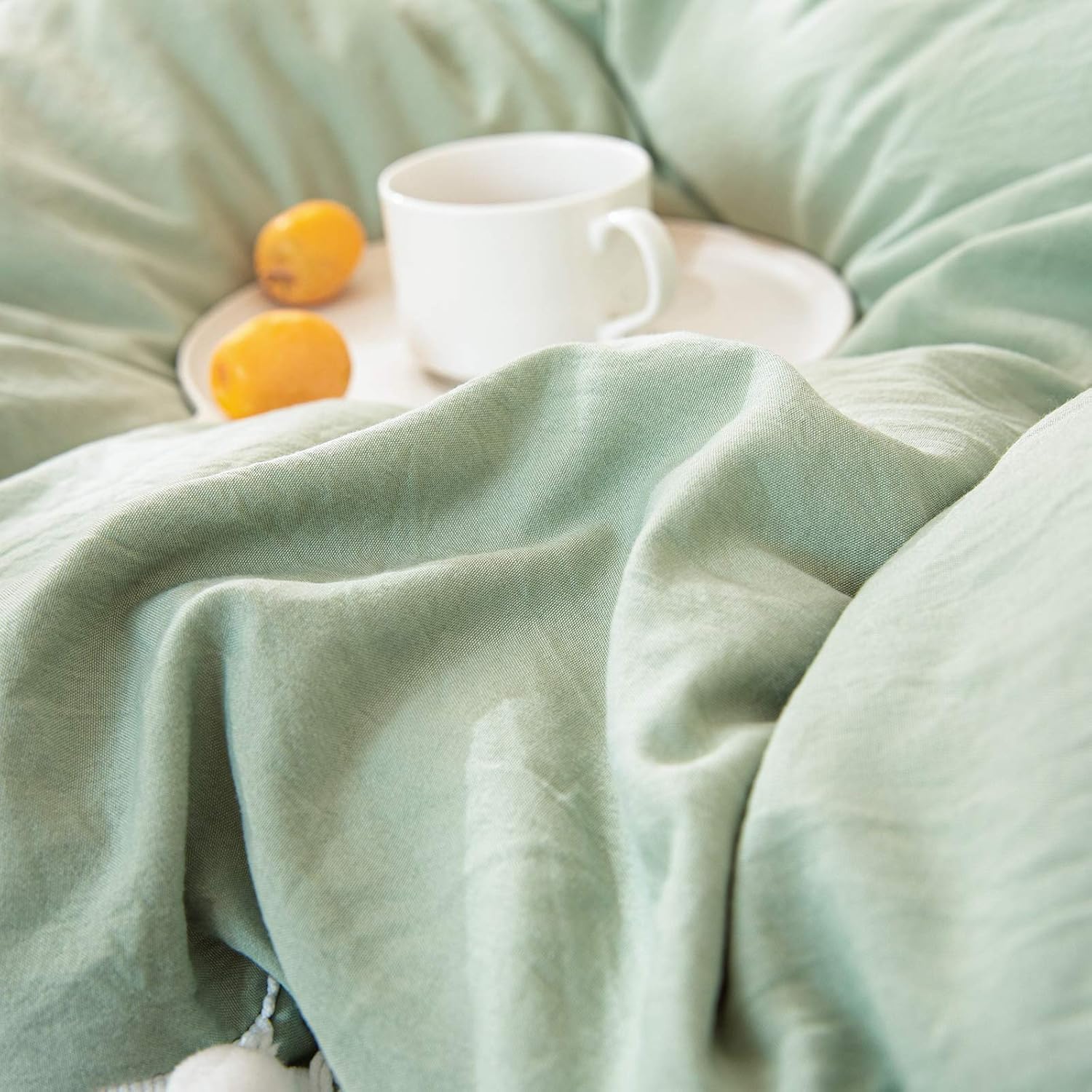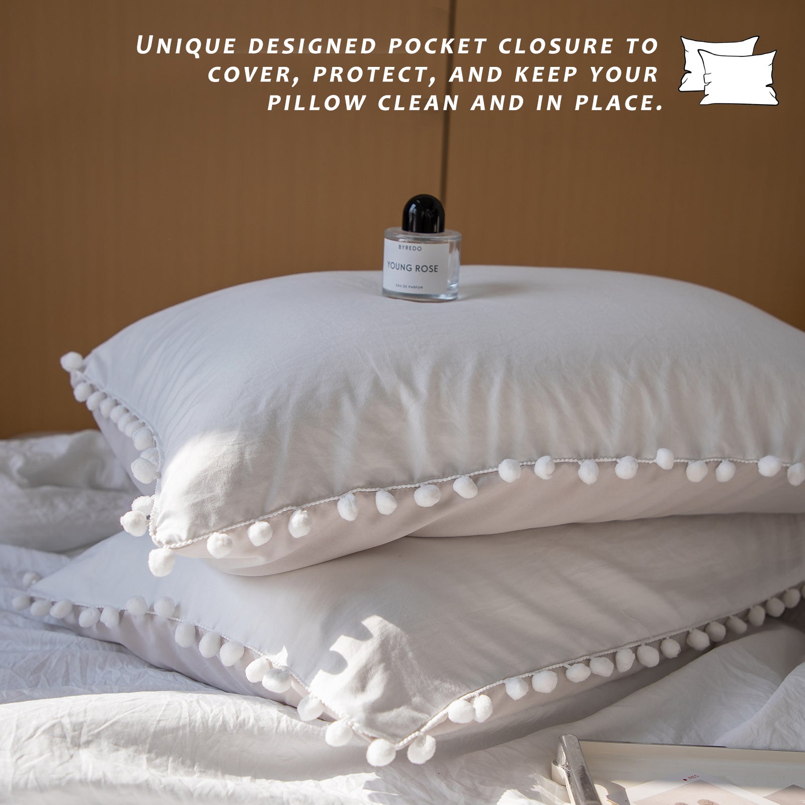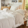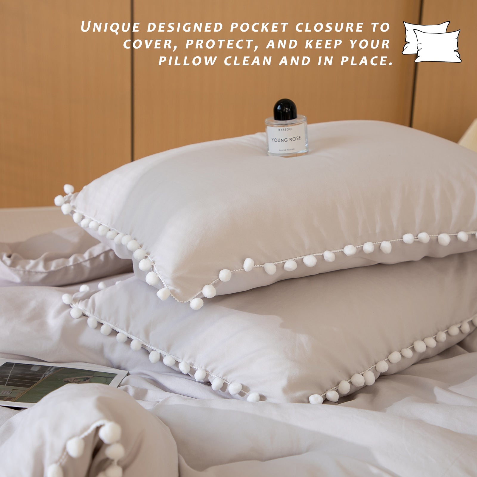 Boho Pom Pom Comforter Set – Soft Lightweight All Season Bedding with Decorative Fringe, Extra Soft Microfiber, Twin/Queen/King
