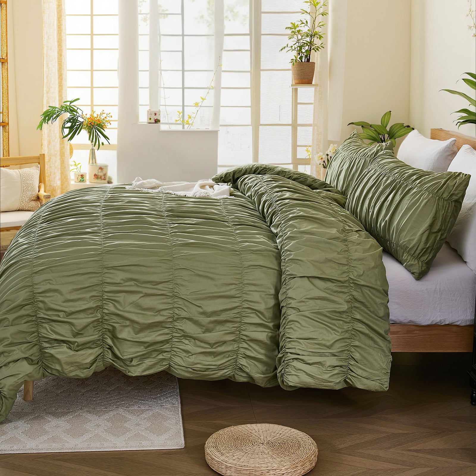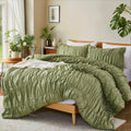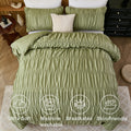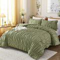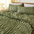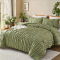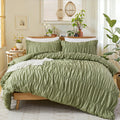 Boho Ruched Cotton Duvet Cover Set – 3-Piece Wrinkle-Soft Bedding with Zipper and Corner Tie