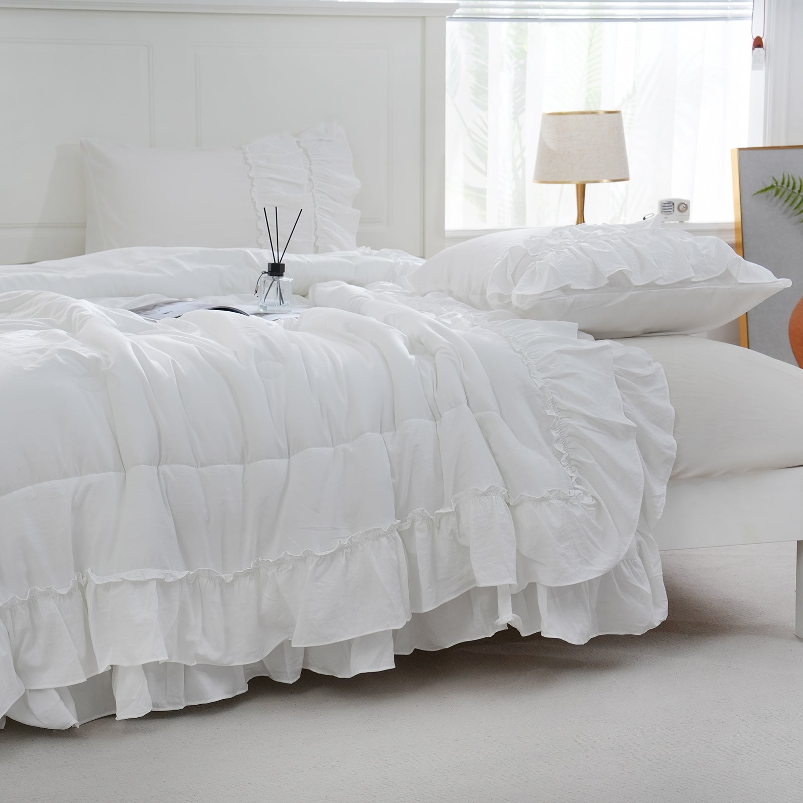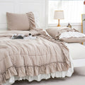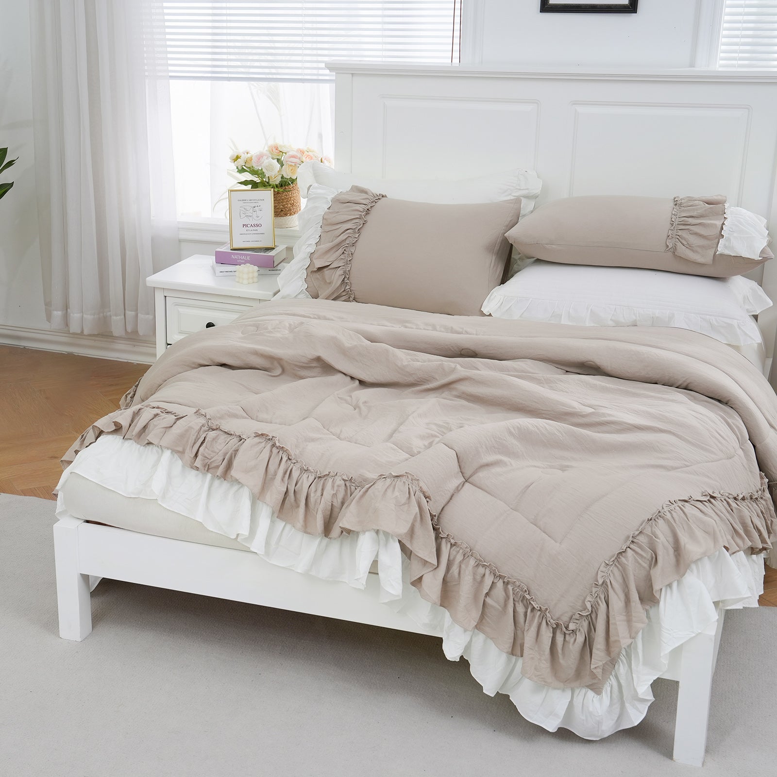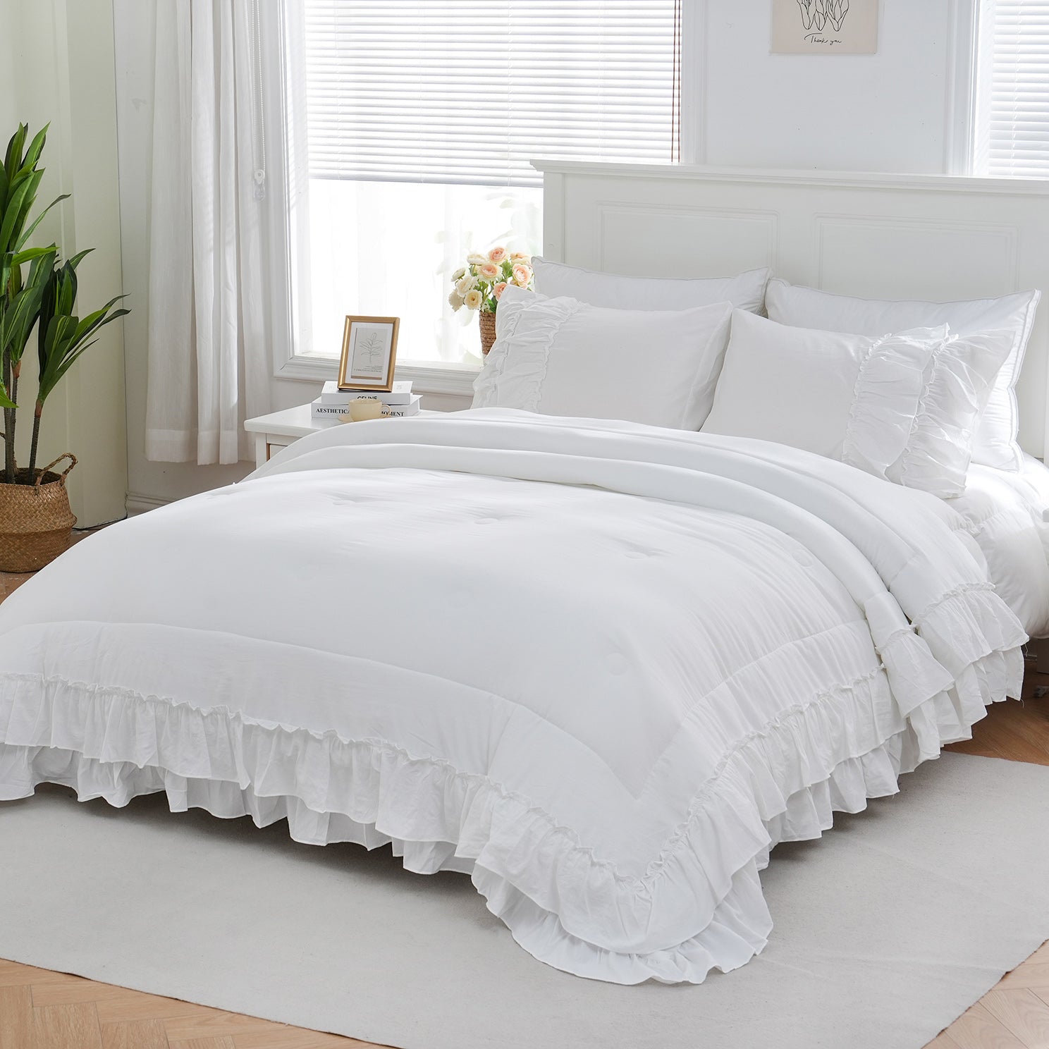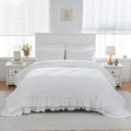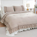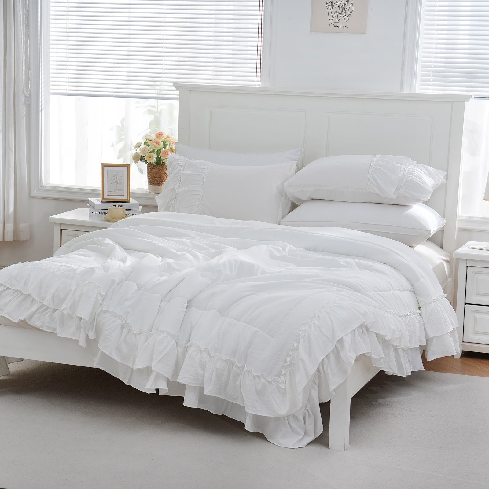 Boho Ruffle Comforter Set – 3-Piece Shabby Chic Bedding with Double-Layer Hand-Sewn Ruffles, Soft Microfiber Quilt for All Seasons