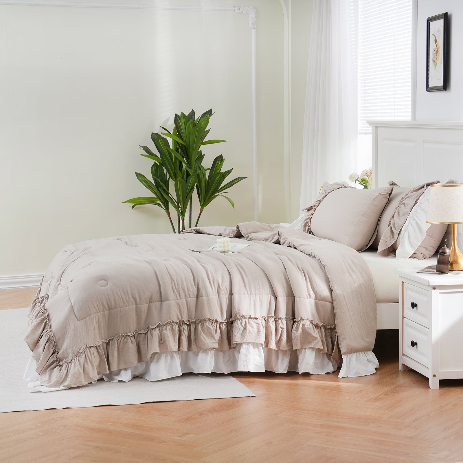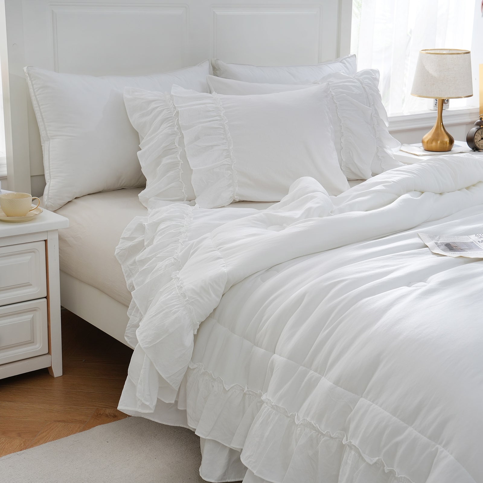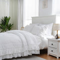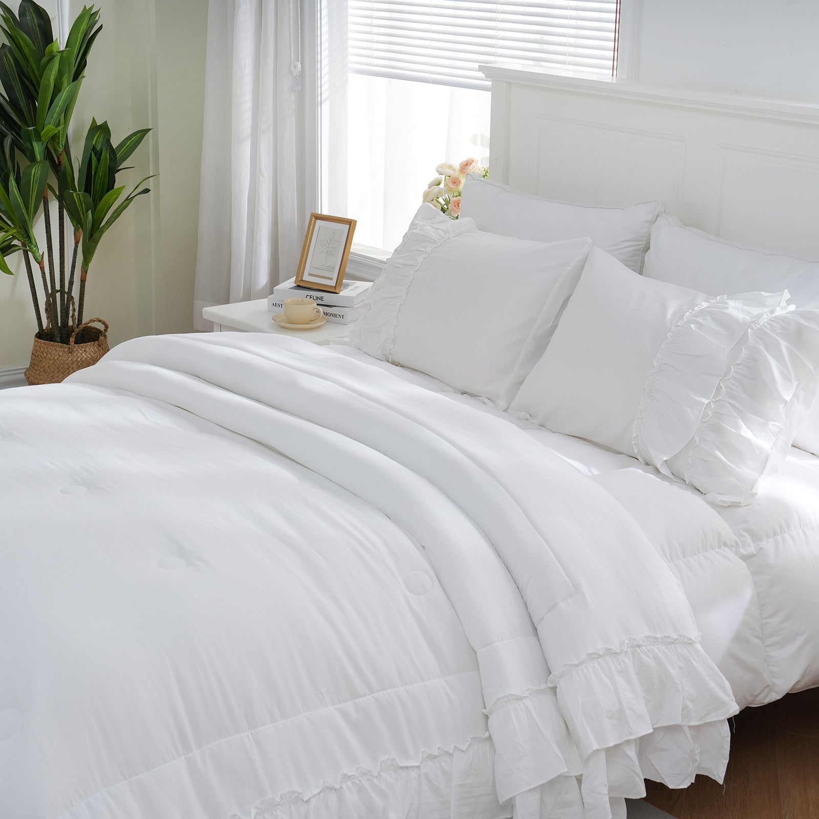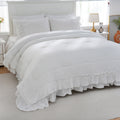 Boho Ruffle Comforter Set – 3-Piece Shabby Chic Bedding with Double-Layer Hand-Sewn Ruffles, Soft Microfiber Quilt for All Seasons