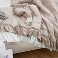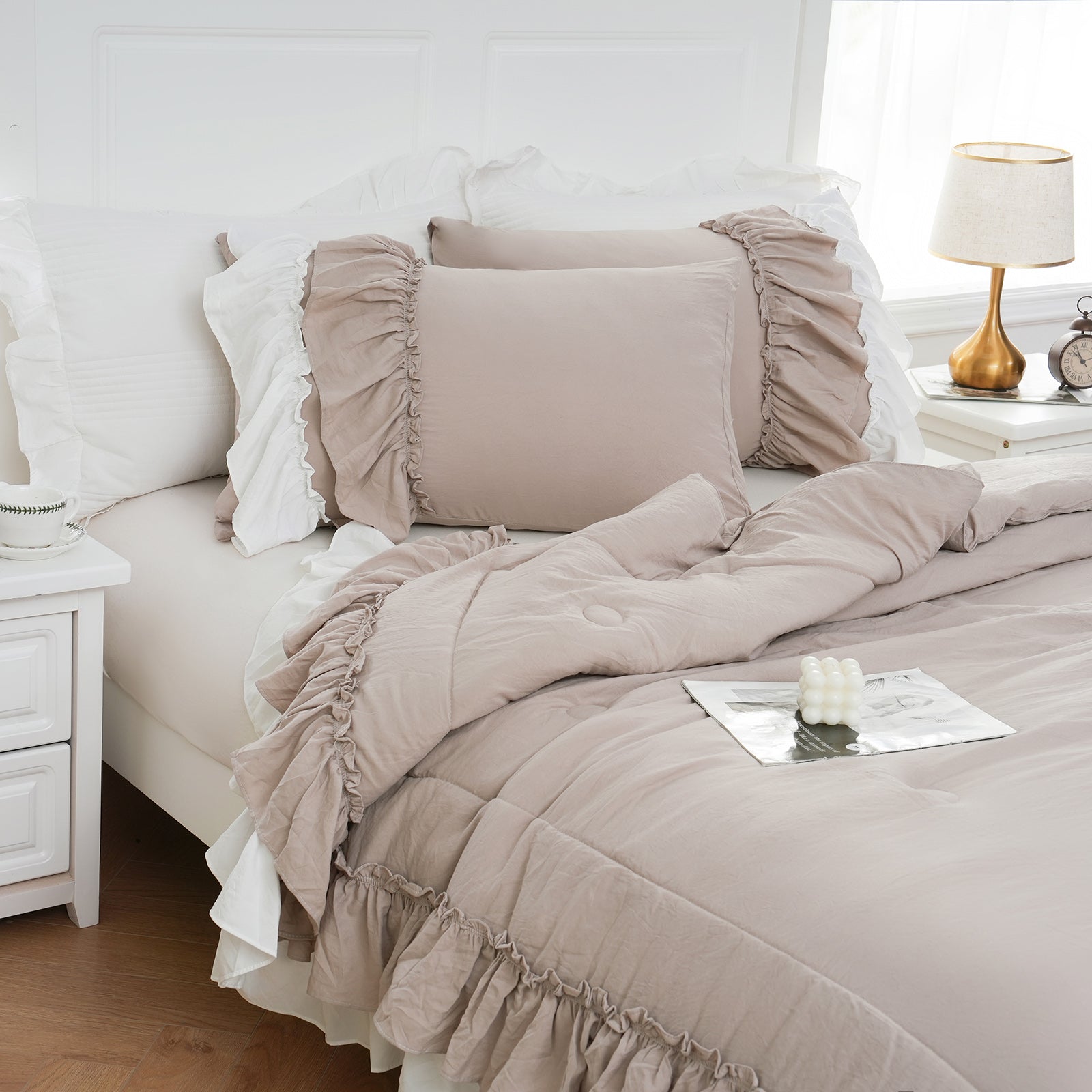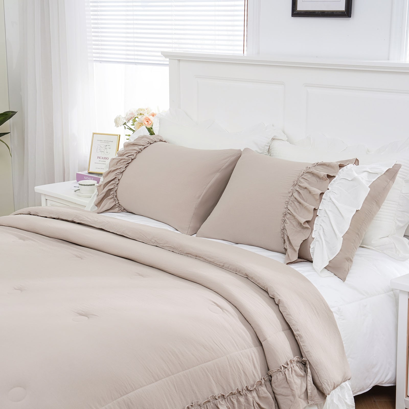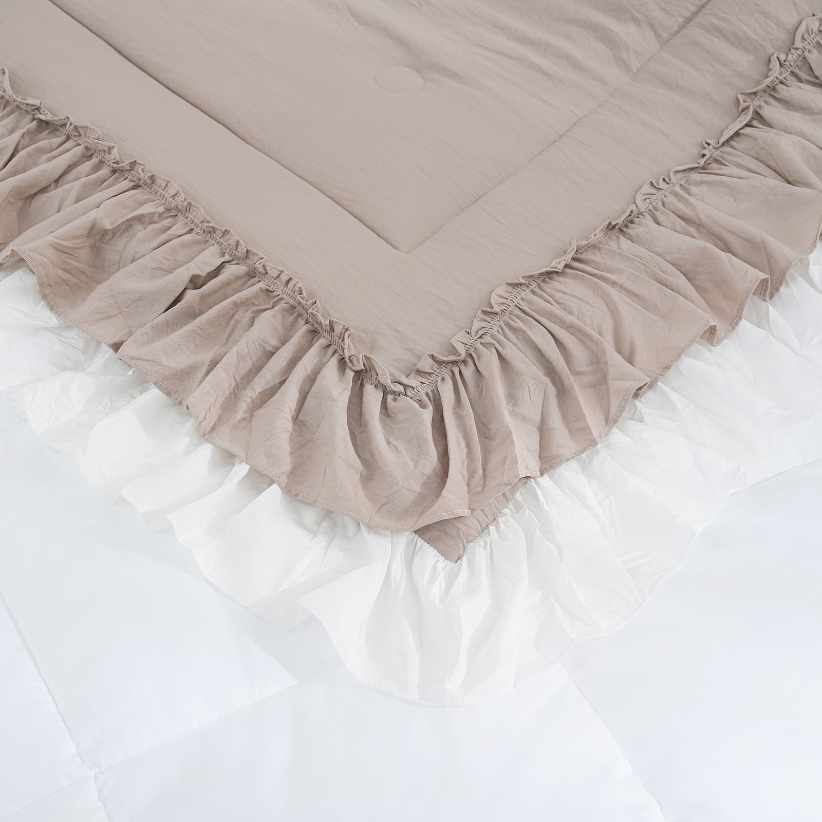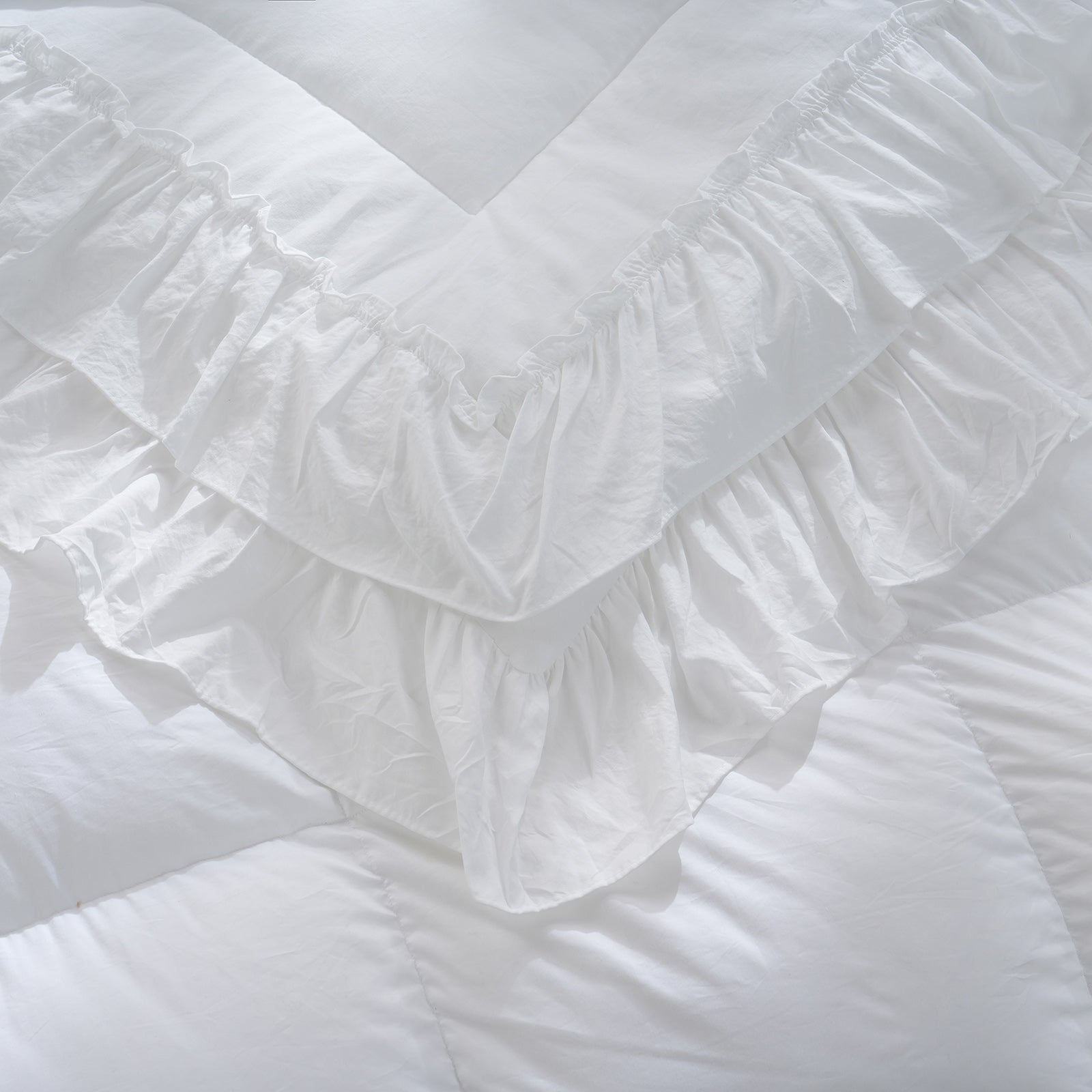 Boho Ruffle Comforter Set – 3-Piece Shabby Chic Bedding with Double-Layer Hand-Sewn Ruffles, Soft Microfiber Quilt for All Seasons