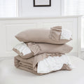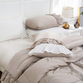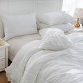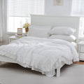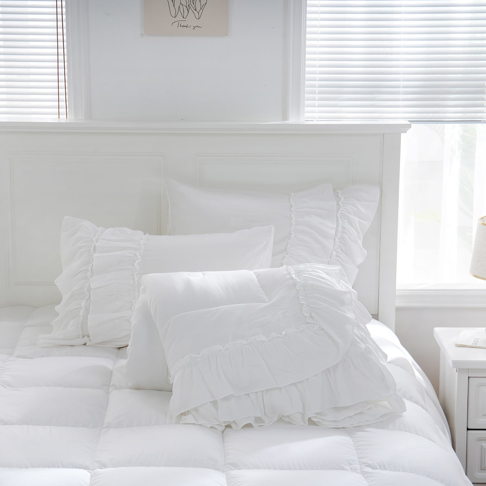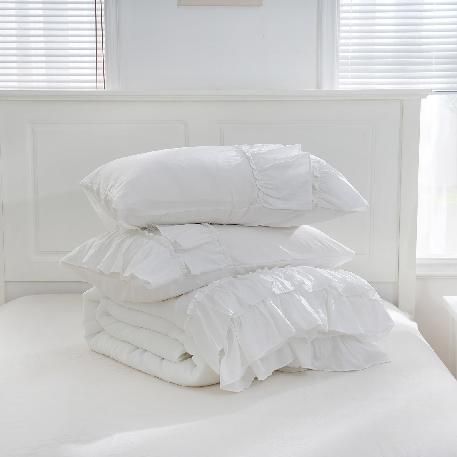 Each 3-piece set includes a comforter and matching ruffled pillowcases (available in Queen and King sizes). Made from 100% double-brushed microfiber, this bedding is ultra-soft, smooth, and gentle on the skin. The whole-piece microfiber filling ensures even warmth and prevents clumping or shifting, offering lasting comfort through every season.