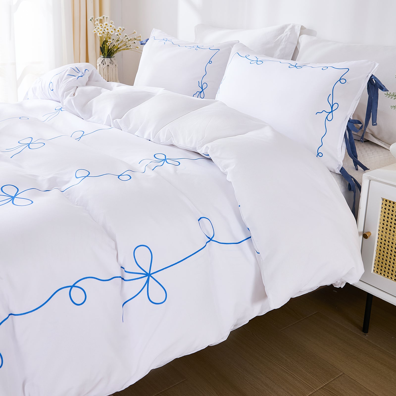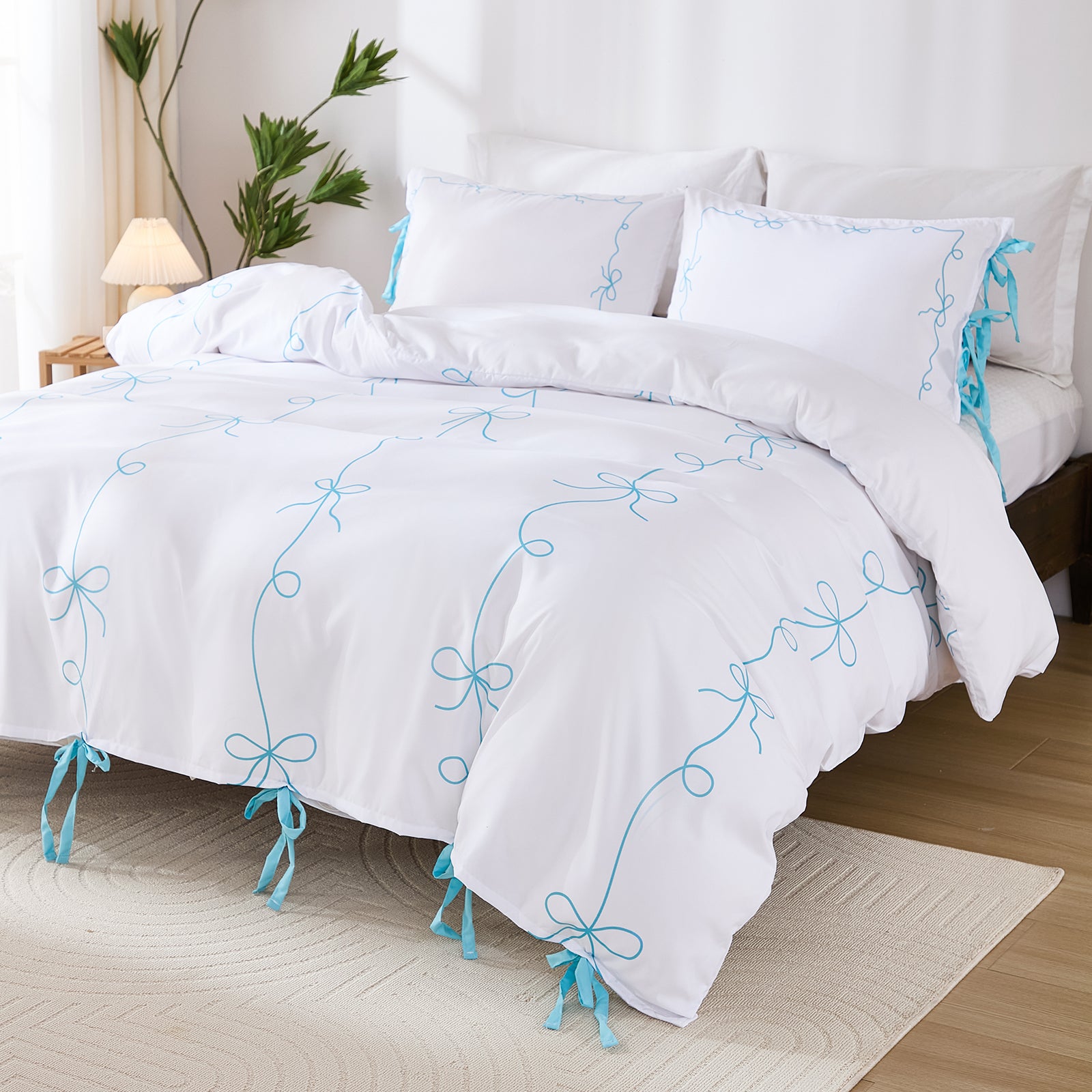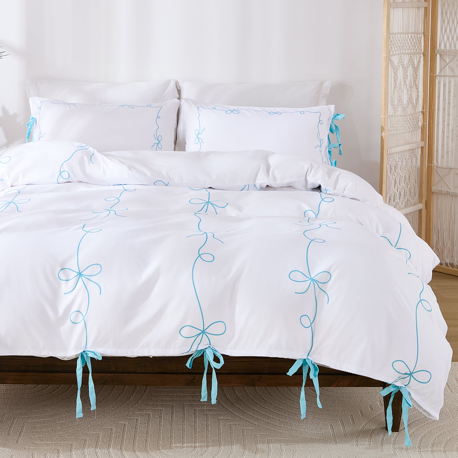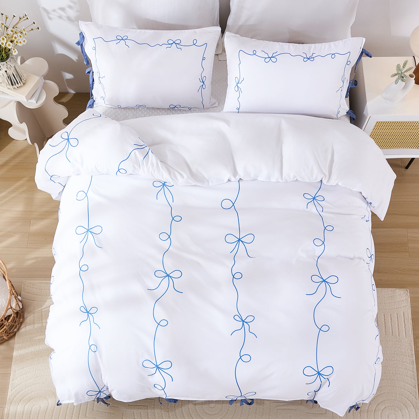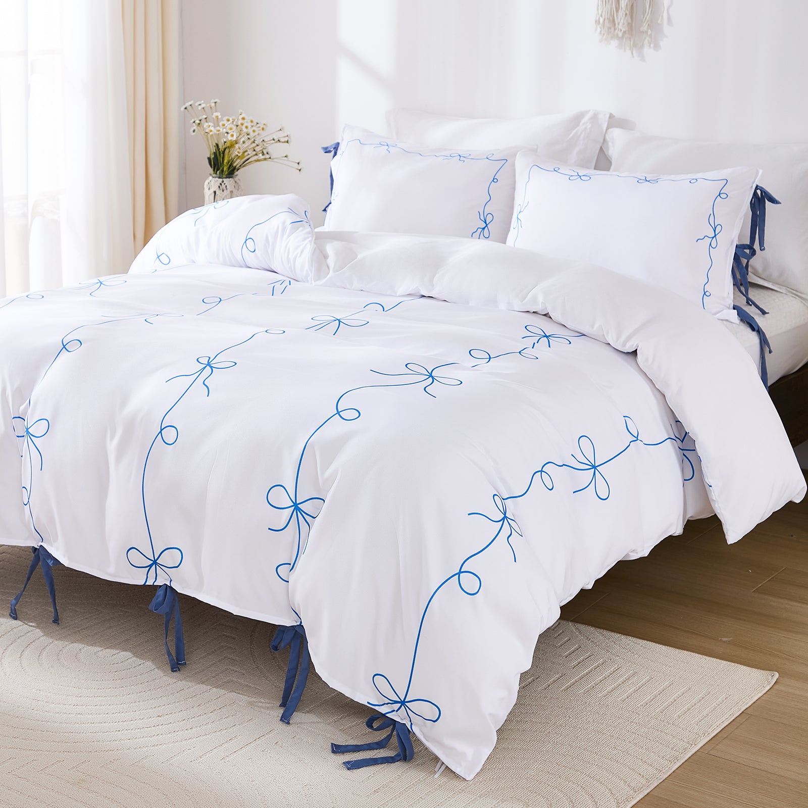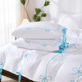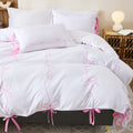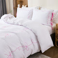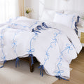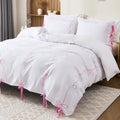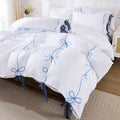 Bow Tie Duvet Cover Set – Romantic French Country Bedding with Butterfly Tie Pillowcases, Soft Breathable Microfiber, Twin/Queen/King