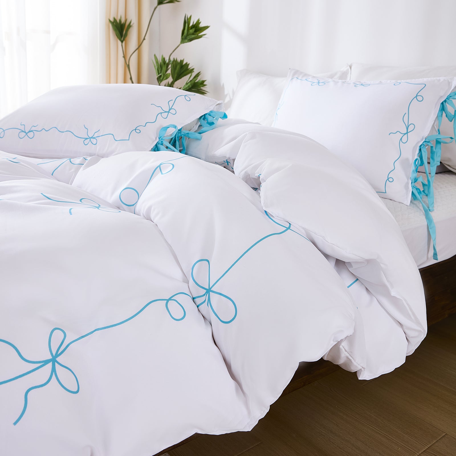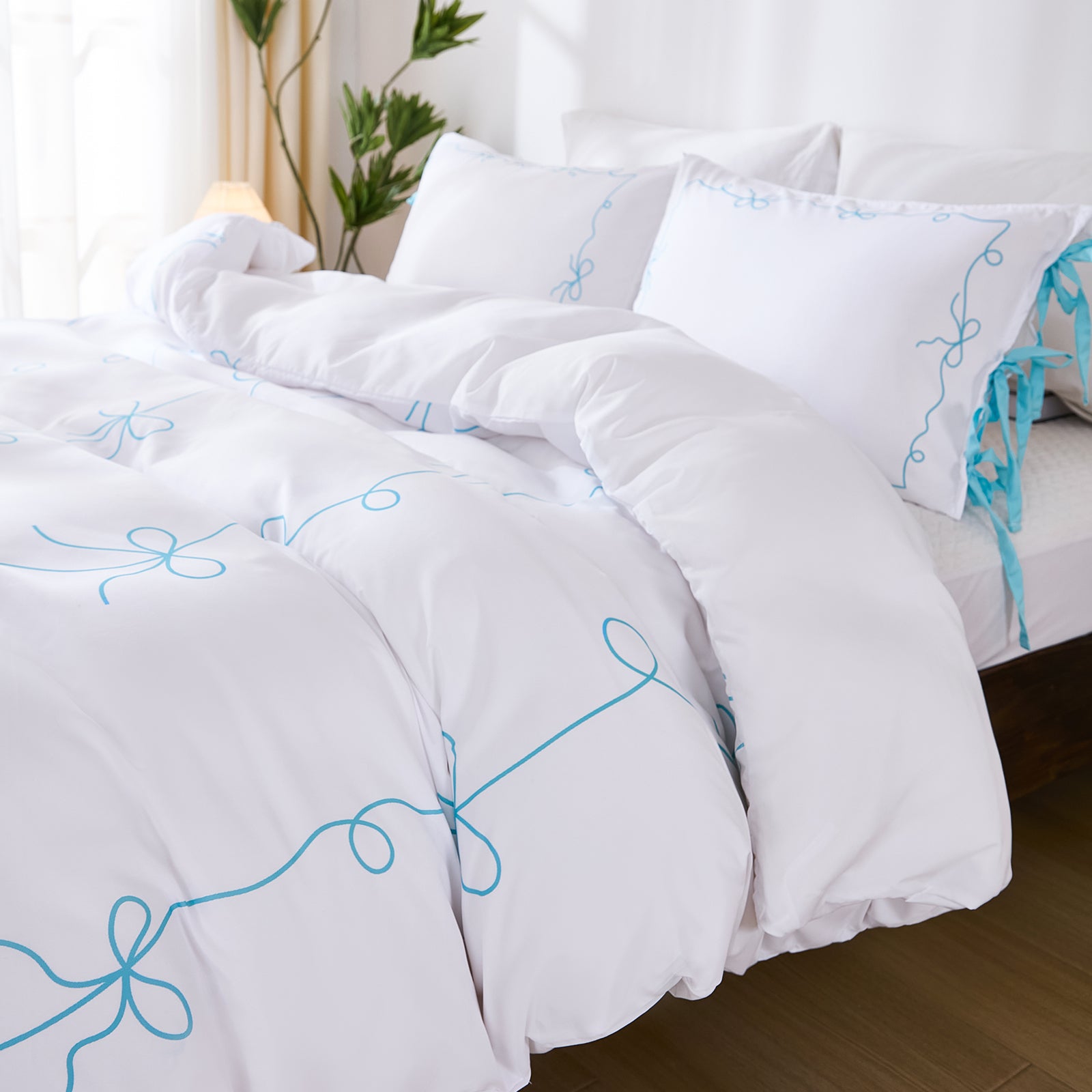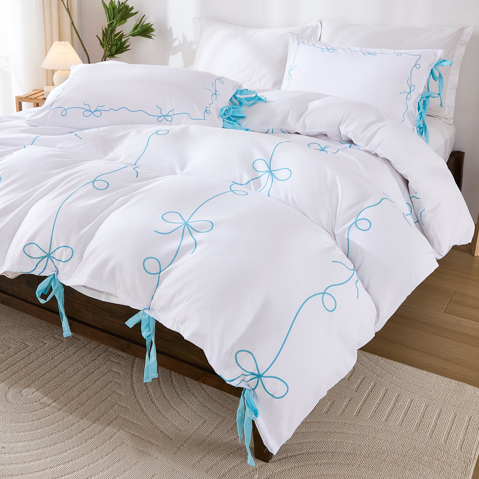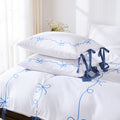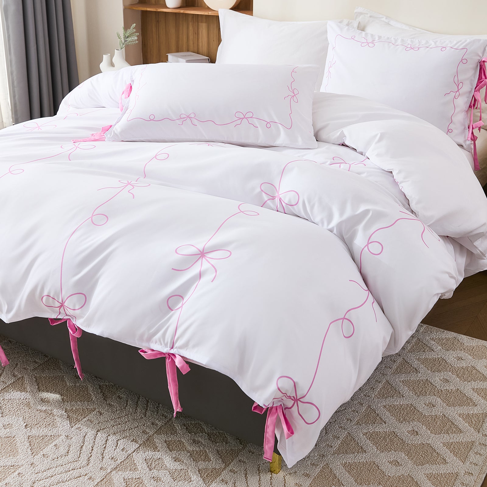 Bow Tie Duvet Cover Set – Romantic French Country Bedding with Butterfly Tie Pillowcases, Soft Breathable Microfiber, Twin/Queen/King