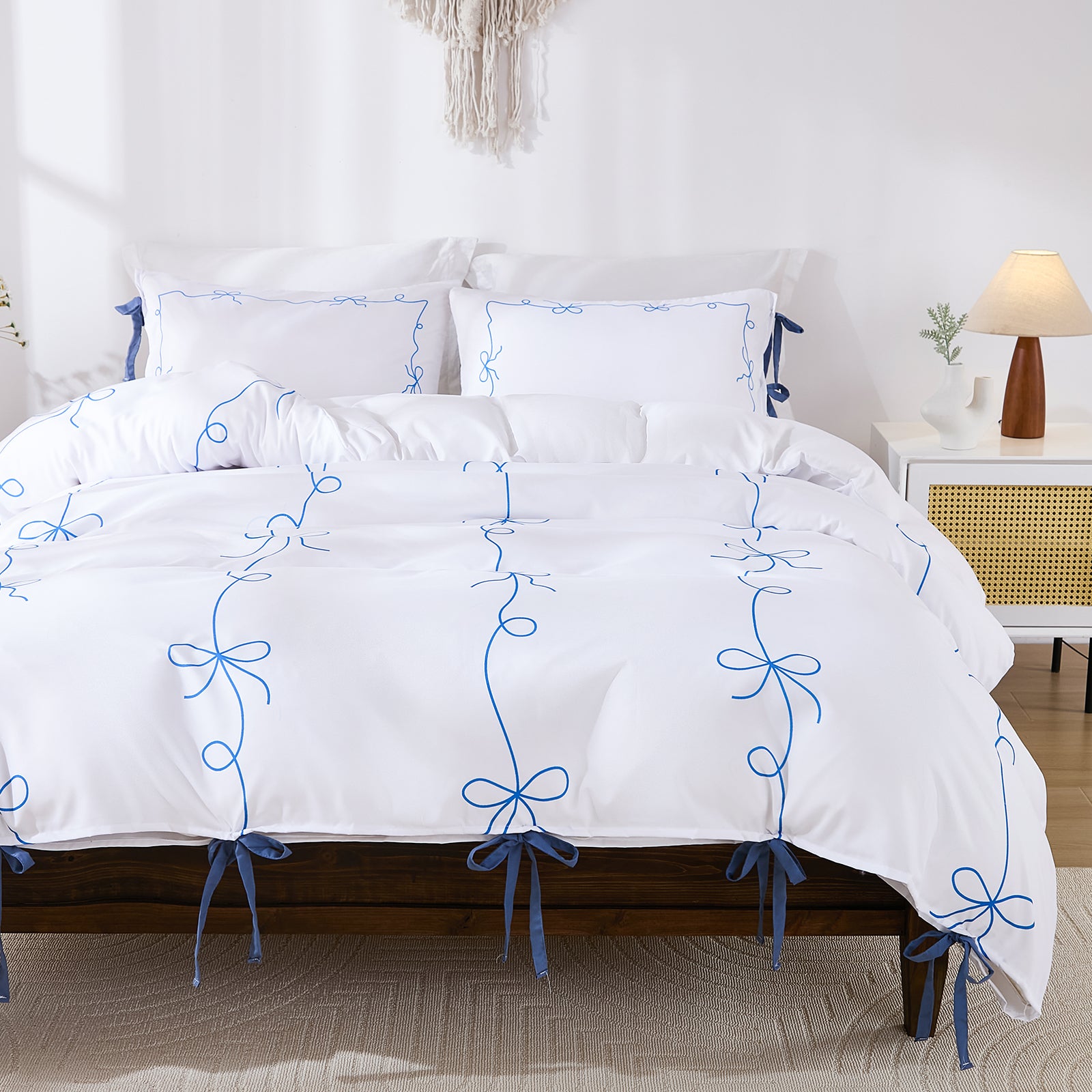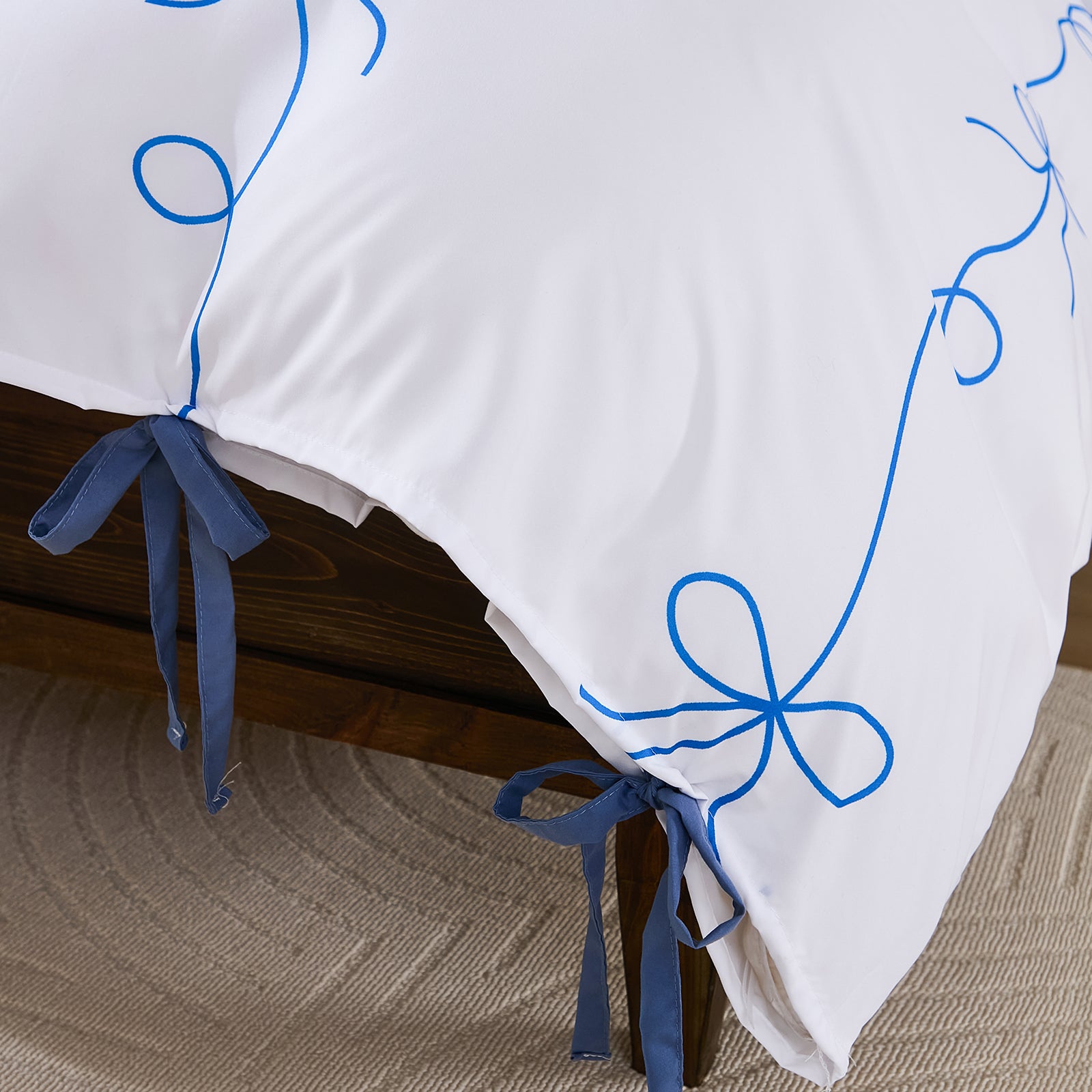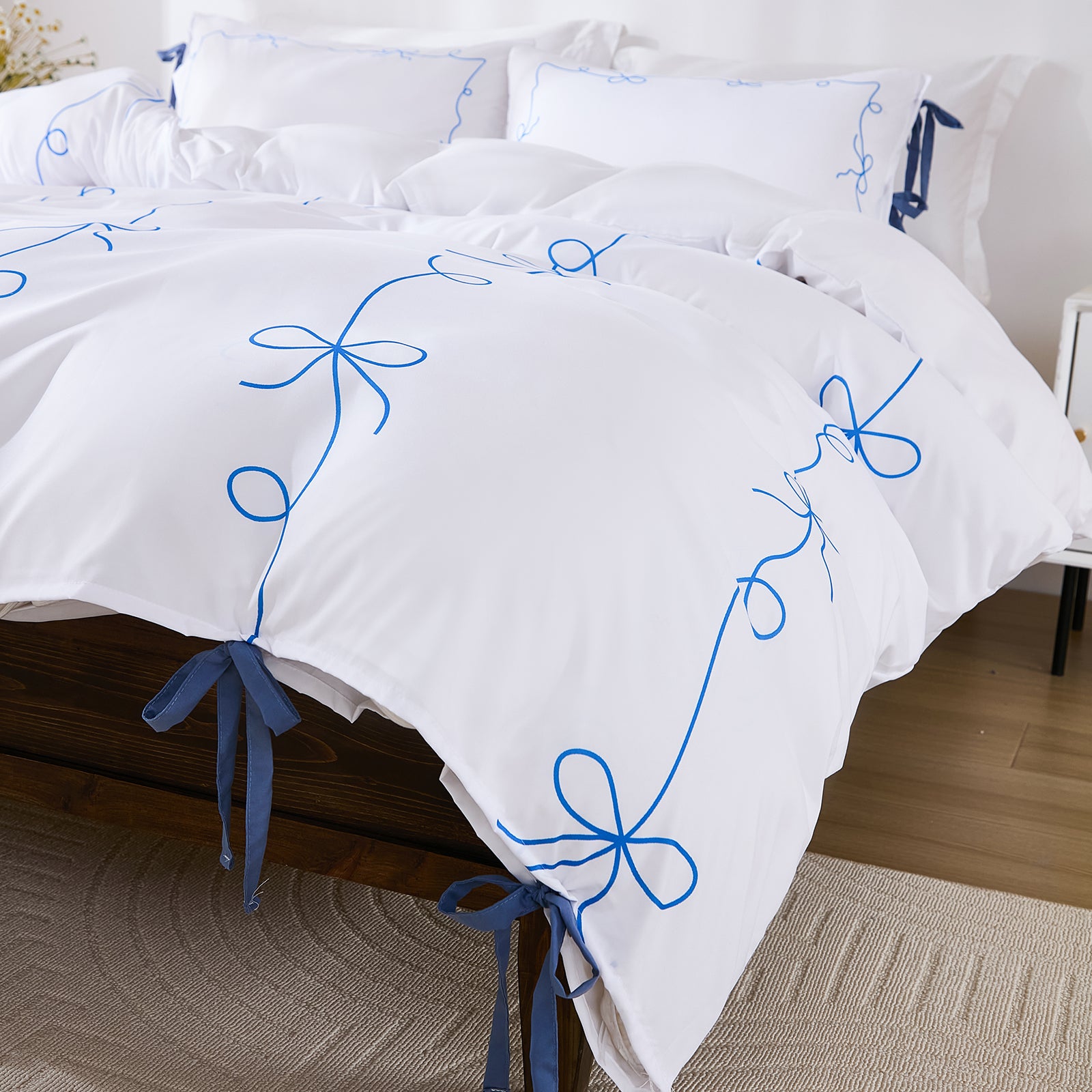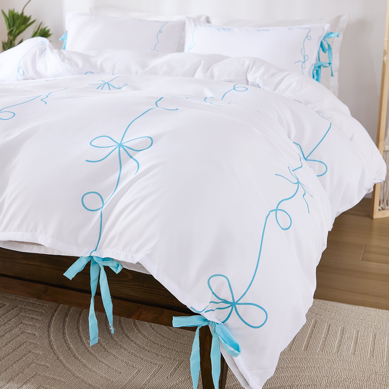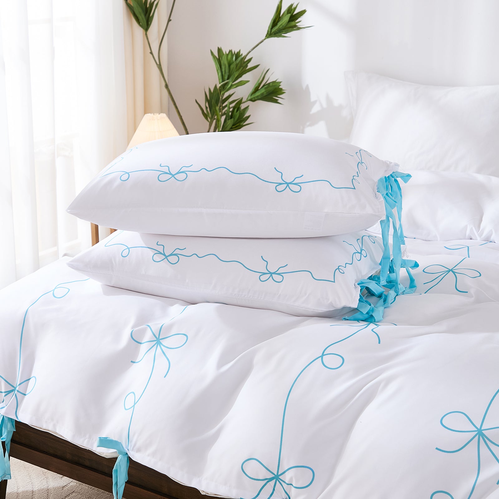 Bow Tie Duvet Cover Set – Romantic French Country Bedding with Butterfly Tie Pillowcases, Soft Breathable Microfiber, Twin/Queen/King