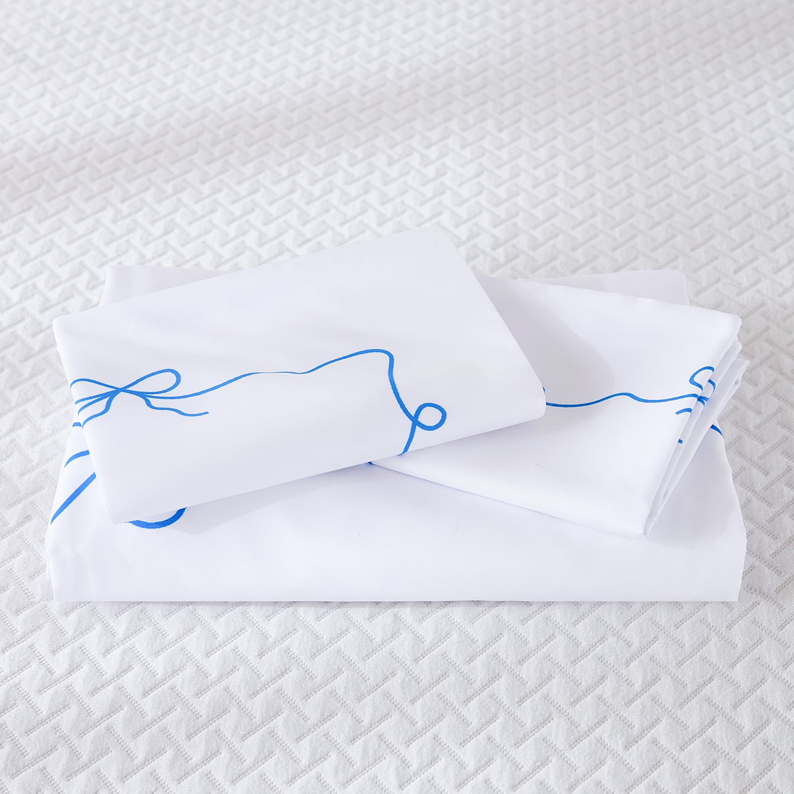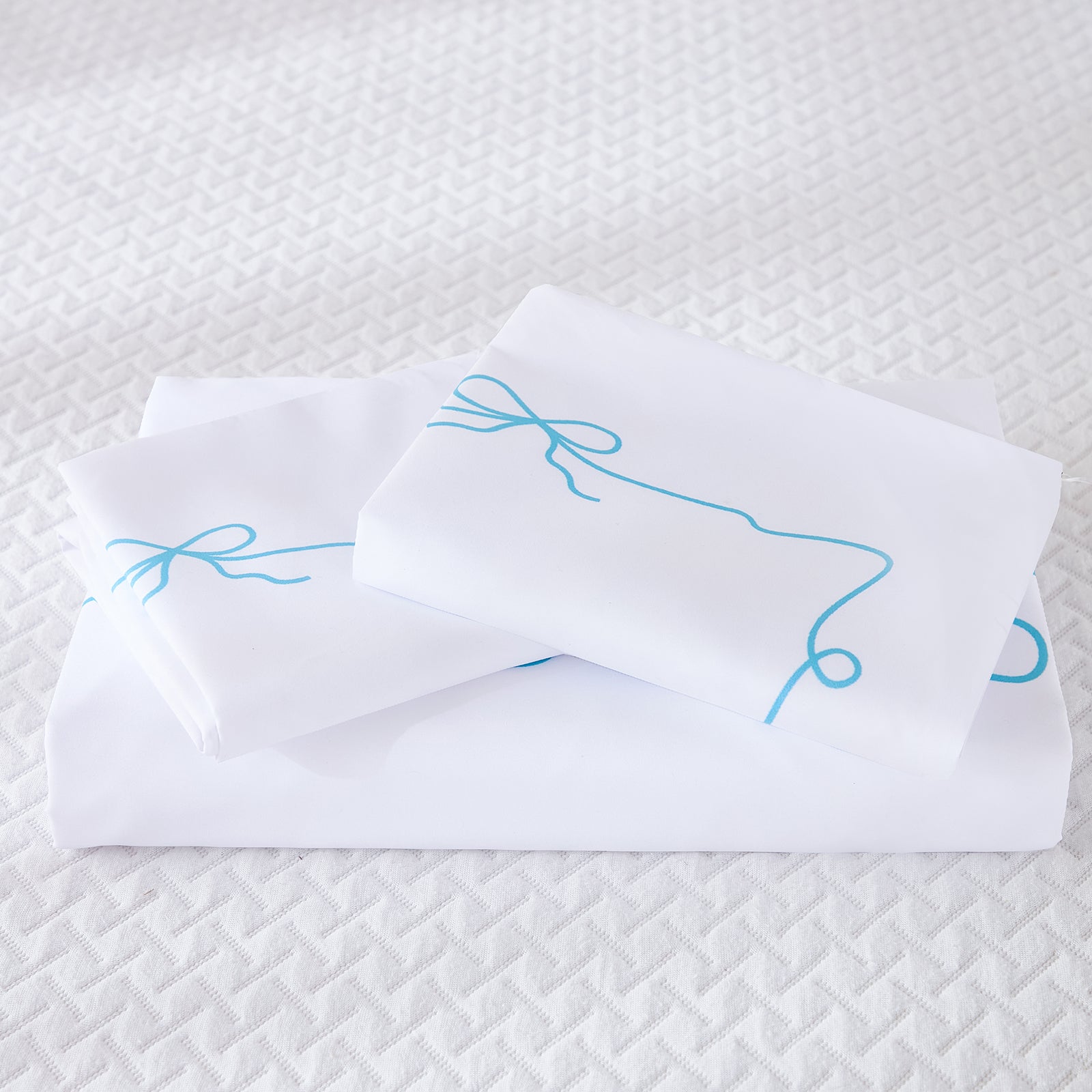 Each 3-piece set includes a duvet cover and coordinating bow tie pillowcases (Twin includes 1 pillowcase; Queen & King include 2). Comforter insert not included.