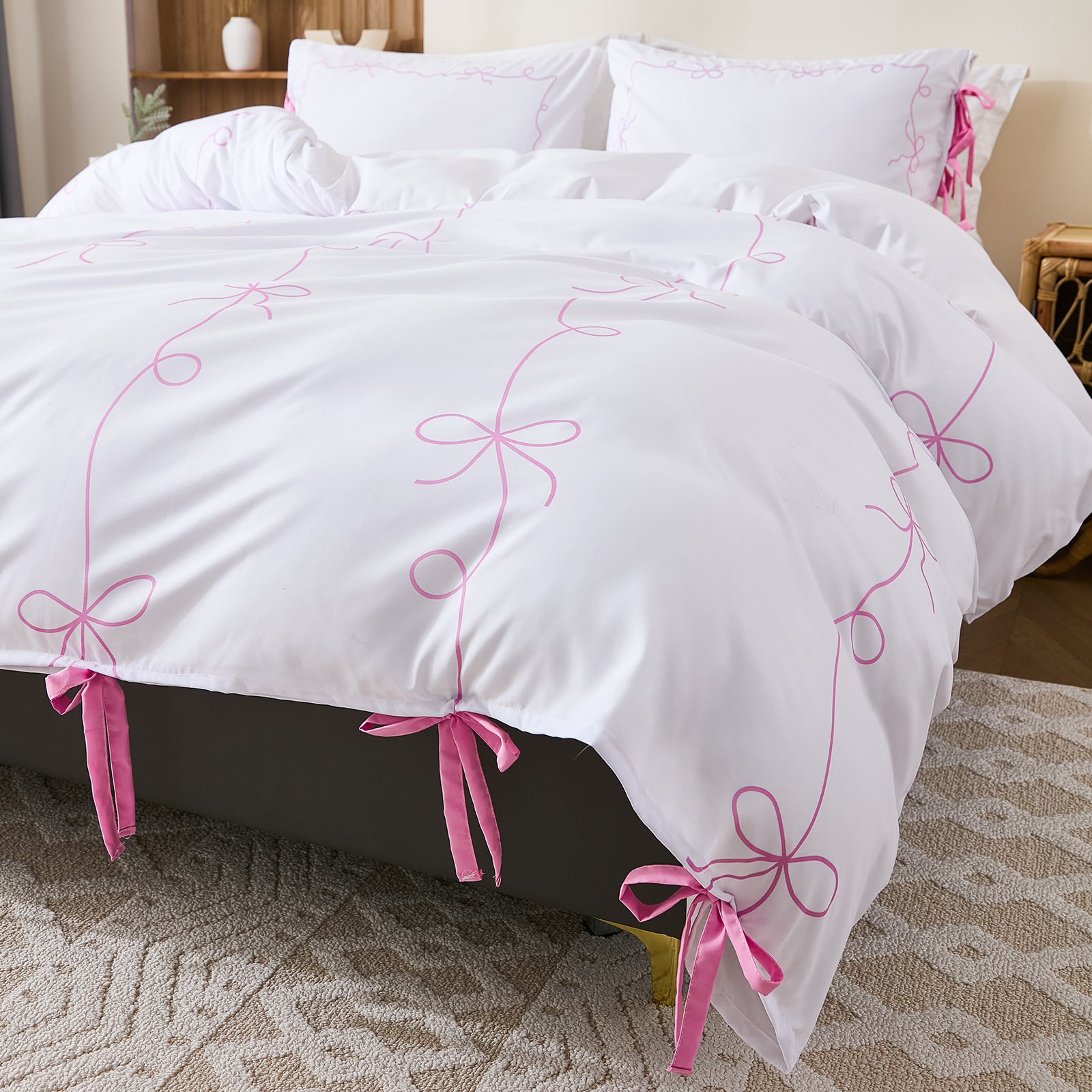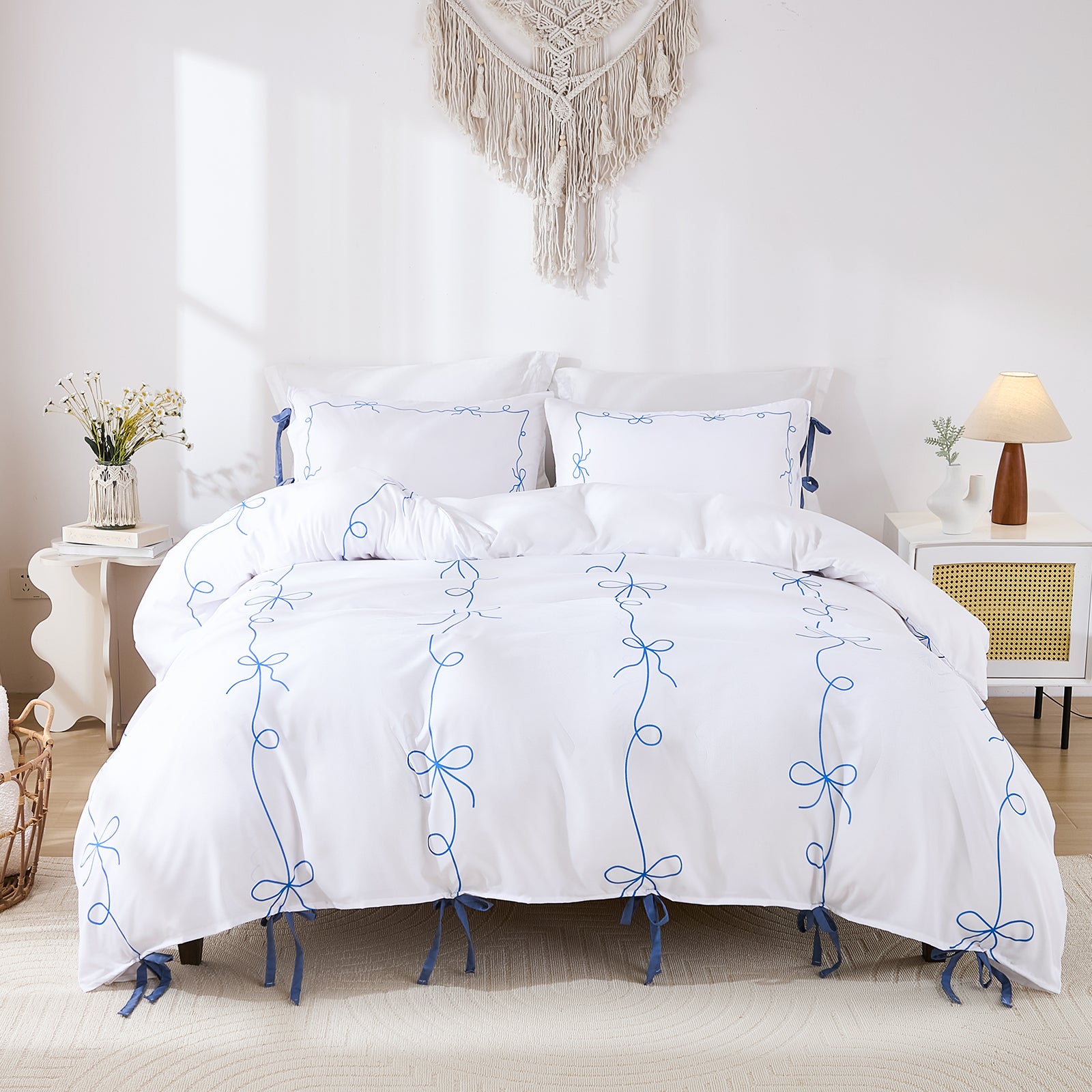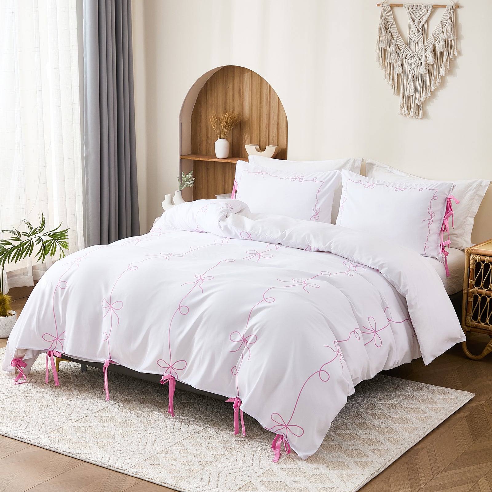 Add romance and elegance to your bedroom with the Bow Tie Duvet Cover Set, featuring a charming butterfly bowknot design. Perfect for French country, shabby chic, or boho décor, this set transforms your space with effortless style.