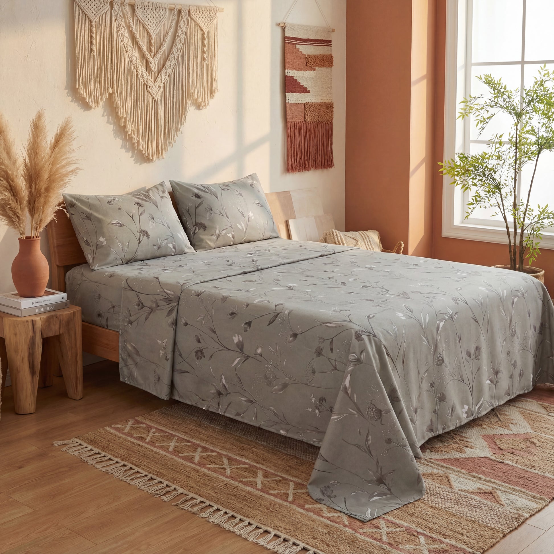 Refresh your bedroom with this beautifully designed Boho Floral Bed Sheet Set—crafted to bring comfort, style, and effortless care into your everyday routine. The ultra-soft brushed fabric creates a smooth, cooling feel against the skin, making it a perfect choice for kids, teens, and adults who love lightweight comfort.