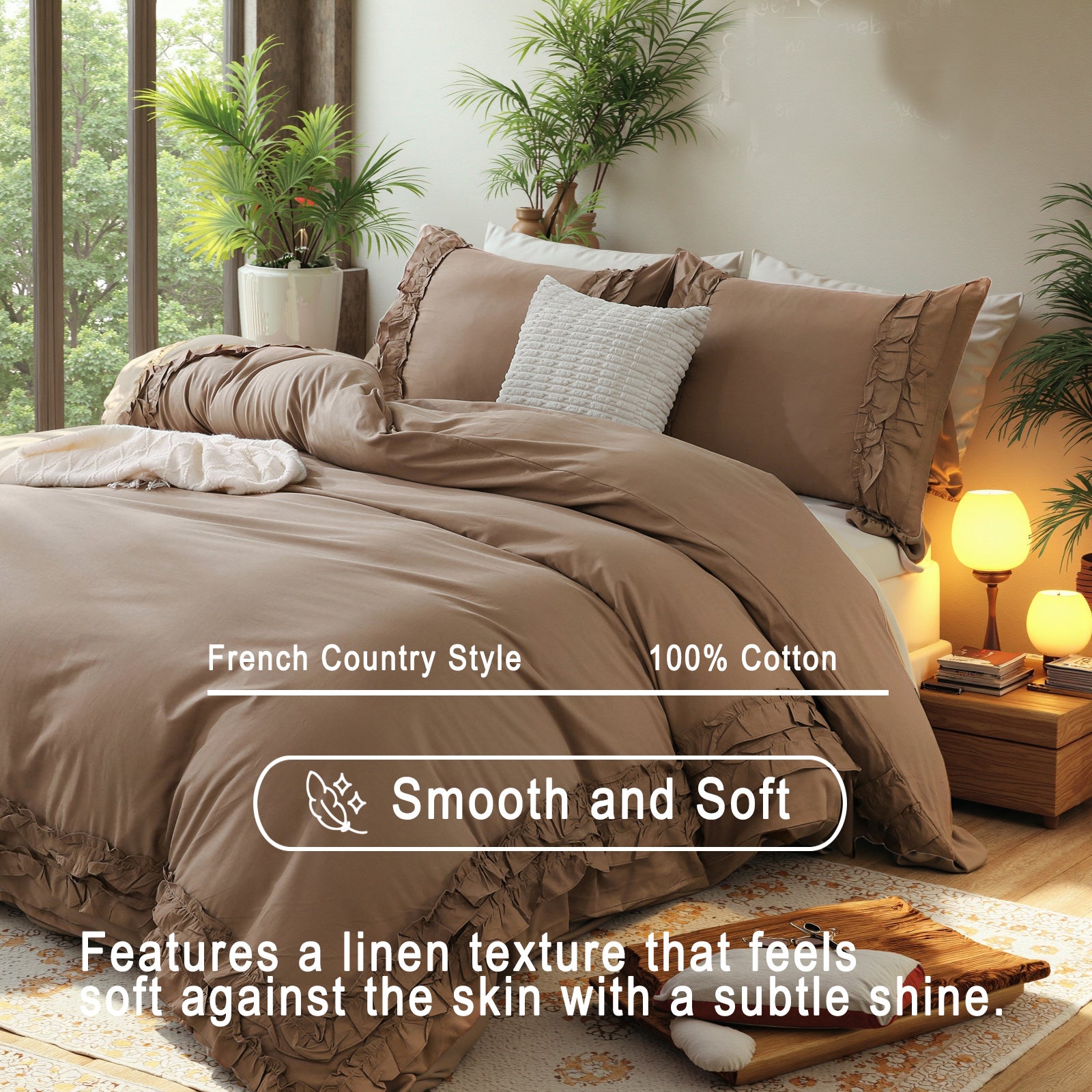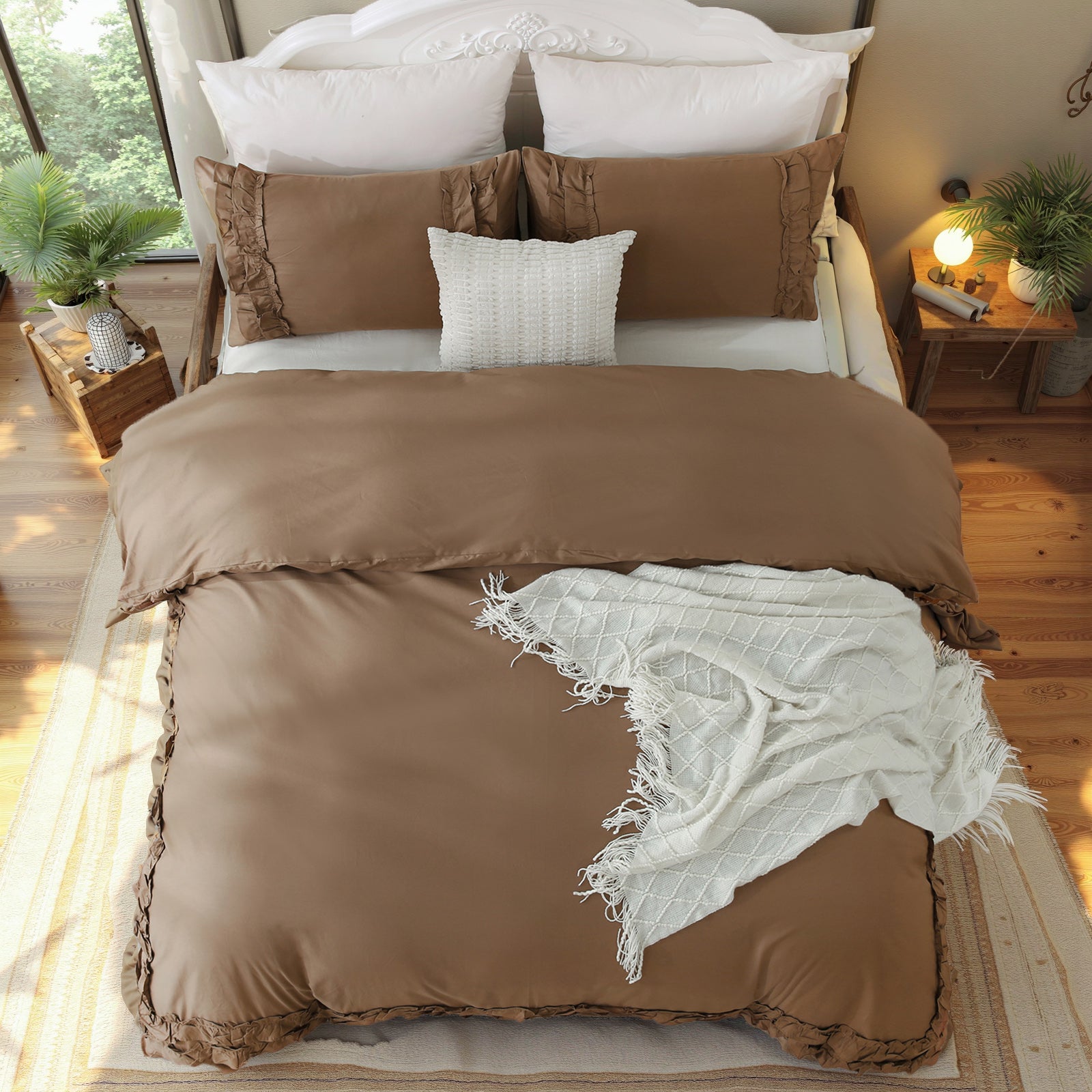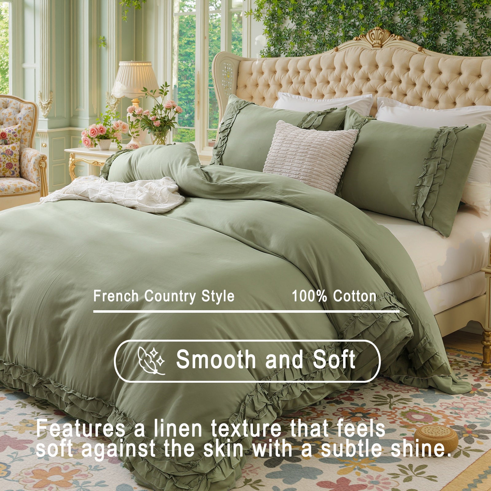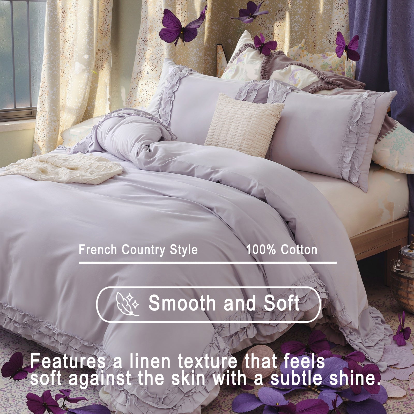 <p>Elegant Double-Layer Ruffle Design : Elevate your bedroom aesthetics with delicate cascading ruffles along the edges. The dual-layer stitching adds dimensional charm while reinforcing</span><br></span>