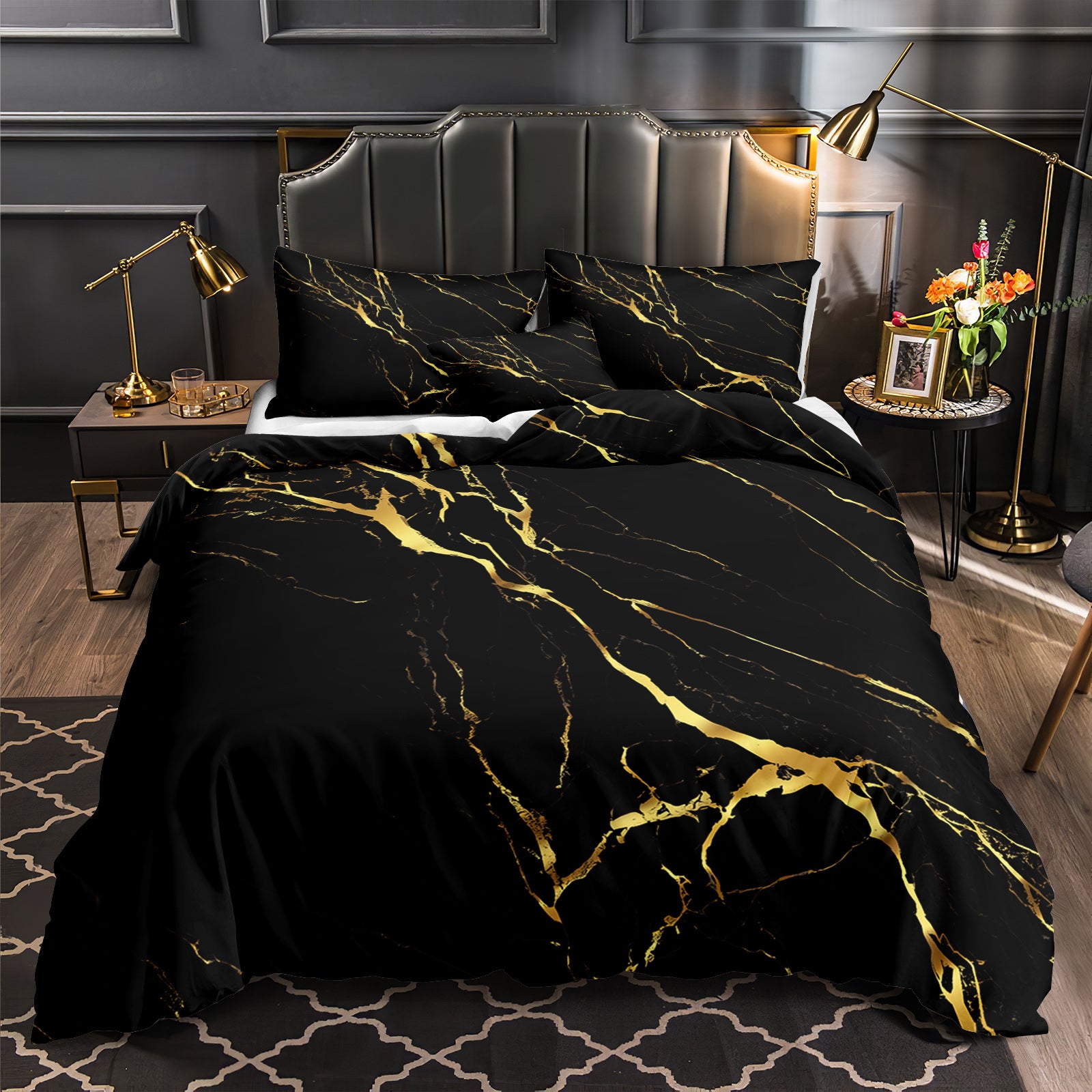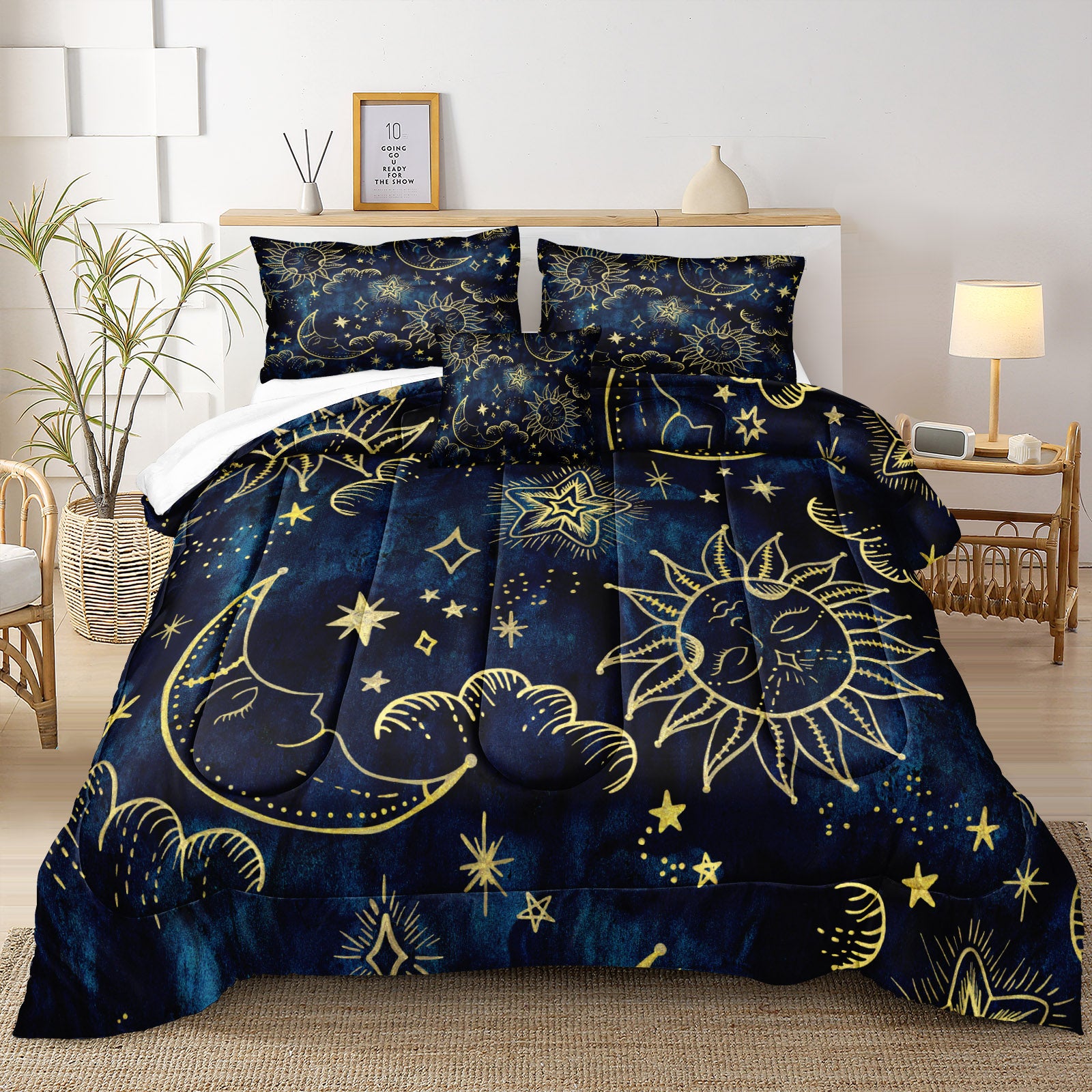 Upgrade your bedroom with this 4-Piece Comforter Set, designed to combine elegance, comfort, and convenience. Each set includes a comforter, two pillowcases, and a matching cushion cover, offering a complete bedding solution with a stylish, modern pattern.