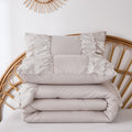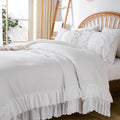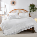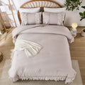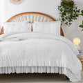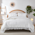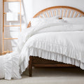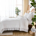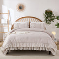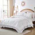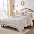Cotton Ruffle Comforter Set – 100% Cotton Double Layer Ruffles Boho Farmhouse Bedding with Pillow Shams, Queen/King