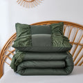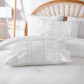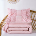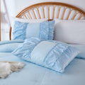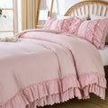 Each size includes a comforter and two ruffled shams for a coordinated look in one step. Lightweight yet fluffy, this quilt style comforter keeps you warm without heaviness. Easy to care for with cold machine wash and low tumble dry. Use a laundry bag to preserve the delicate ruffles so your bedding stays soft and beautiful wash after wash.