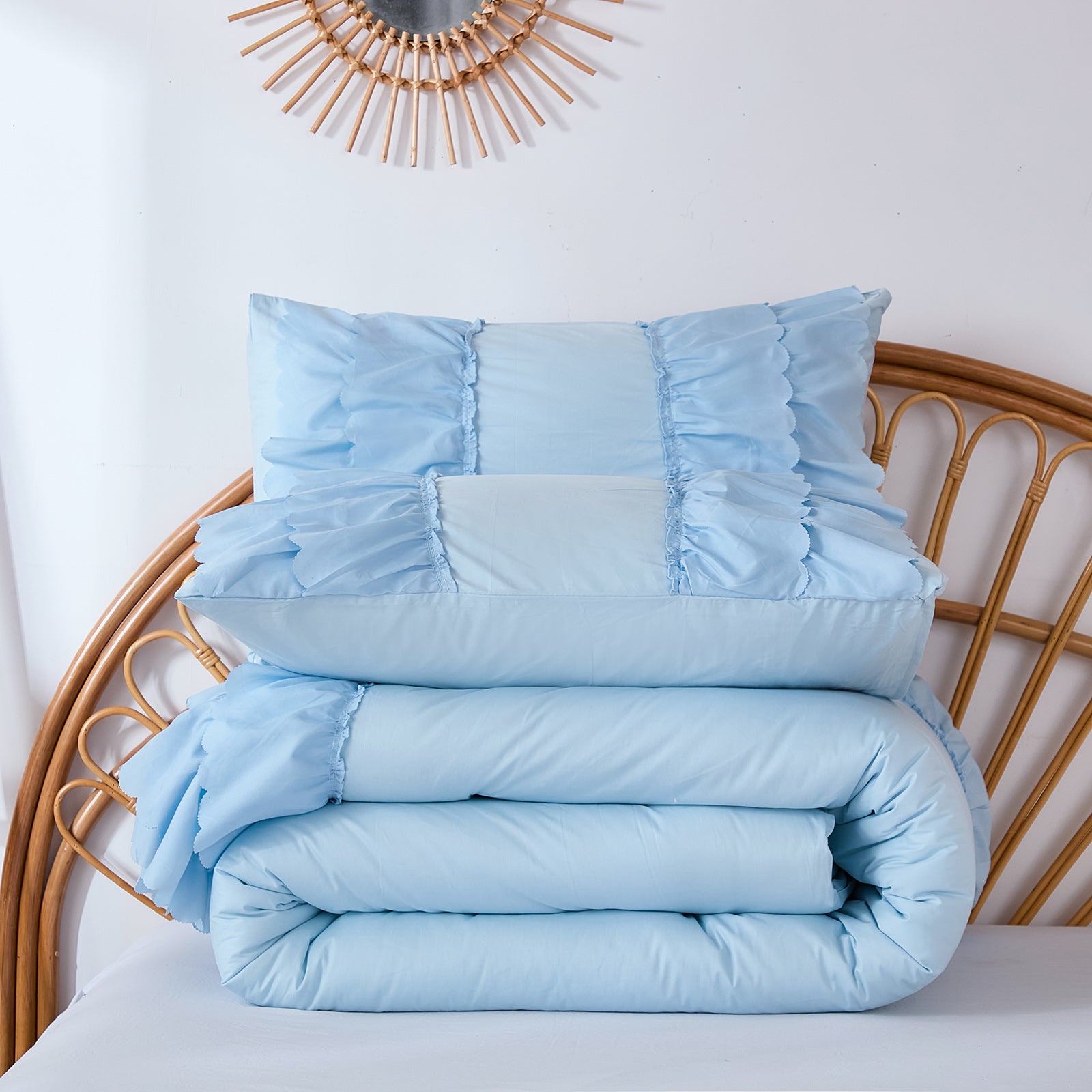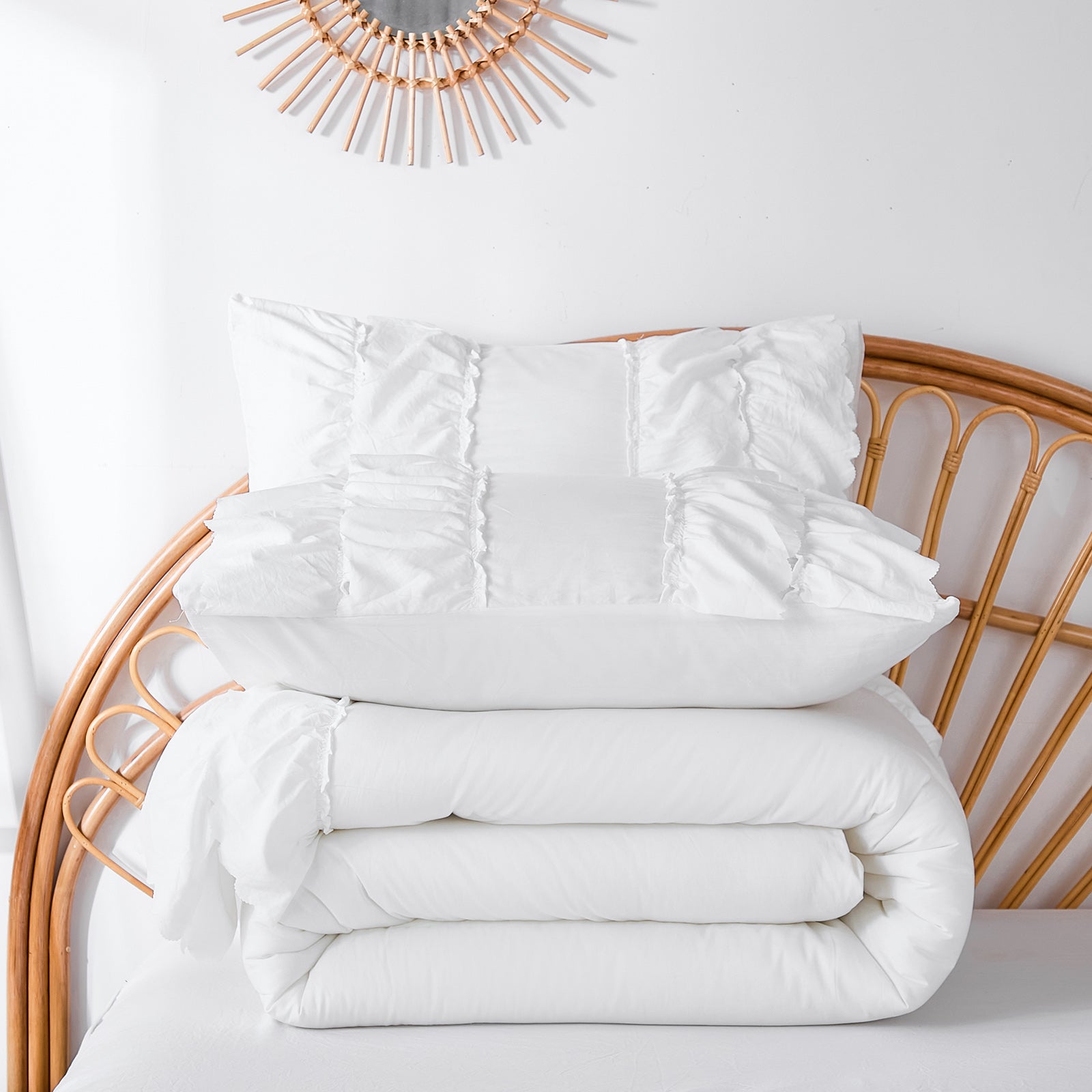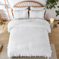 Create a soft boho retreat with this 100% Cotton Double Ruffle Comforter Set. Crafted from premium 200 thread count cotton, it feels naturally breathable and gentle on skin, offering cozy comfort in every season.