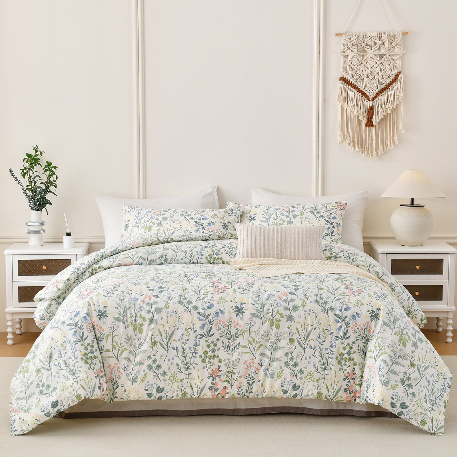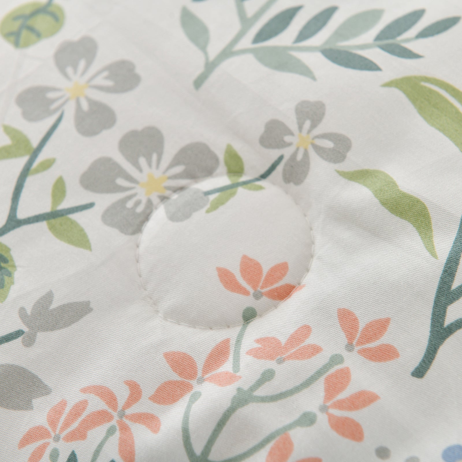 Charming Florals: Brighten your bedroom with the blooming floral pattern of our Reversible Quilt Set. This print embodies a vibrant atmosphere with a gorgeous garden, featuring flowers and leaves enriched with nostalgic colors for that homey feel