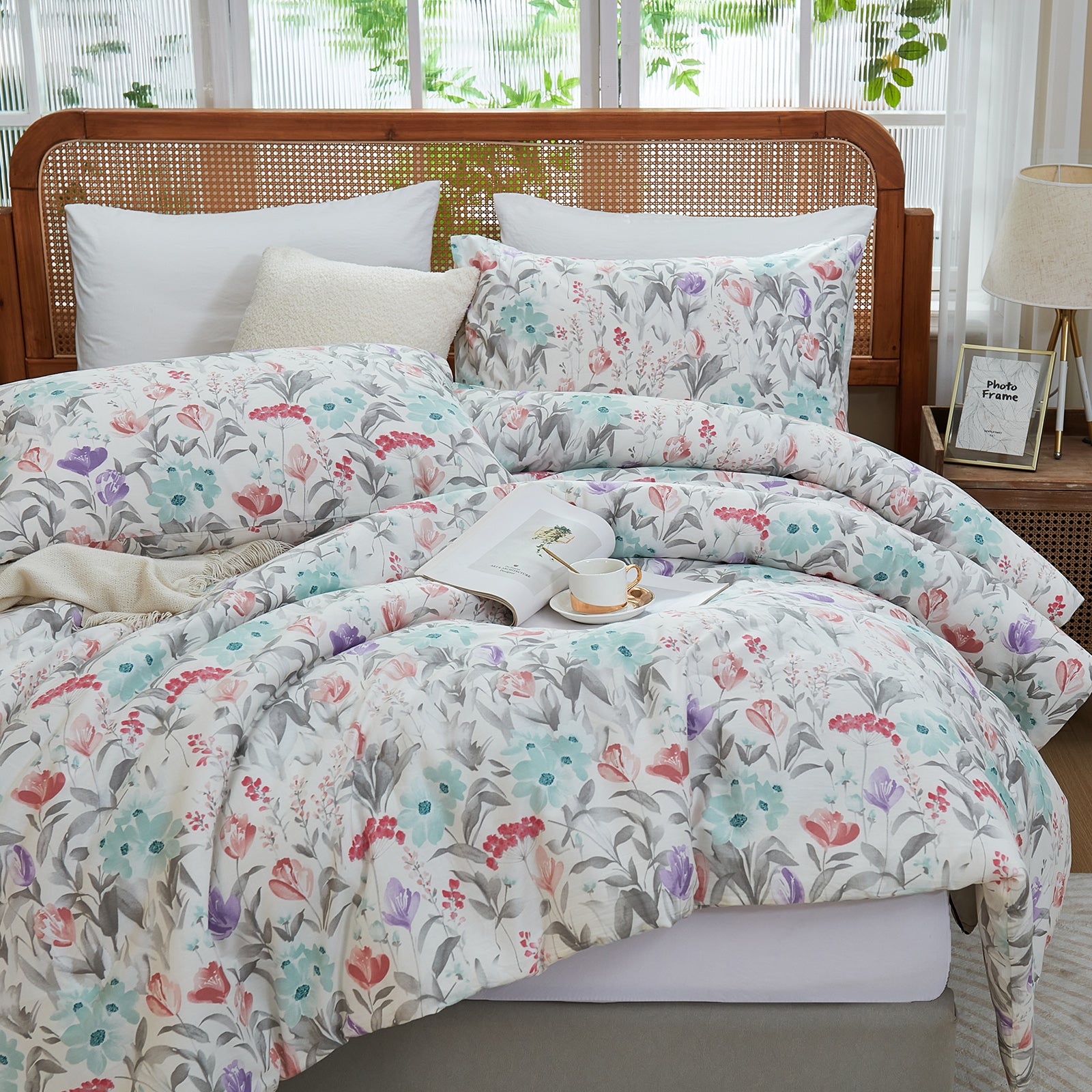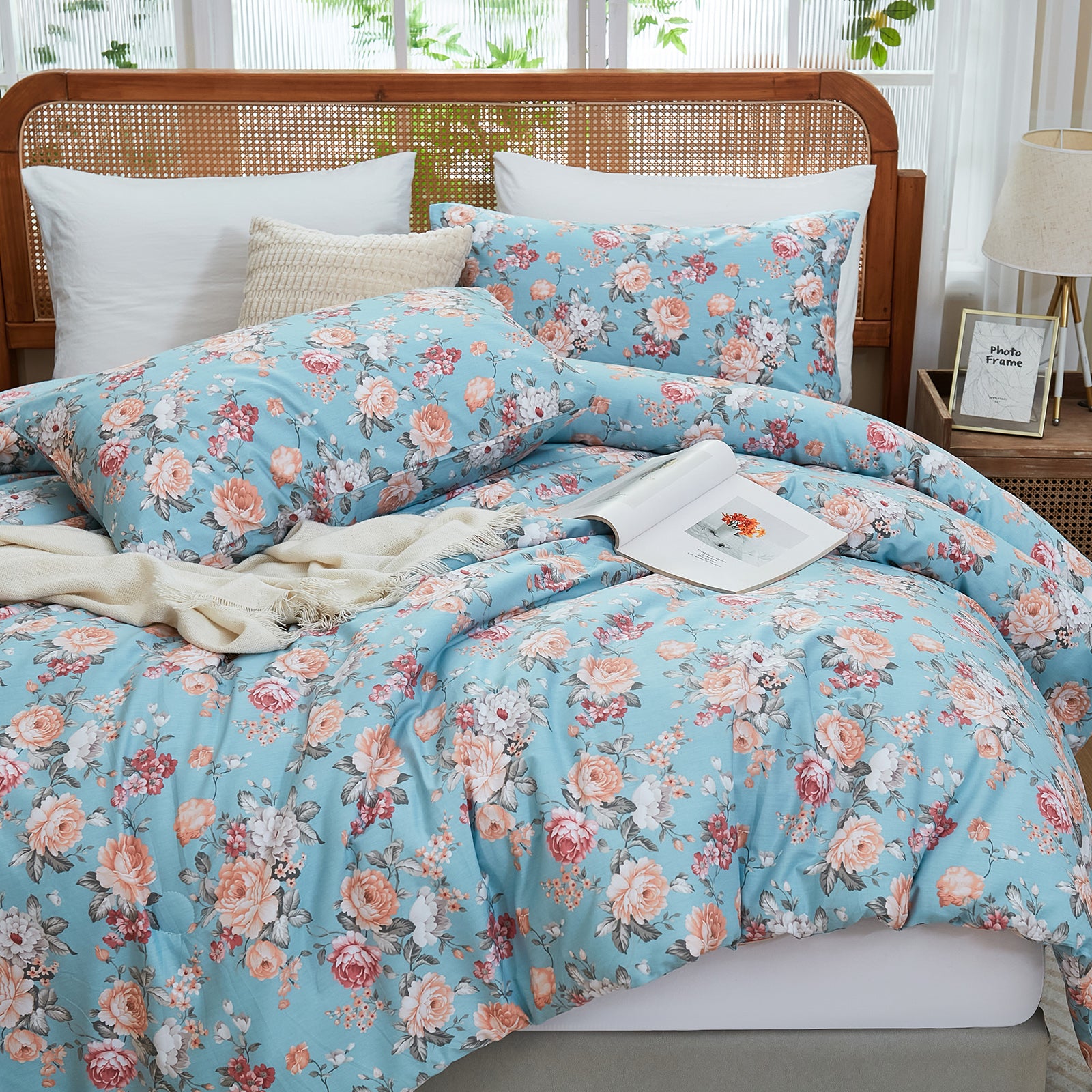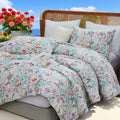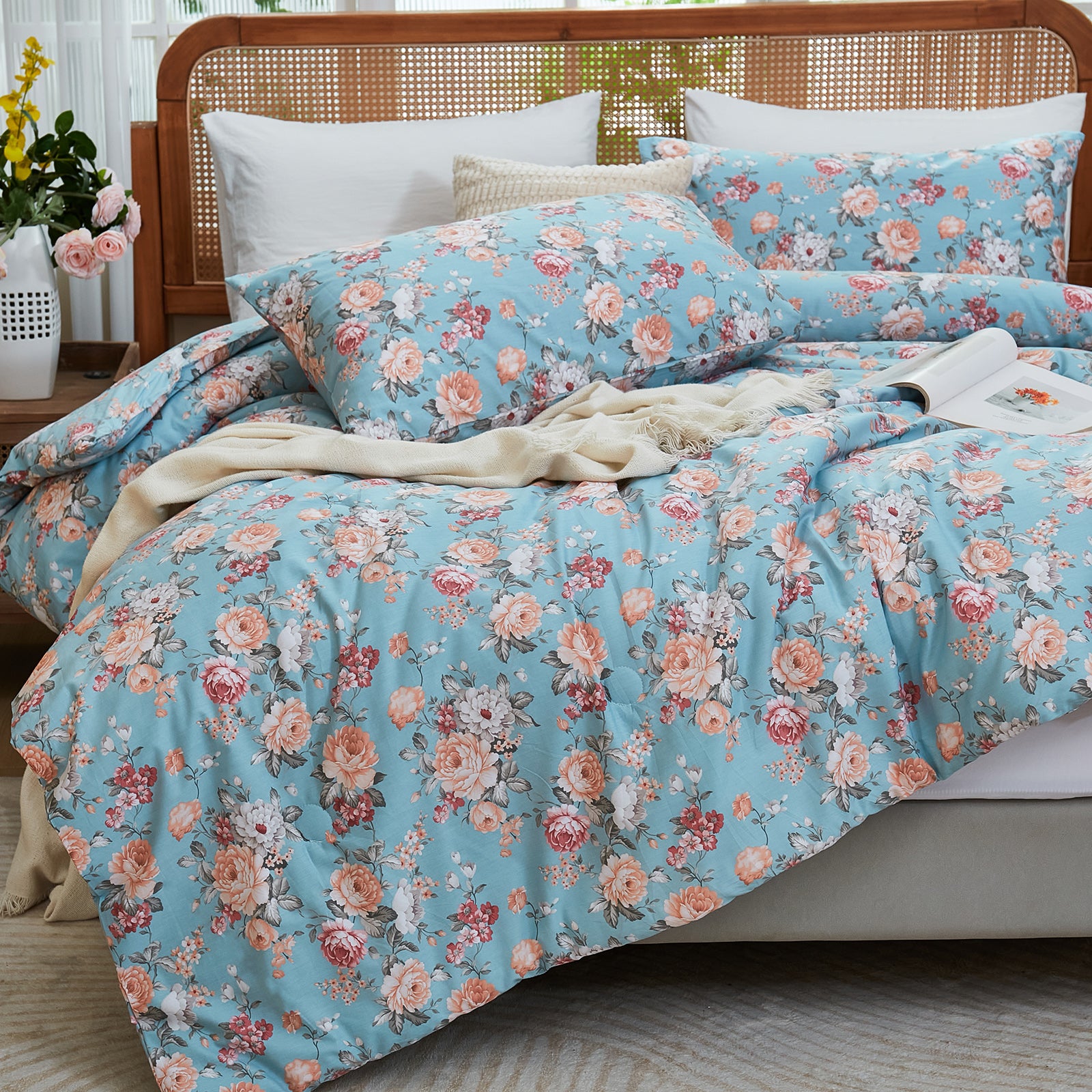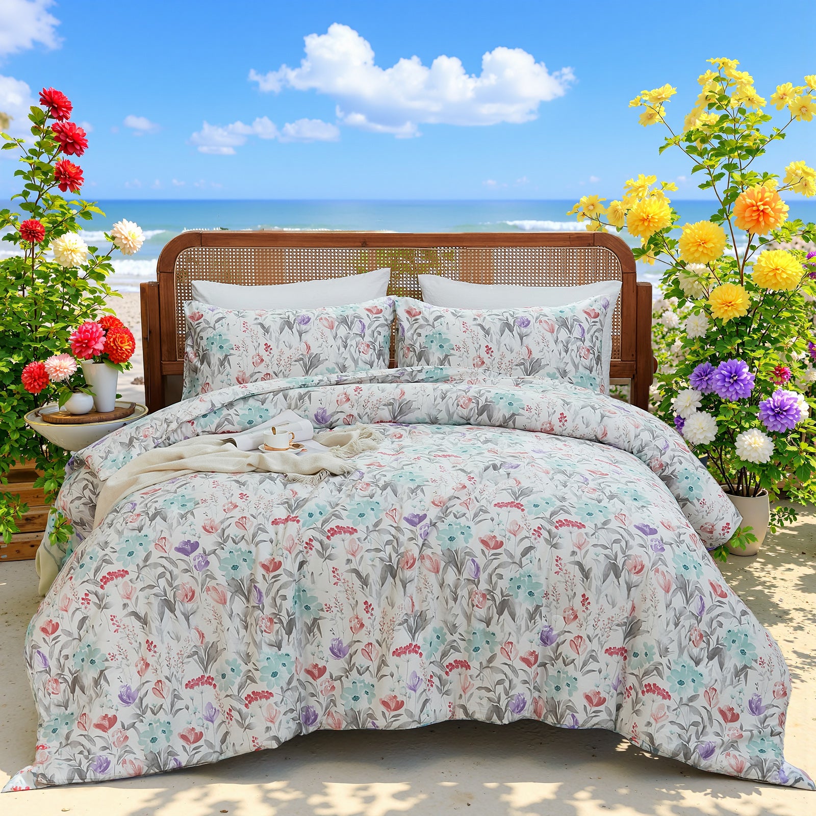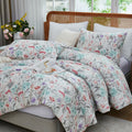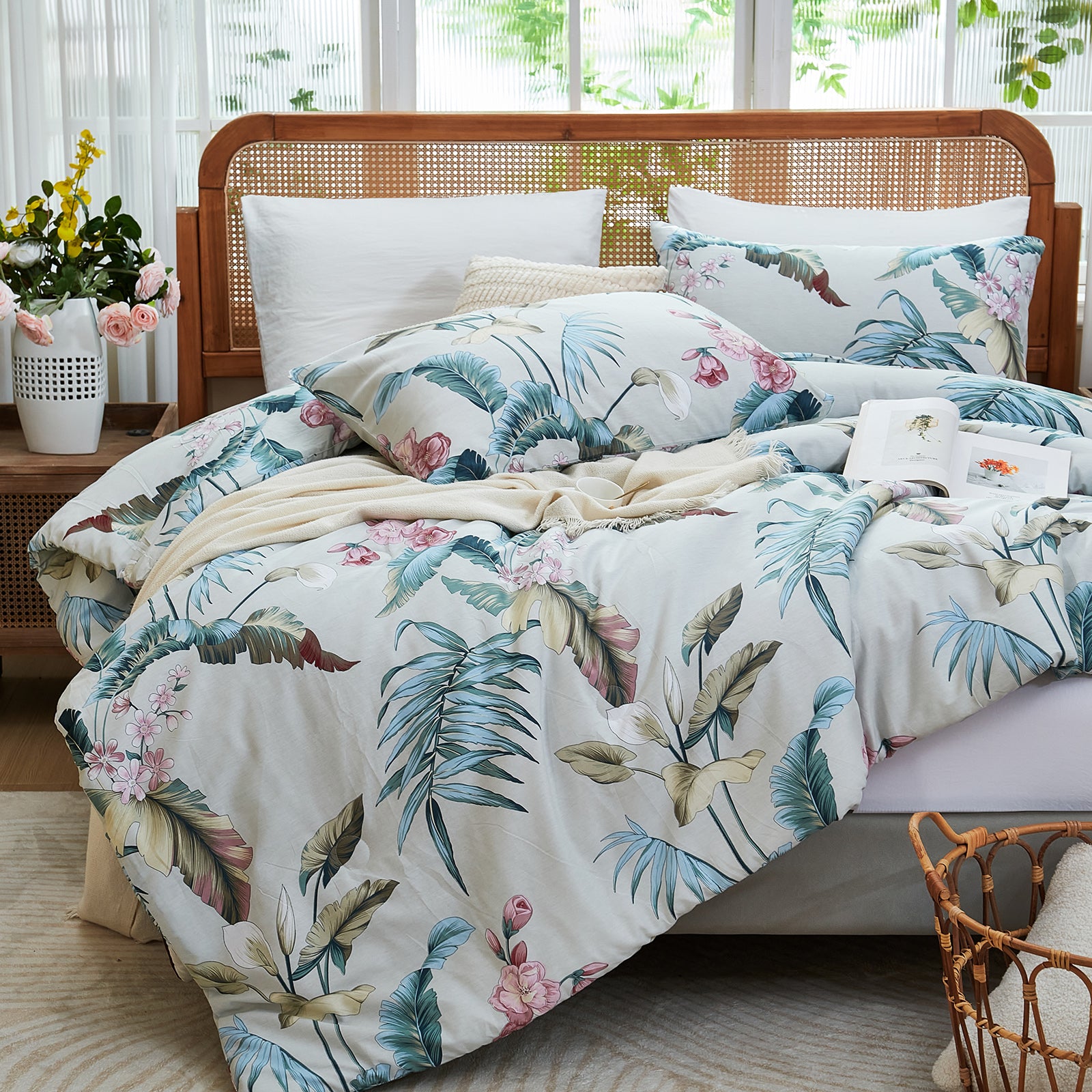 Floral Cotton Comforter Set – 100% Cotton Bedding with Elegant Botanical Print, Soft Lightweight All Season Quilt, King/Queen