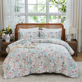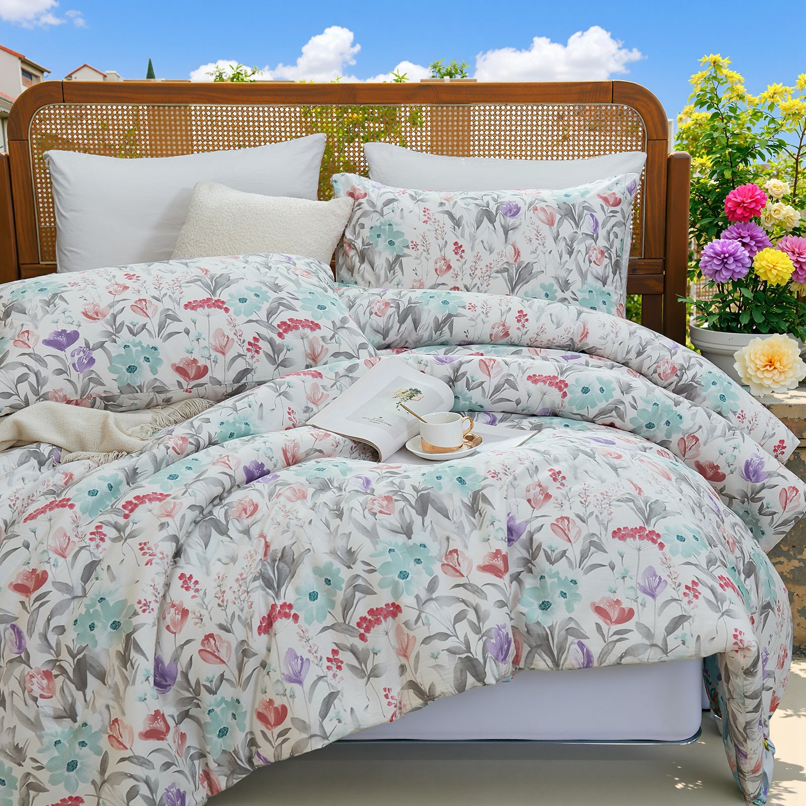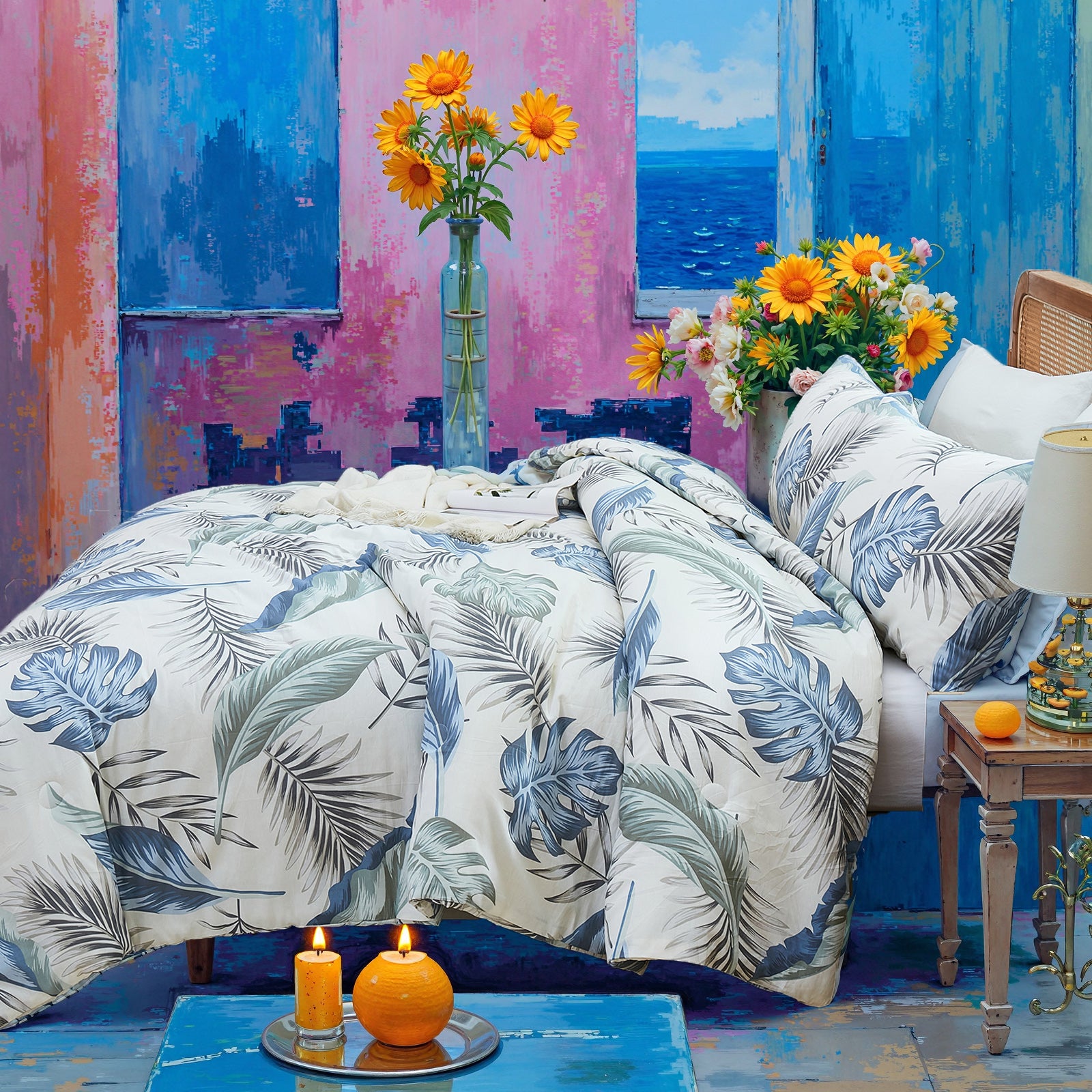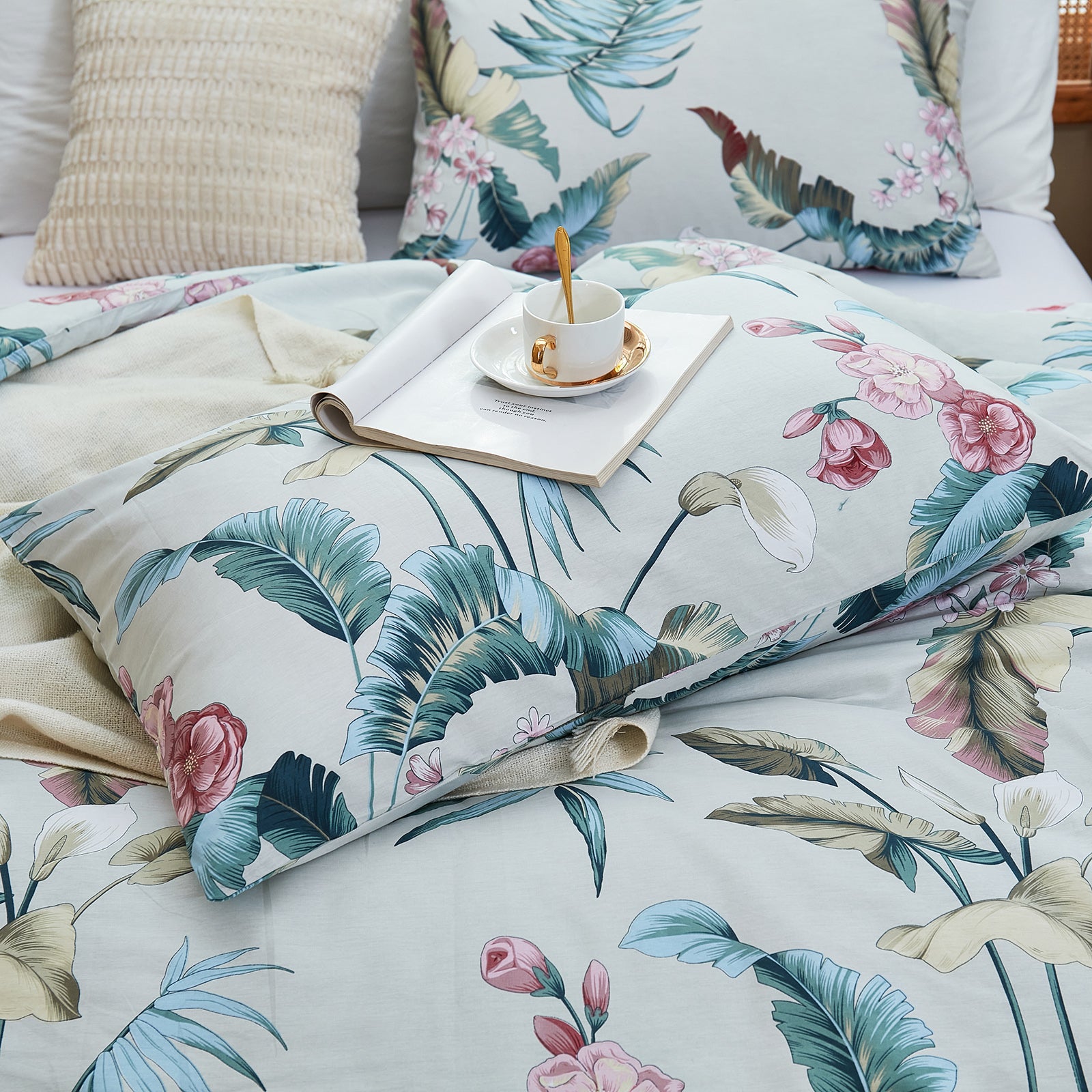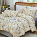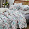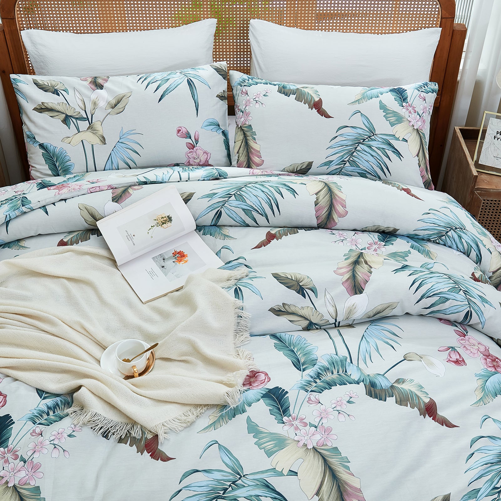 Floral Cotton Comforter Set – 100% Cotton Bedding with Elegant Botanical Print, Soft Lightweight All Season Quilt, King/Queen