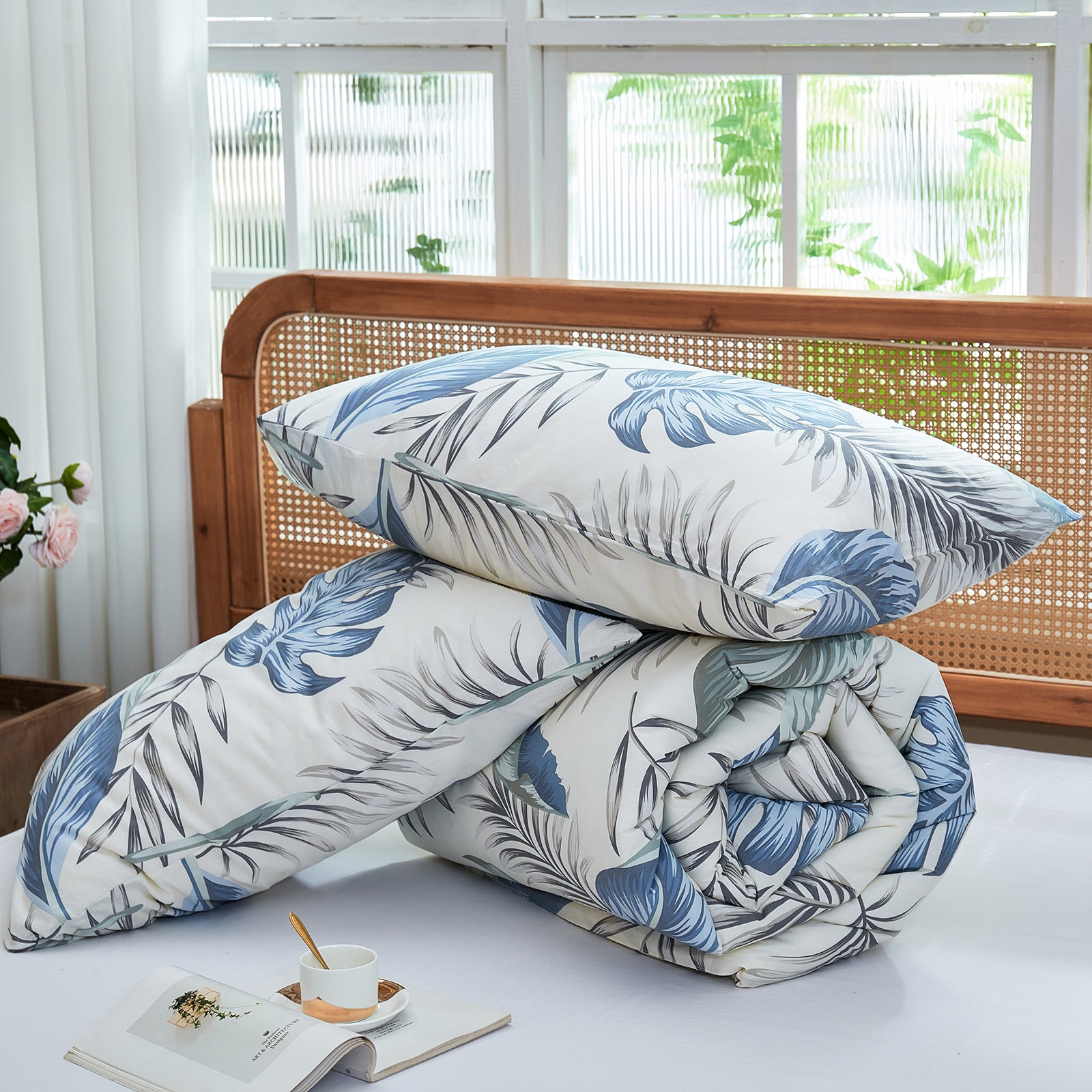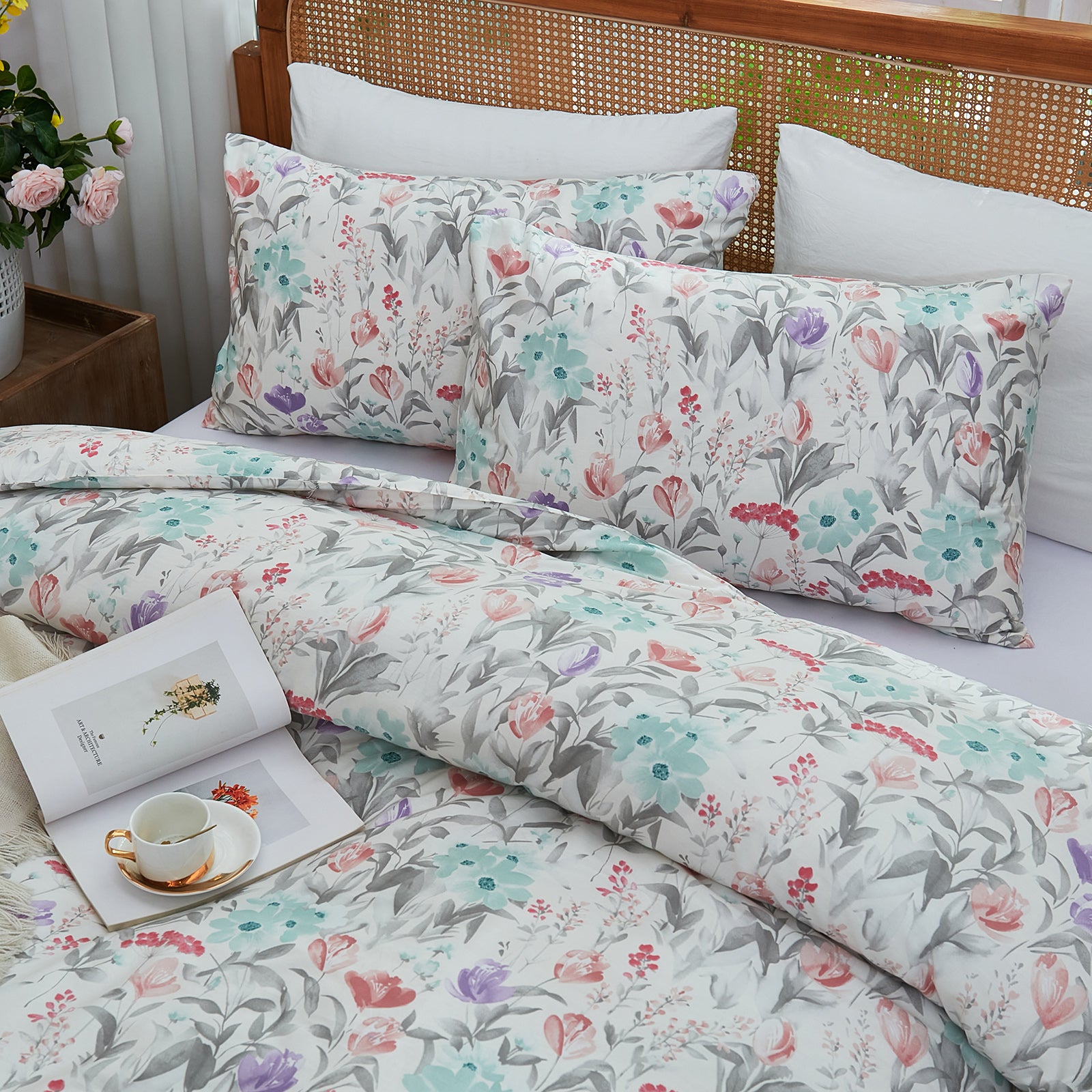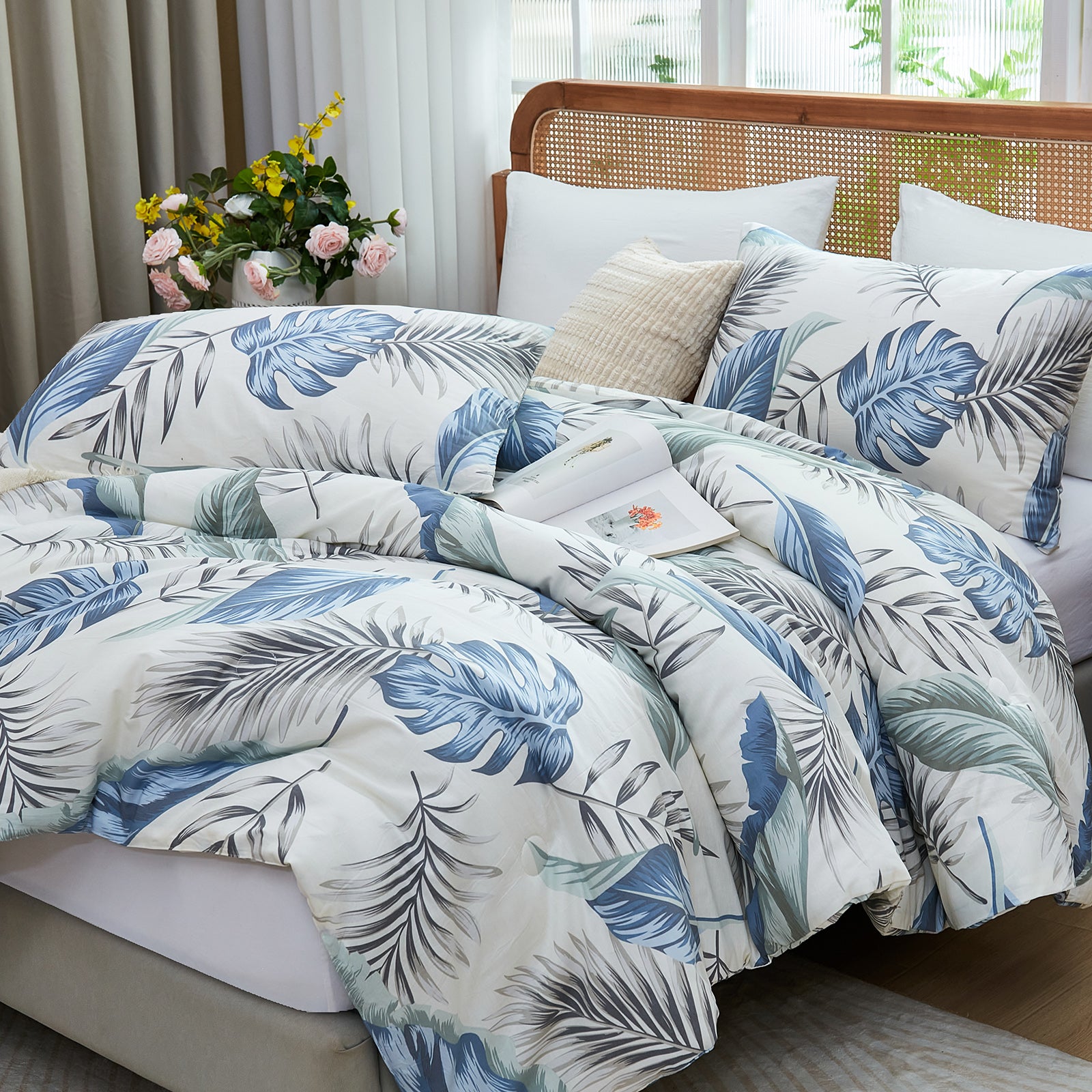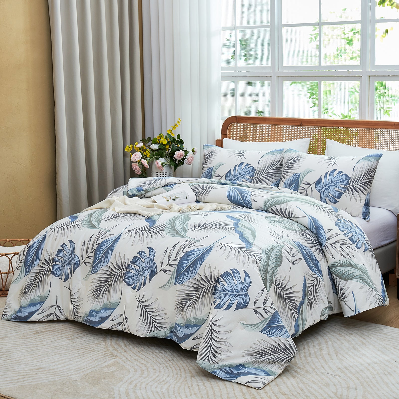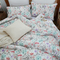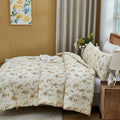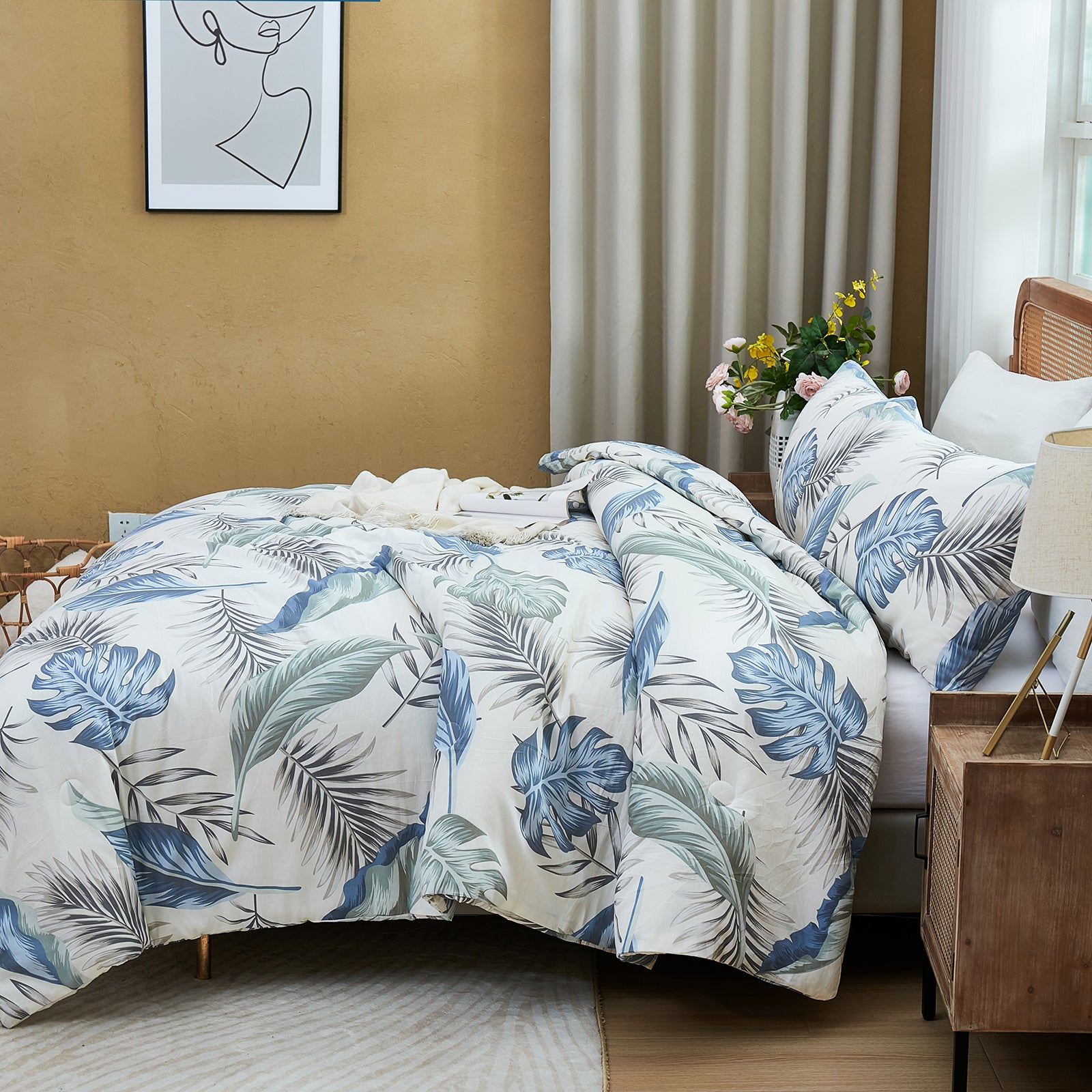 Floral Cotton Comforter Set – 100% Cotton Bedding with Elegant Botanical Print, Soft Lightweight All Season Quilt, King/Queen