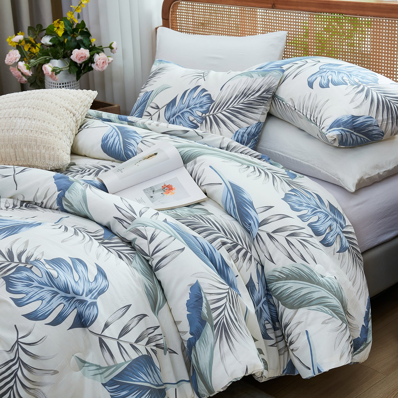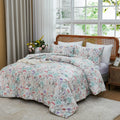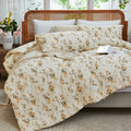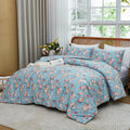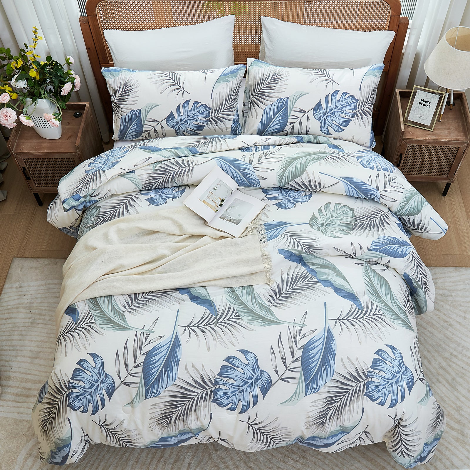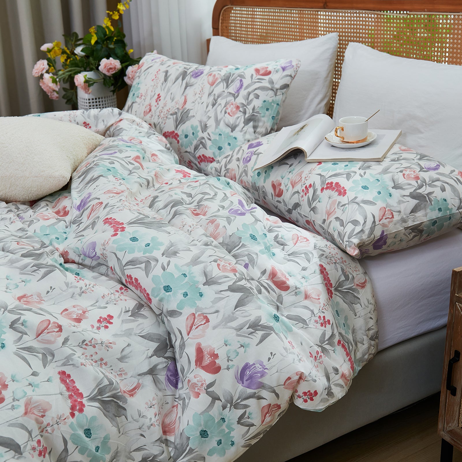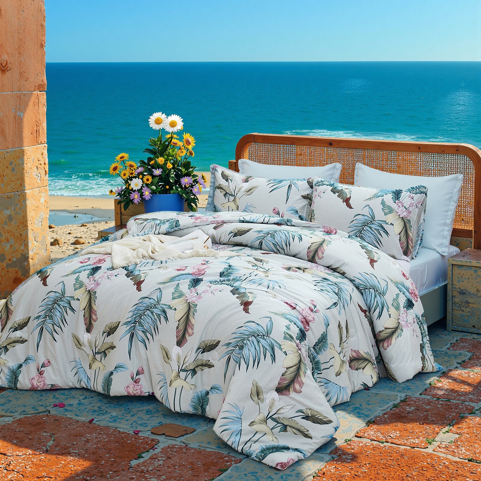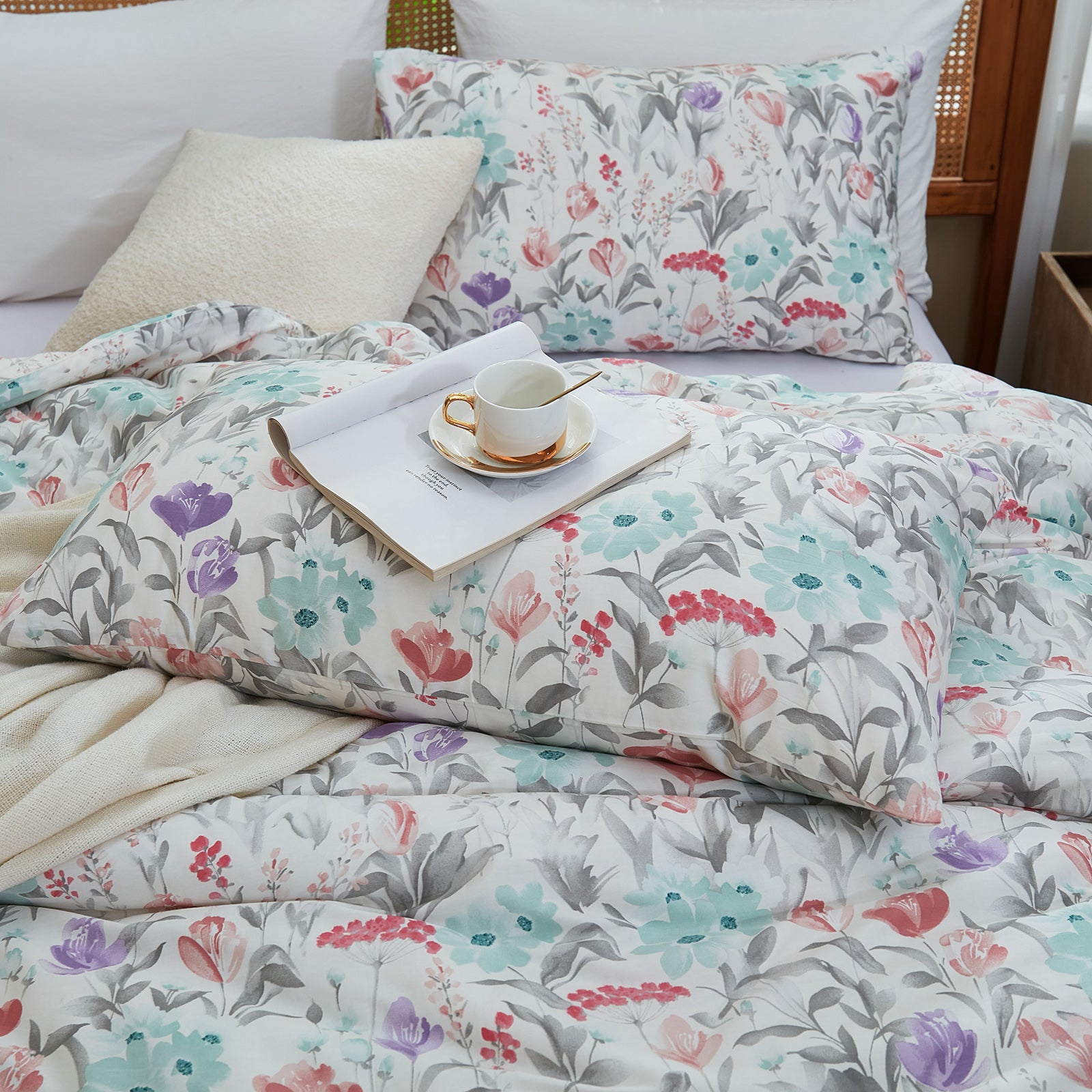 Floral Cotton Comforter Set – 100% Cotton Bedding with Elegant Botanical Print, Soft Lightweight All Season Quilt, King/Queen