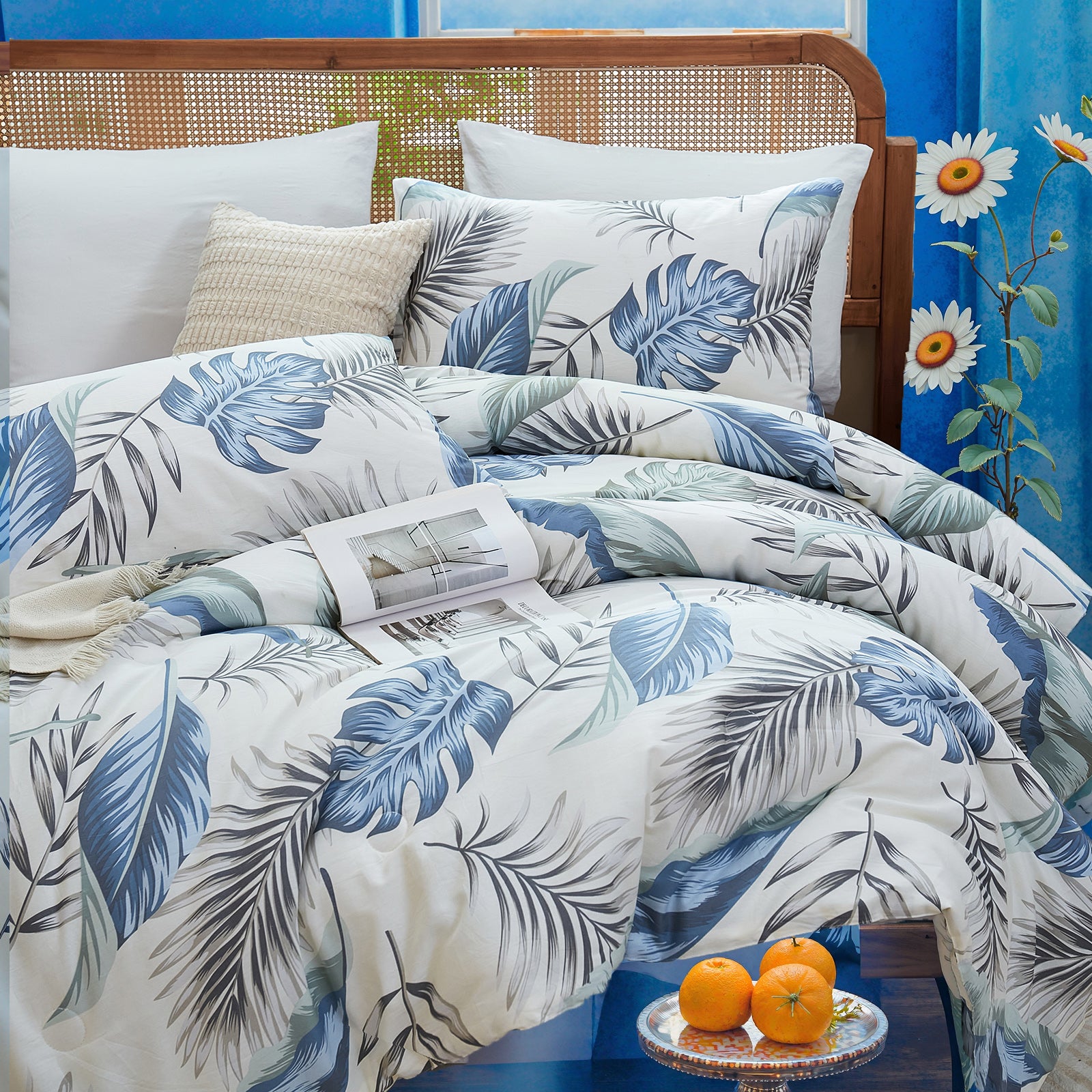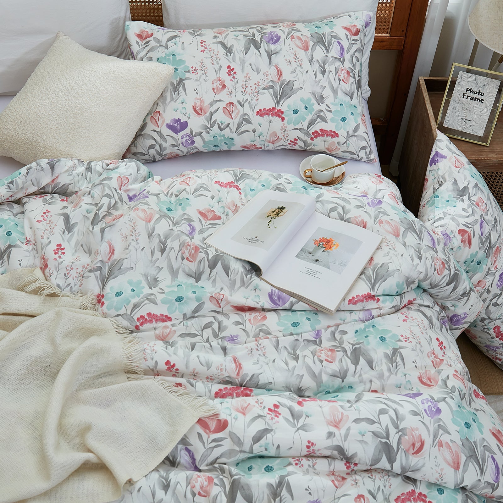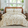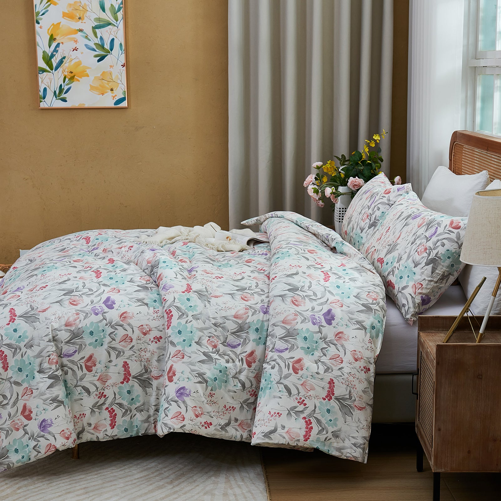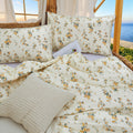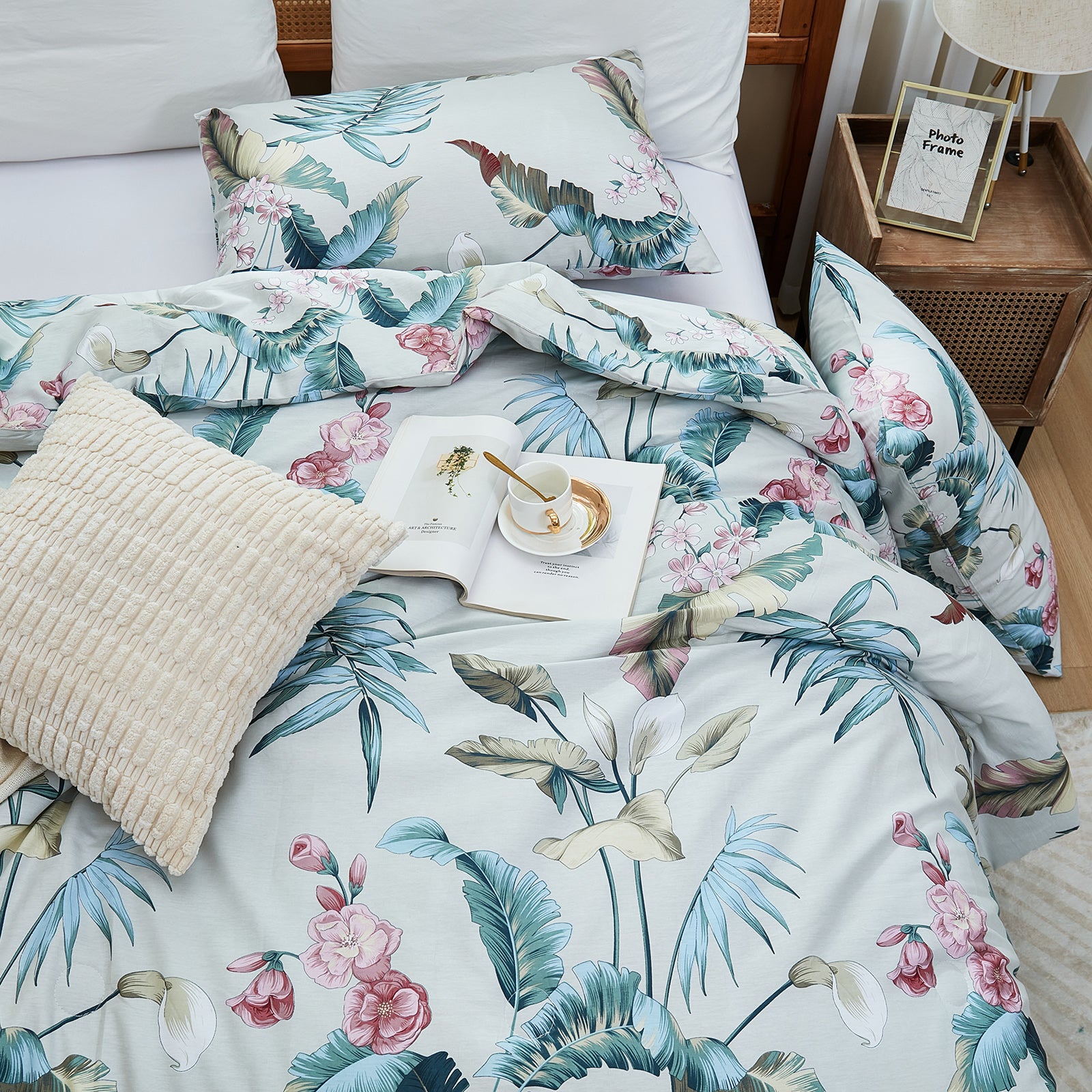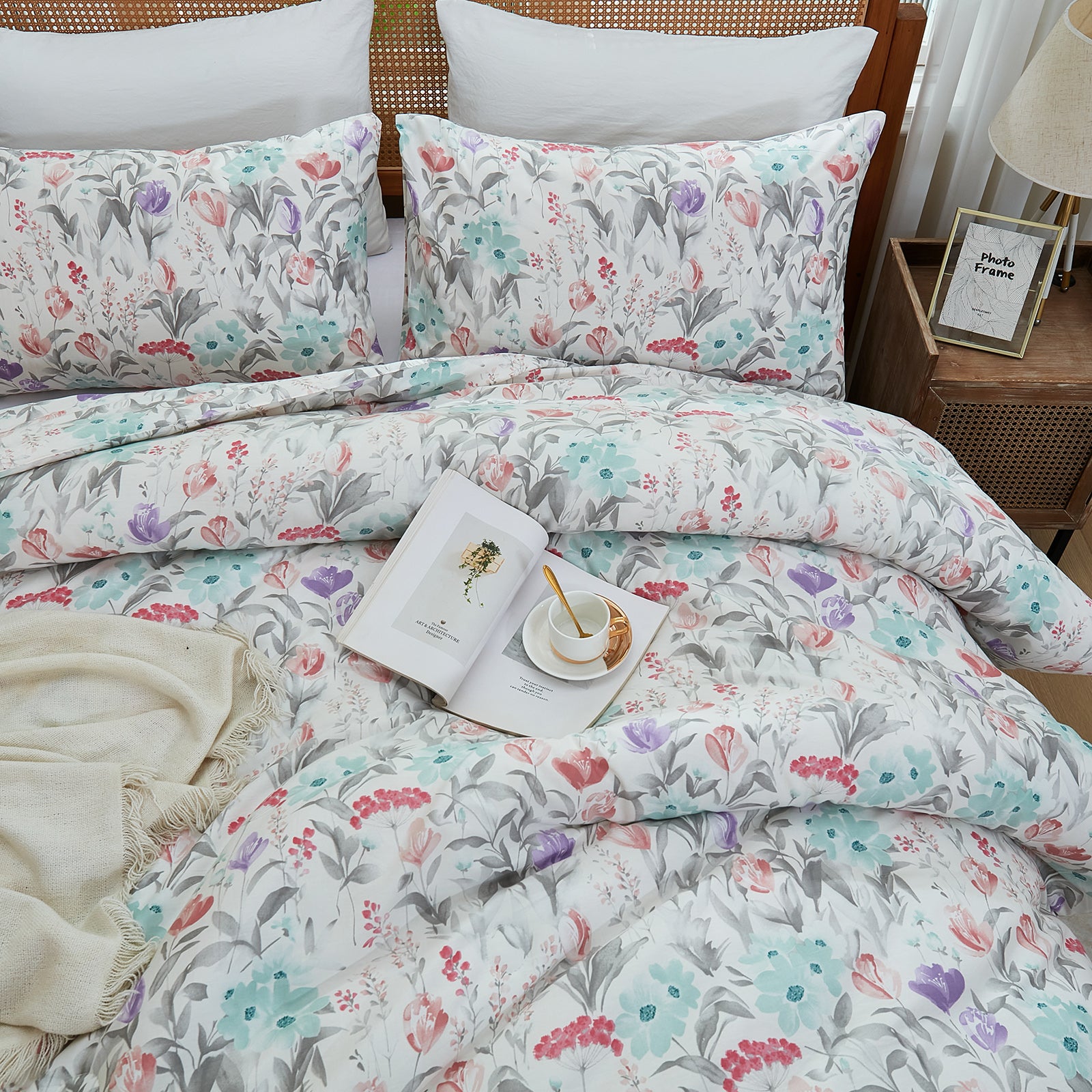 Floral Cotton Comforter Set – 100% Cotton Bedding with Elegant Botanical Print, Soft Lightweight All Season Quilt, King/Queen