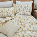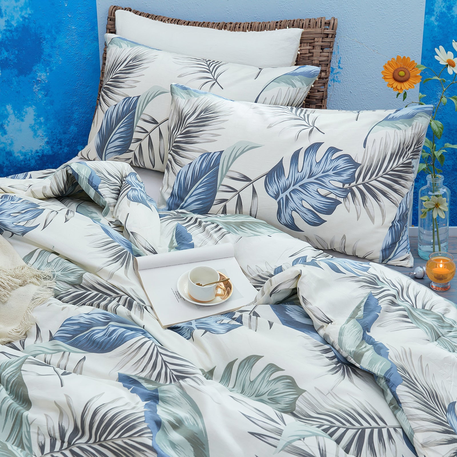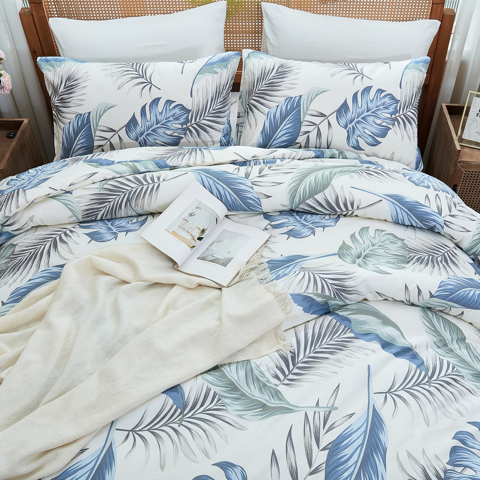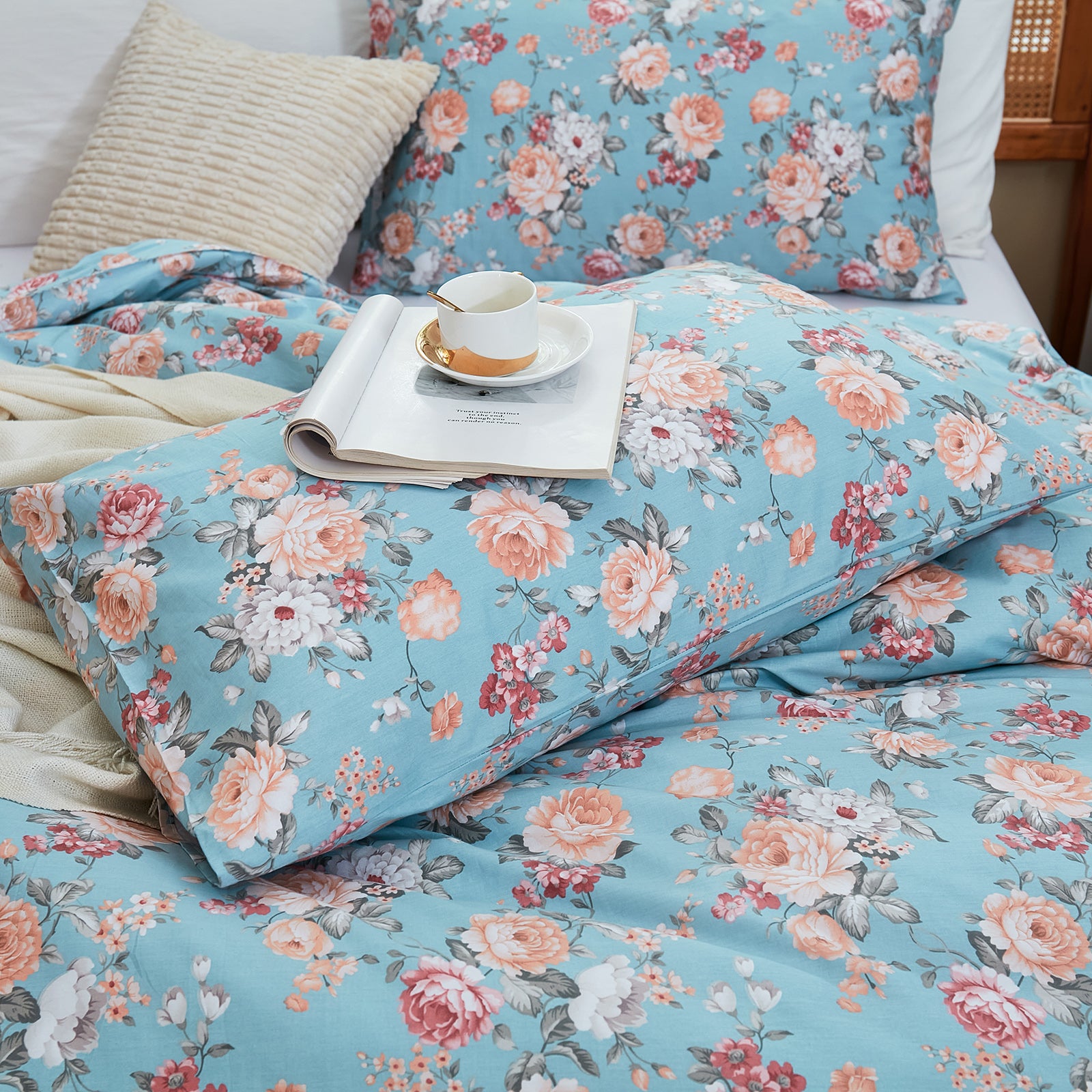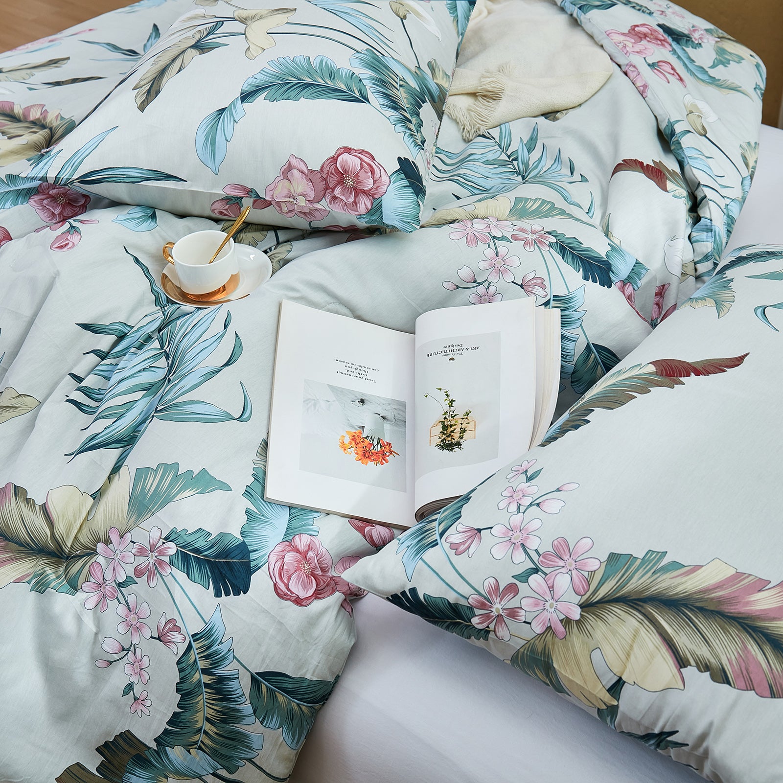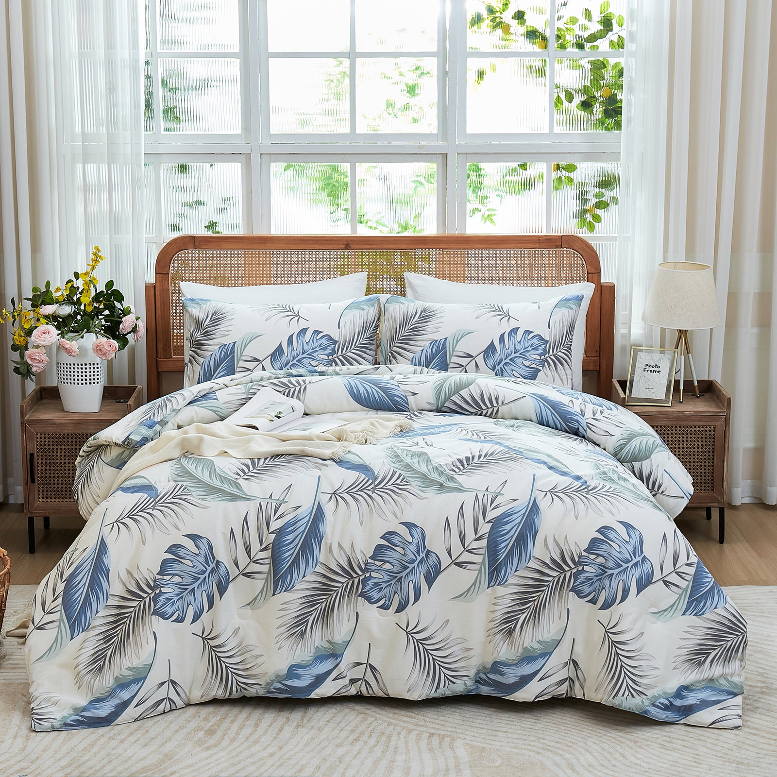Floral Cotton Comforter Set – 100% Cotton Bedding with Elegant Botanical Print, Soft Lightweight All Season Quilt, King/Queen