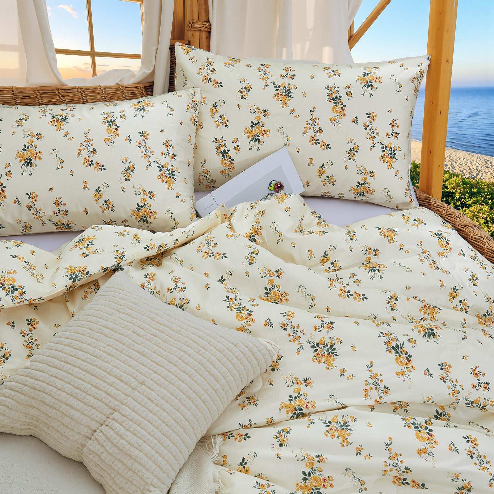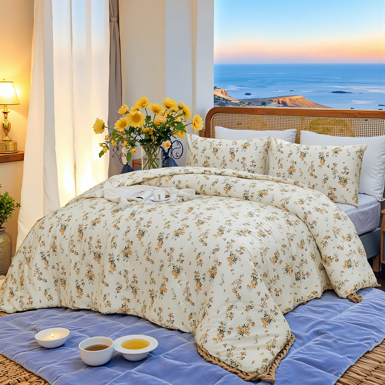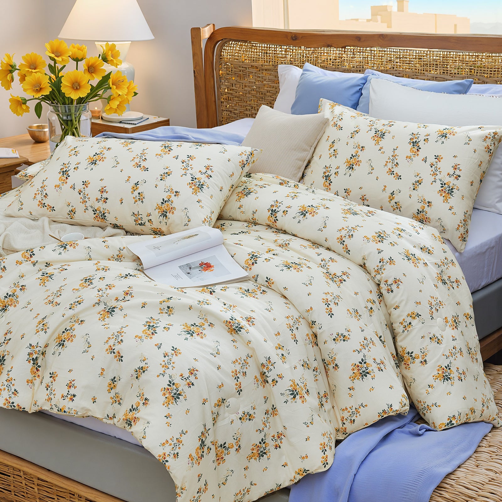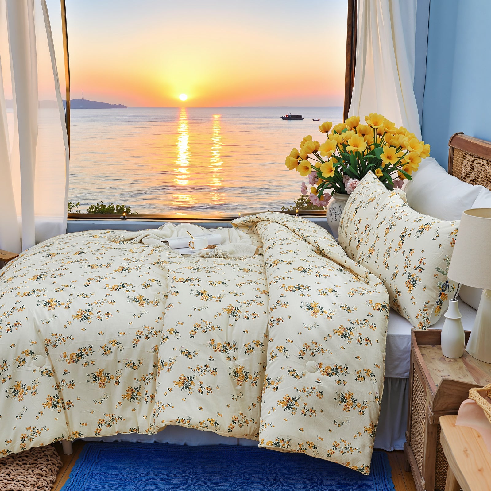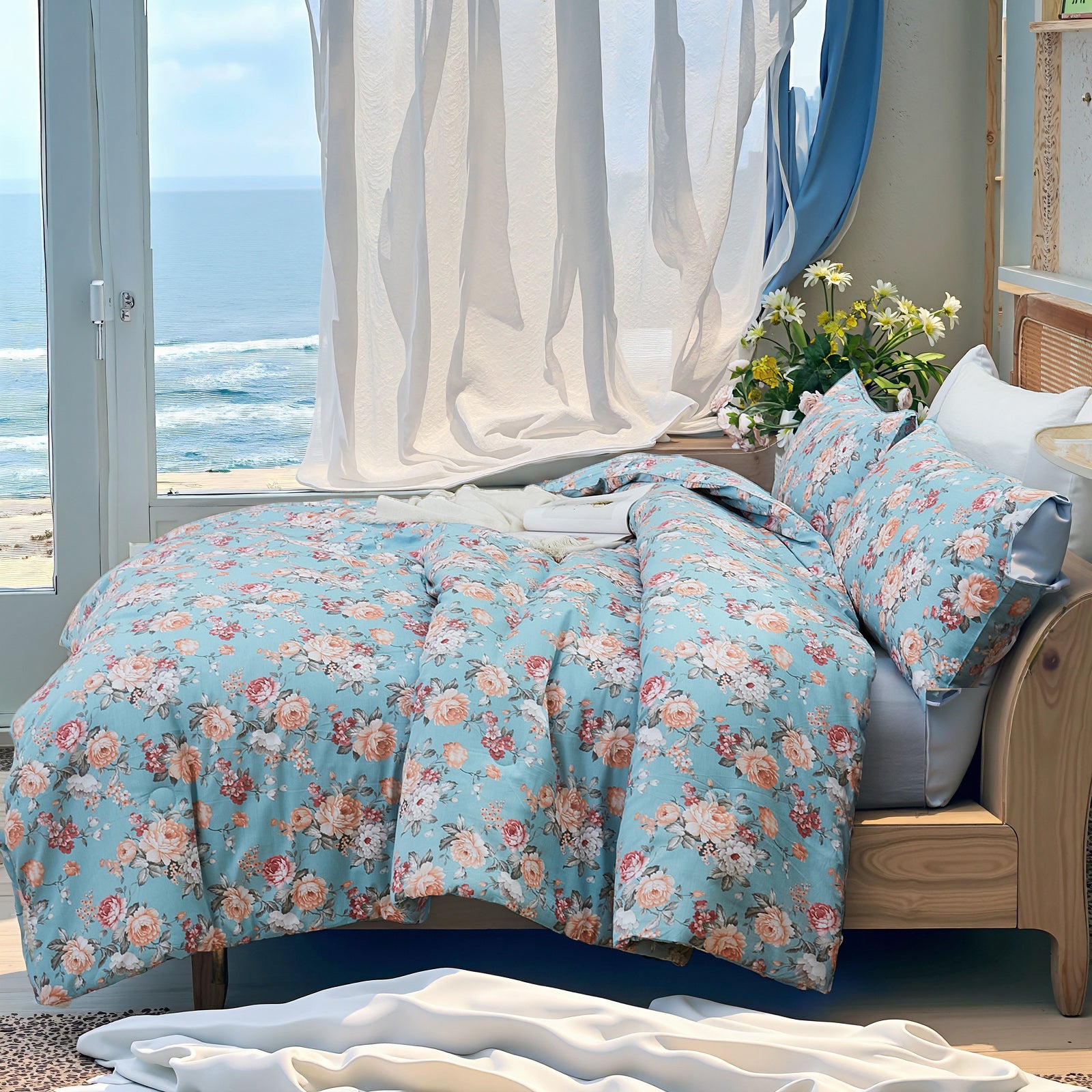 Designed for convenience, this comforter set is machine washable, fade-resistant, and shrink-resistant, maintaining its beauty after repeated washes. Perfect for creating a cozy, stylish, and inviting sleep environment, the Floral Cotton Comforter Set makes a timeless addition to any home.