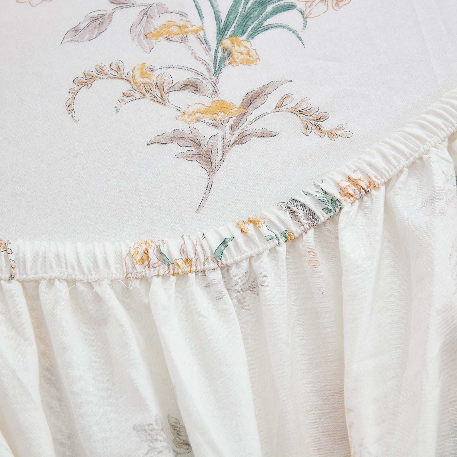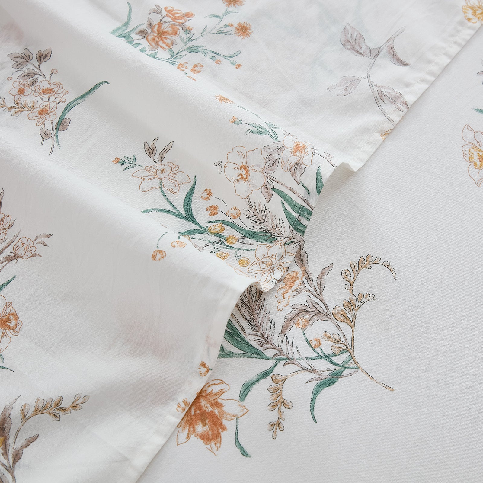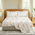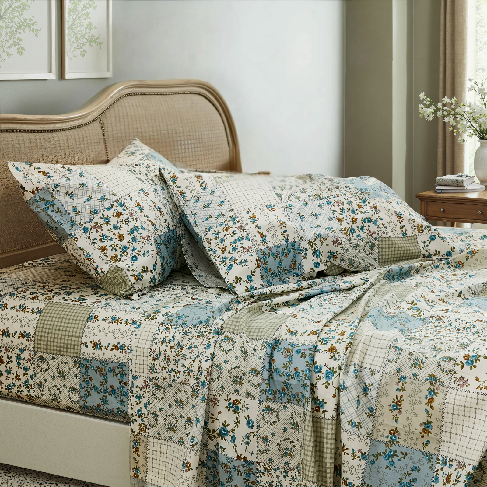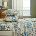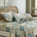 Bring quiet vintage elegance to your bed with this Floral Patchwork Cotton Percale Sheet Set. Woven from premium natural cotton in a percale finish, these sheets feel crisp, cool, and smooth to the touch. They are lightweight and breathable, perfect for warm sleepers in summer while staying cozy in cooler months.