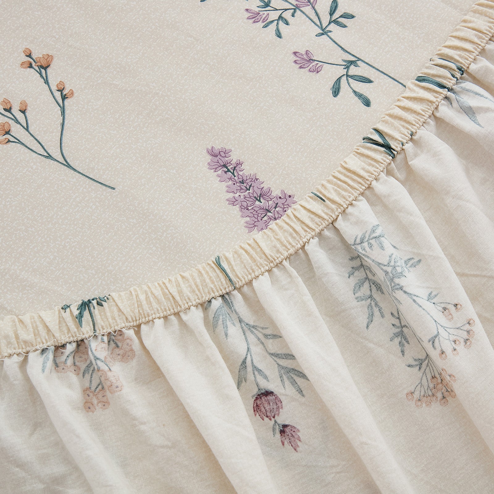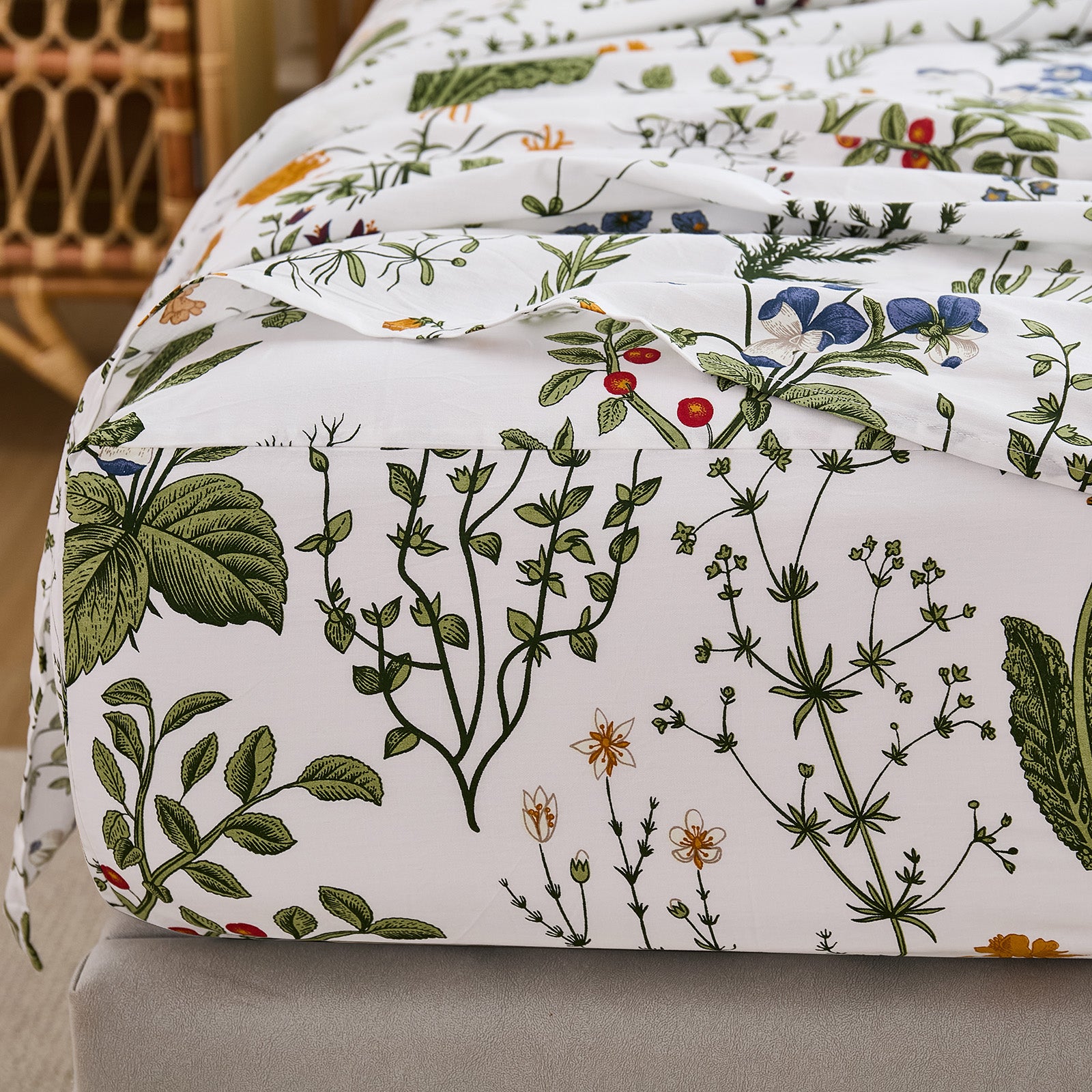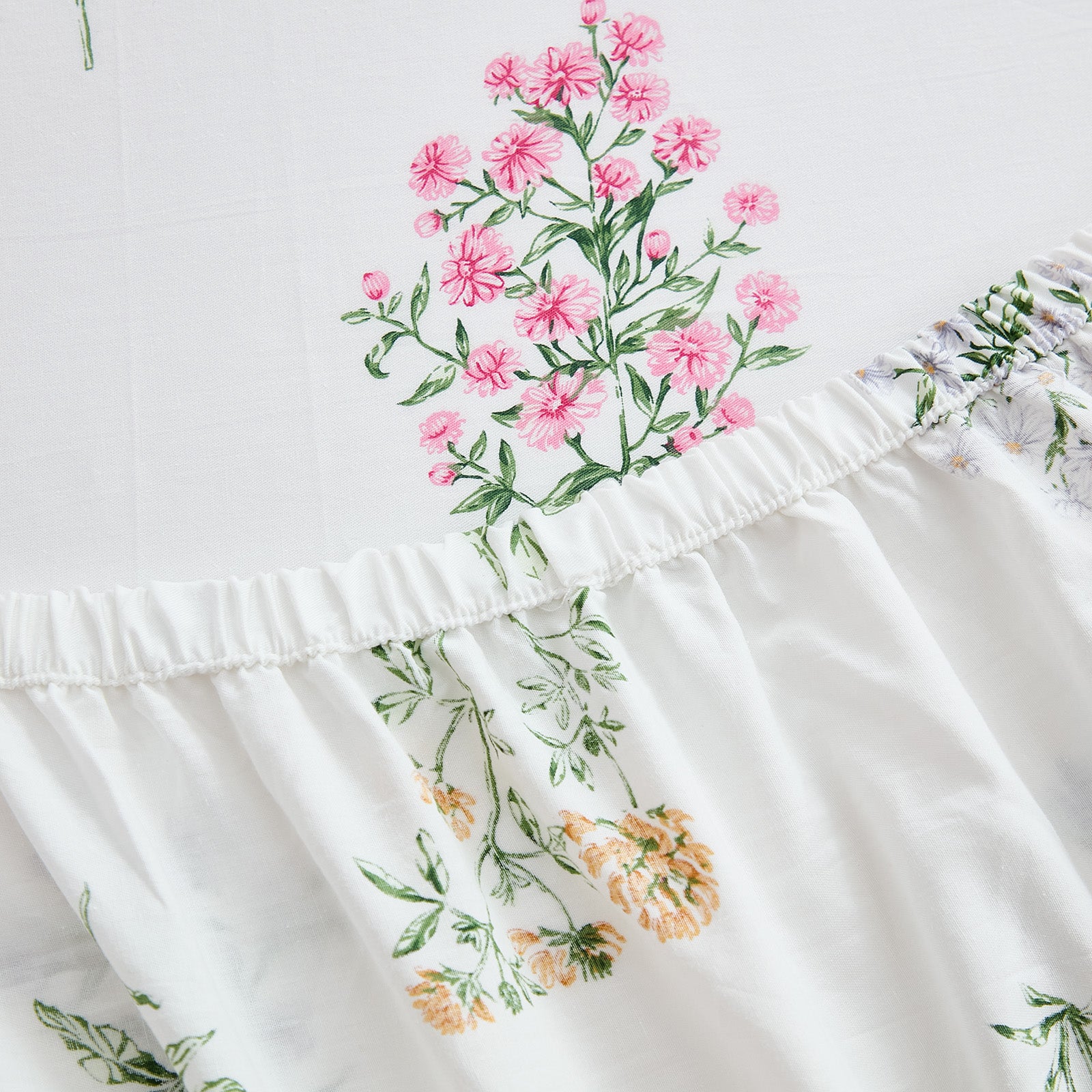 Bring quiet vintage elegance to your bed with this Floral Patchwork Cotton Percale Sheet Set. Woven from premium natural cotton in a percale finish, these sheets feel crisp, cool, and smooth to the touch. They are lightweight and breathable, perfect for warm sleepers in summer while staying cozy in cooler months.
