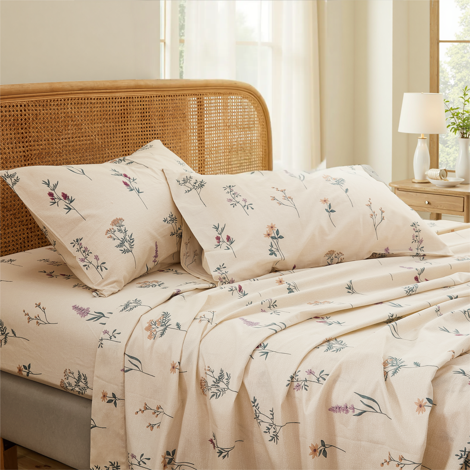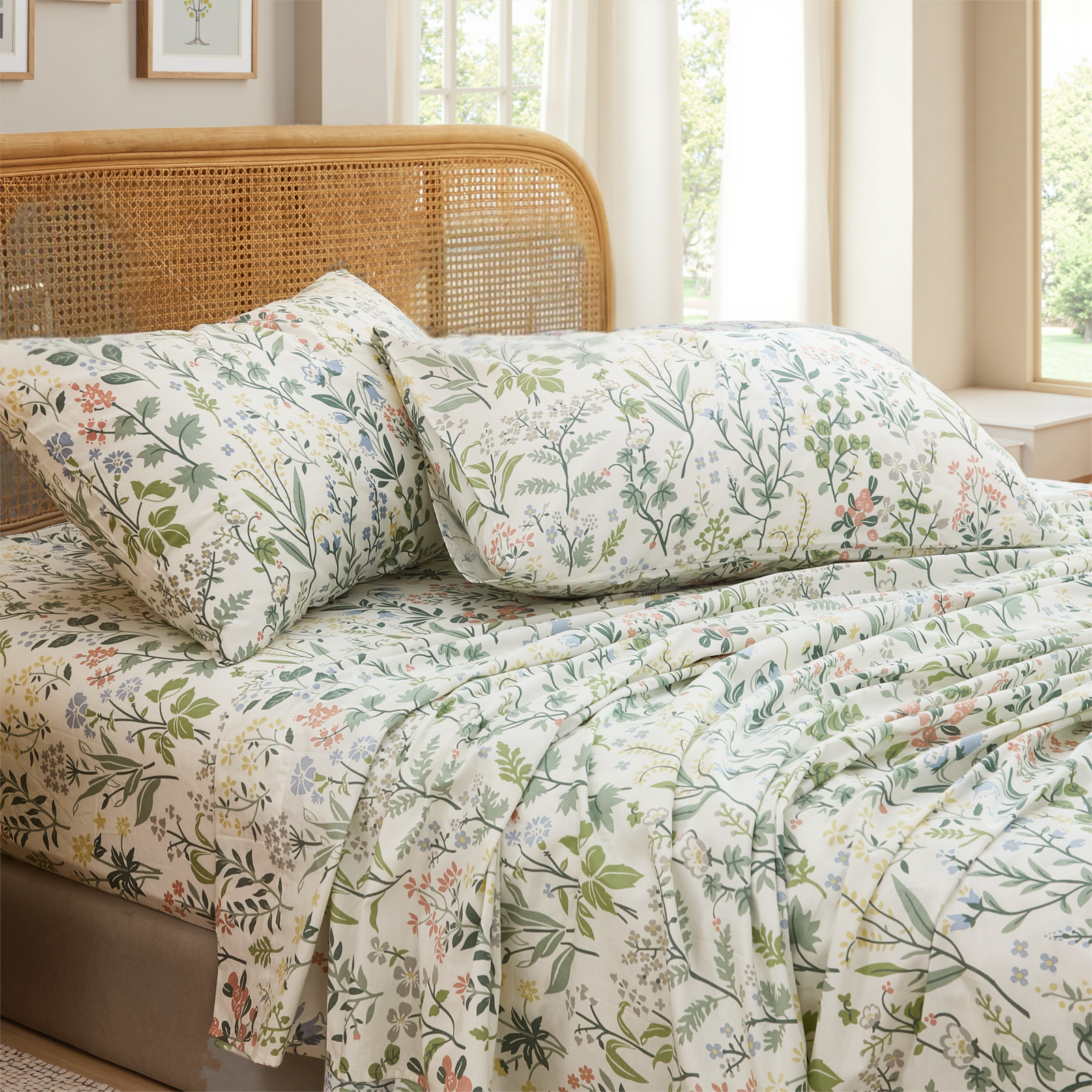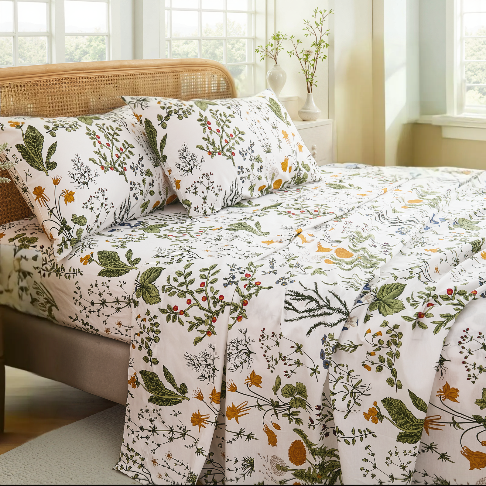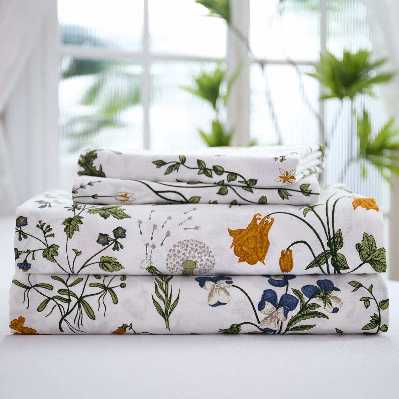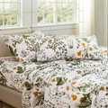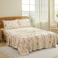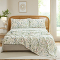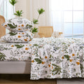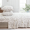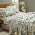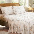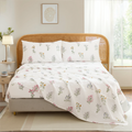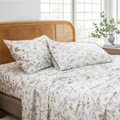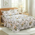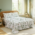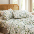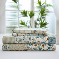 Floral Patchwork Cotton Percale Sheets Set - Crisp Cooling 4-Piece Bedding with 17.5in Deep Pocket Fitted Sheet, Soft Breathable