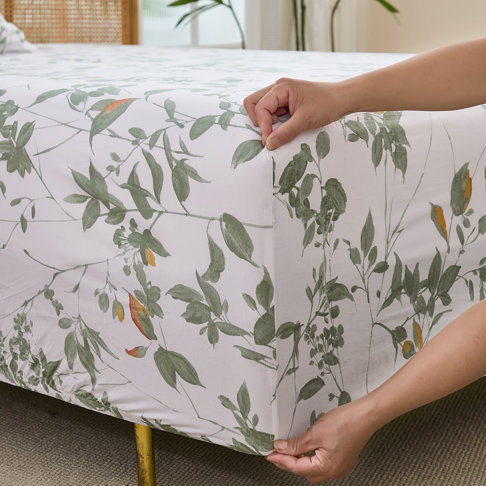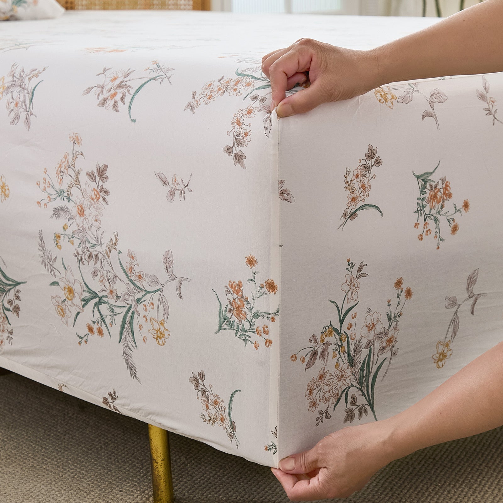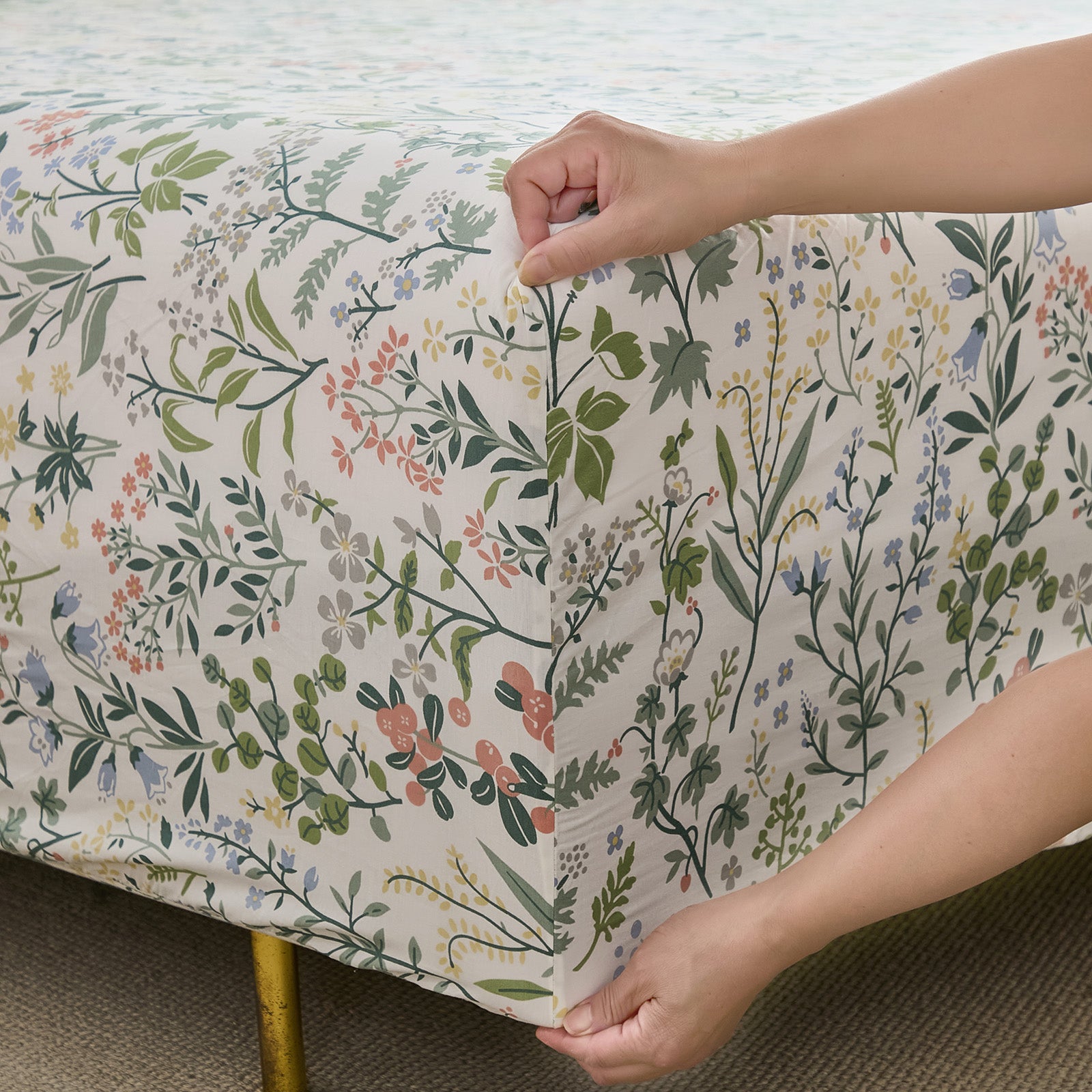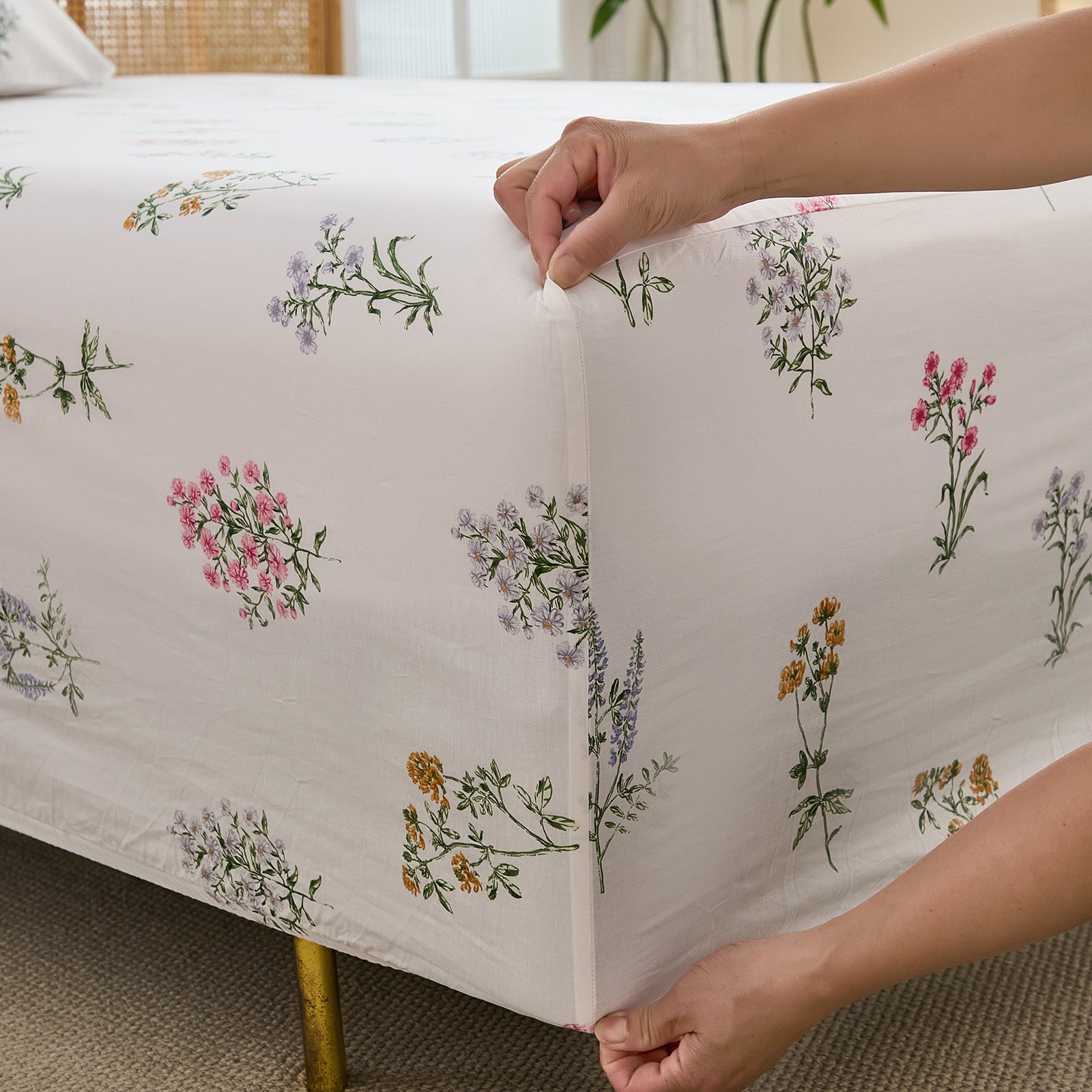 Floral Patchwork Cotton Percale Sheets Set - Crisp Cooling 4-Piece Bedding with 17.5in Deep Pocket Fitted Sheet, Soft Breathable