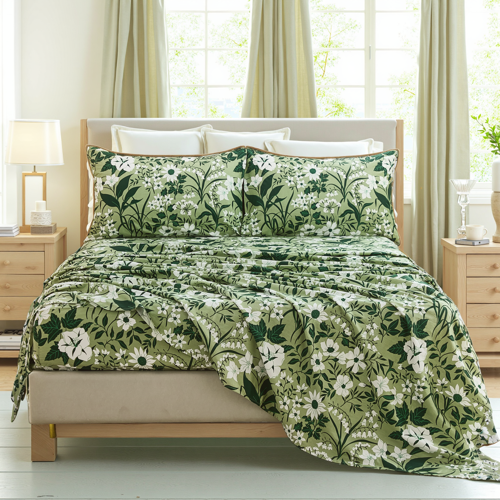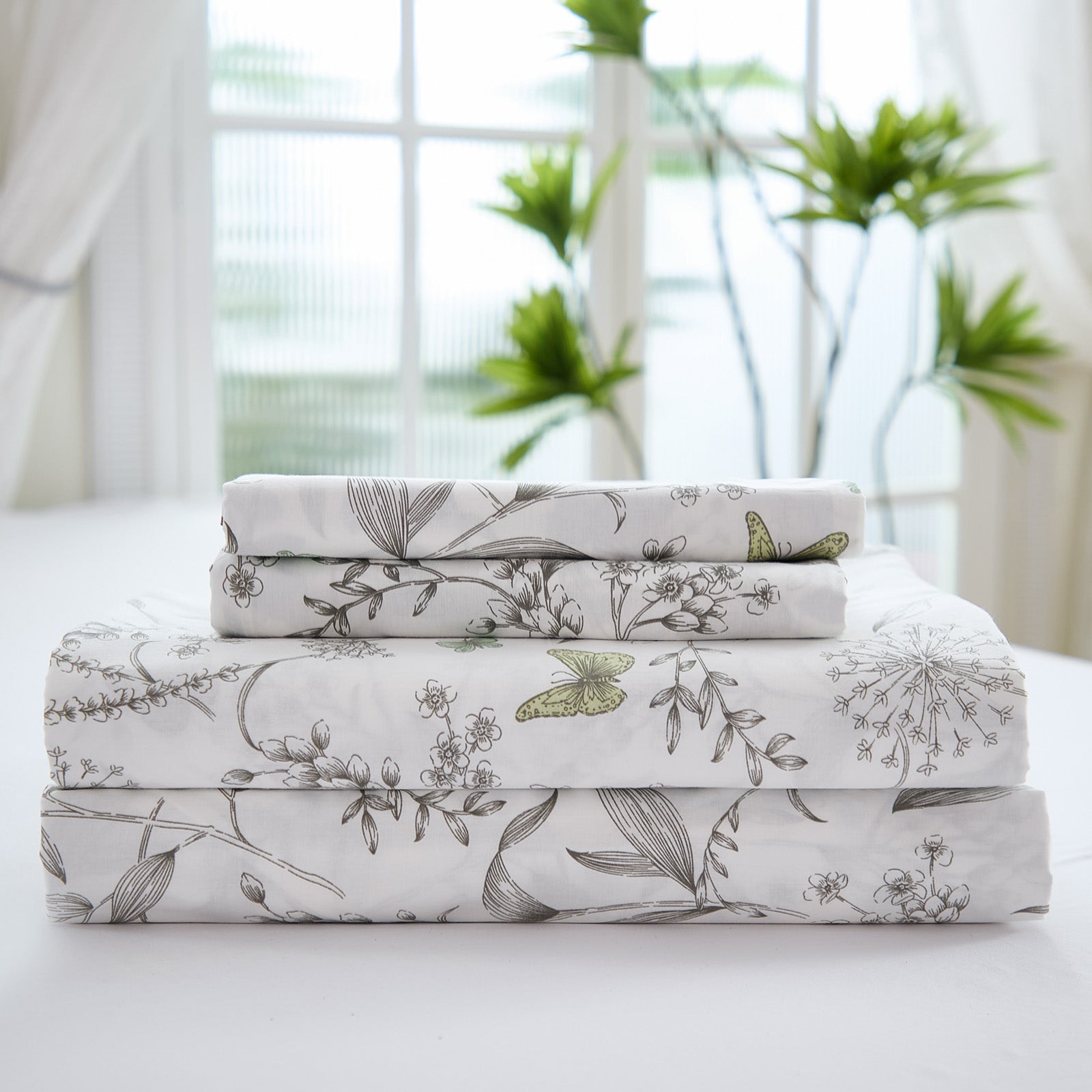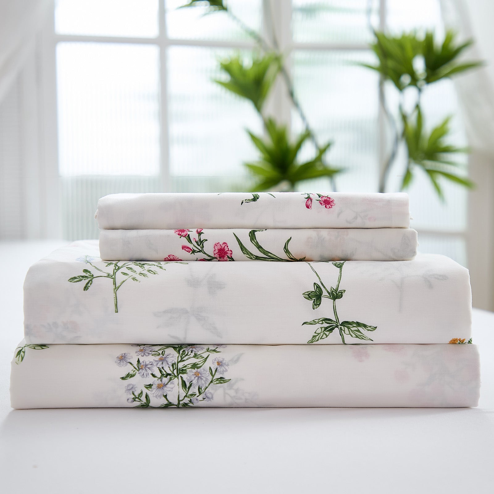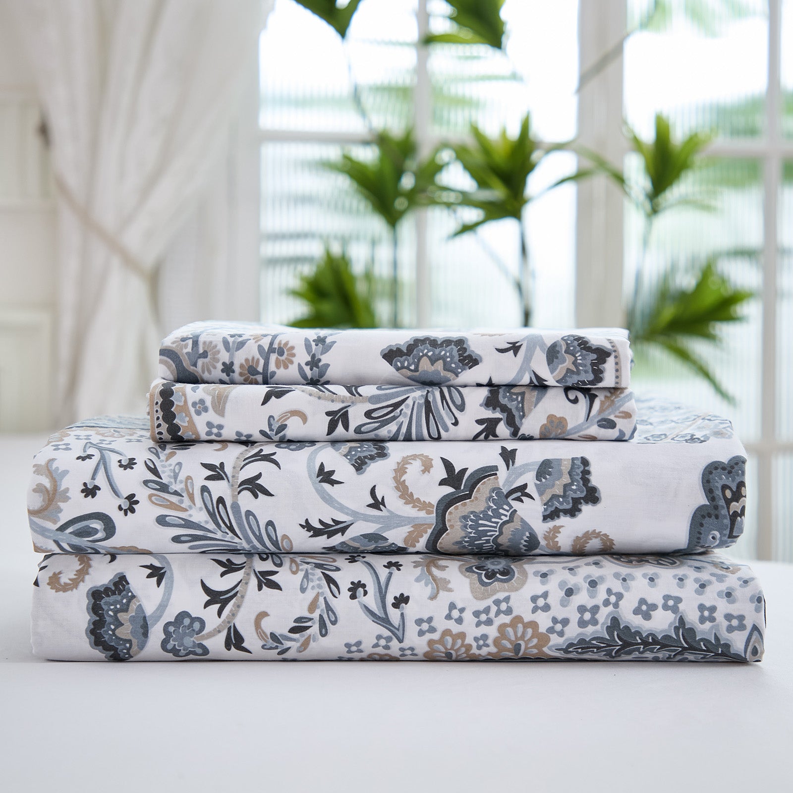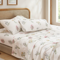 Available in Queen and King, each 4 piece set includes a flat sheet, fitted sheet, and two pillowcases for a coordinated look. Easy to care for with cold gentle washing and low tumble drying, these sheets stay fresh, soft, and beautiful over time.