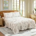 The shabby chic floral patchwork design adds a soft, calming mood to your space, pairing beautifully with farmhouse, cottage, or romantic decor. Thoughtful construction includes reinforced seams for long lasting use and a fitted sheet with a 17.5 inch deep pocket plus full elastic to stay securely in place.