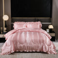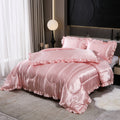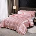 Luxury Satin Ruffled Comforter Set with Body Pillow Cover – Soft Silky Lightweight Fluffy All Season Bedding, Elegant