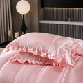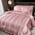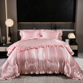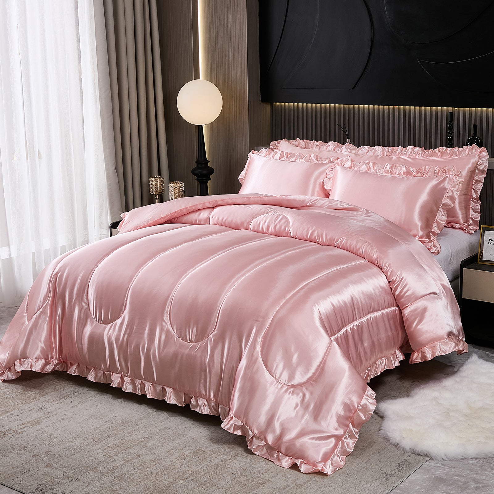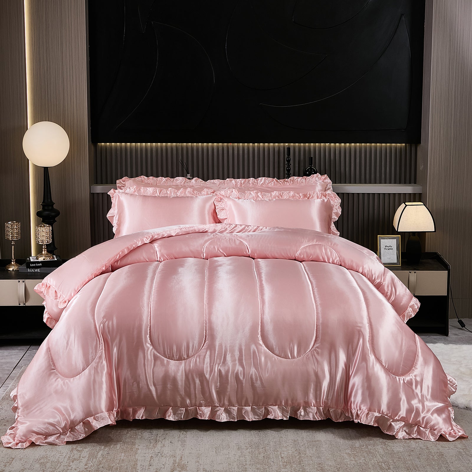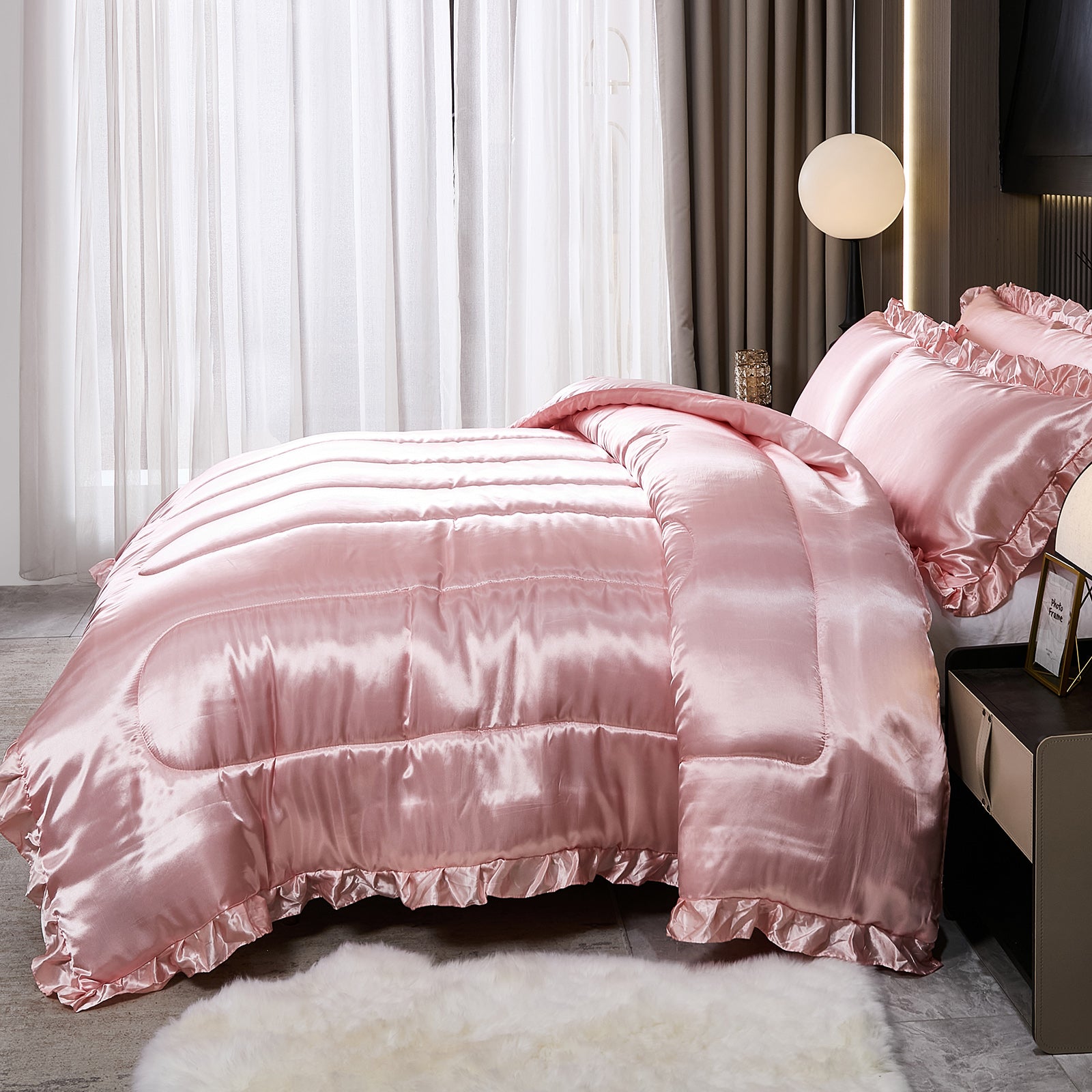 Bring luxury and elegance to your bedroom with the Satin Ruffled Comforter Set with Body Pillow Cover. Designed with a silky satin finish and romantic ruffled fringe, this comforter set adds timeless charm and sophistication to any décor.