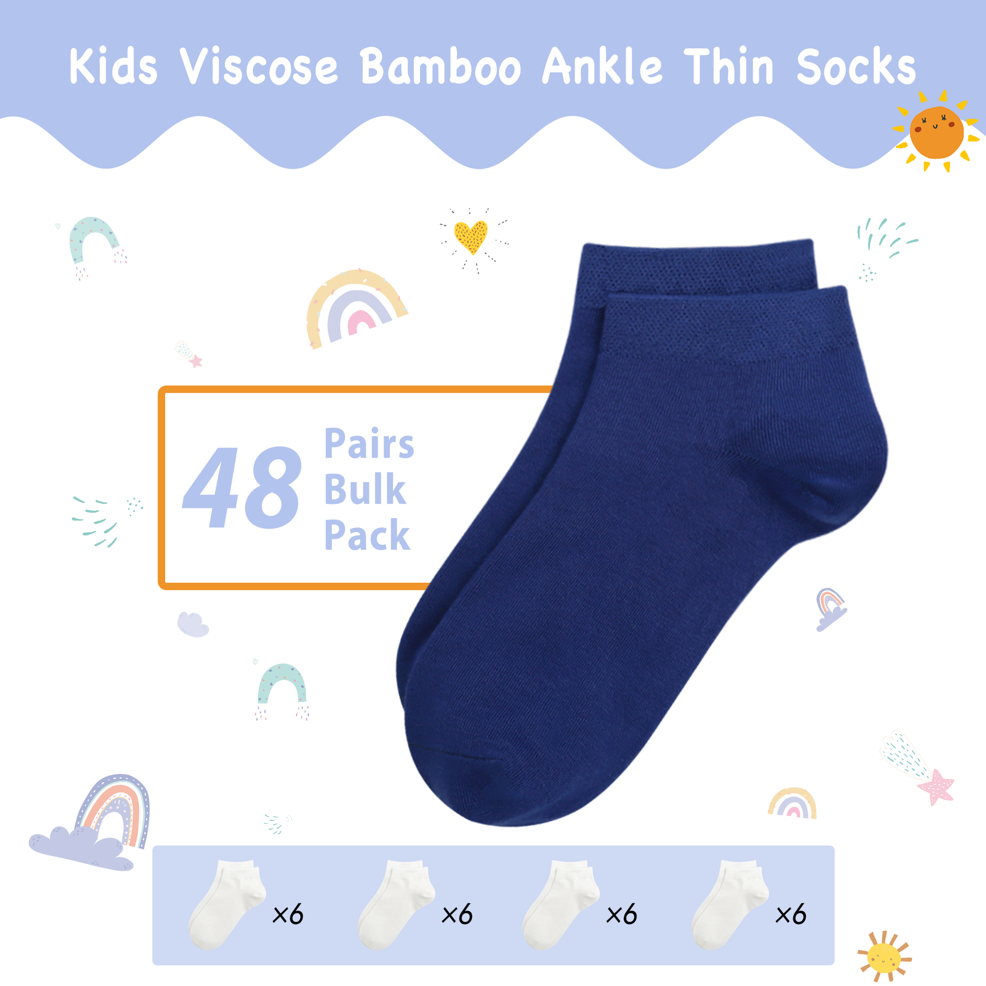 Kids Viscose Bamboo Ankle Socks Unisex Thin in Bulk Soft Boys Girls Stretch School Wholesale Socks 48 Pairs