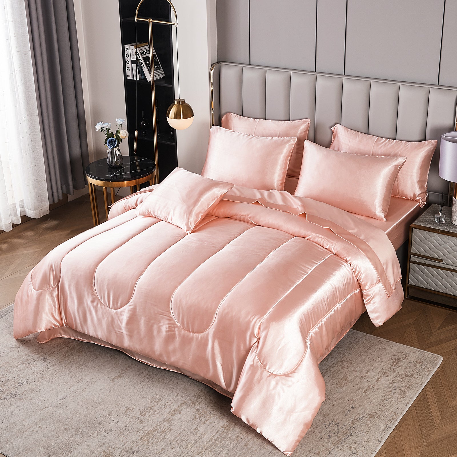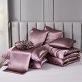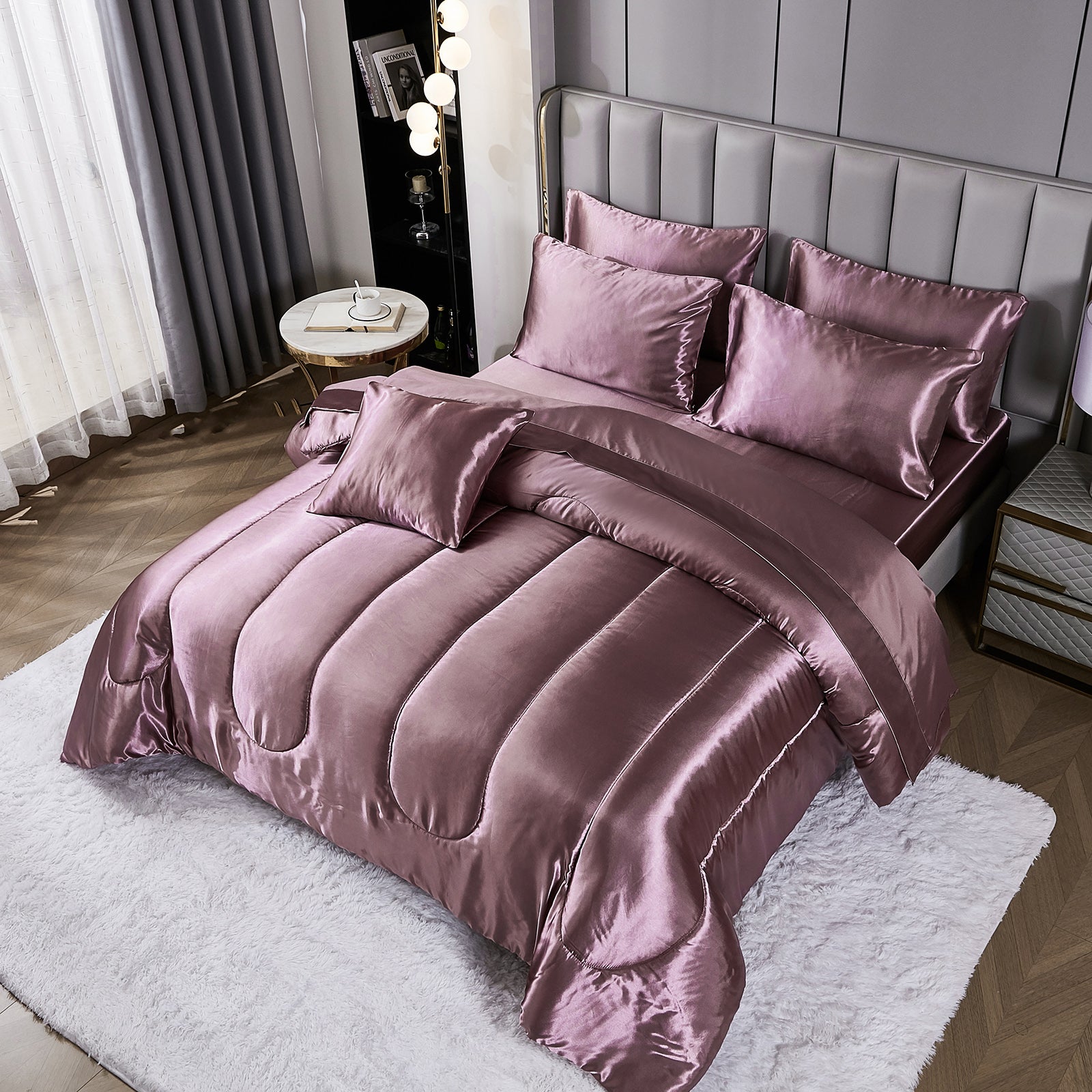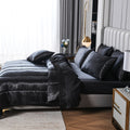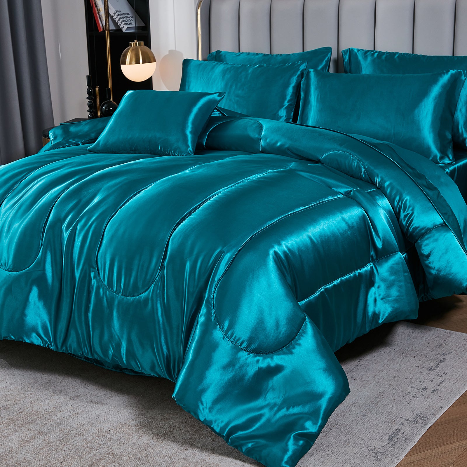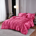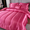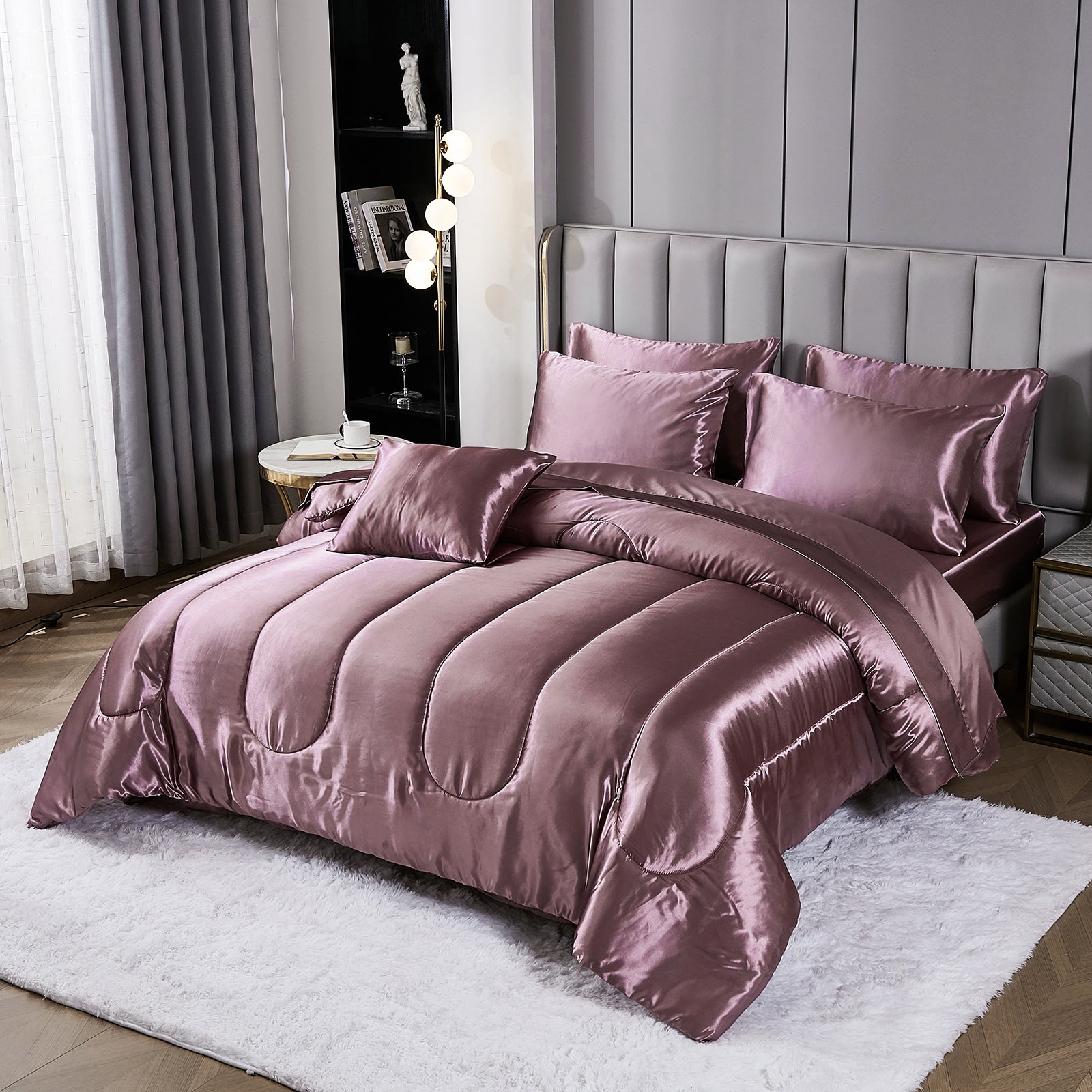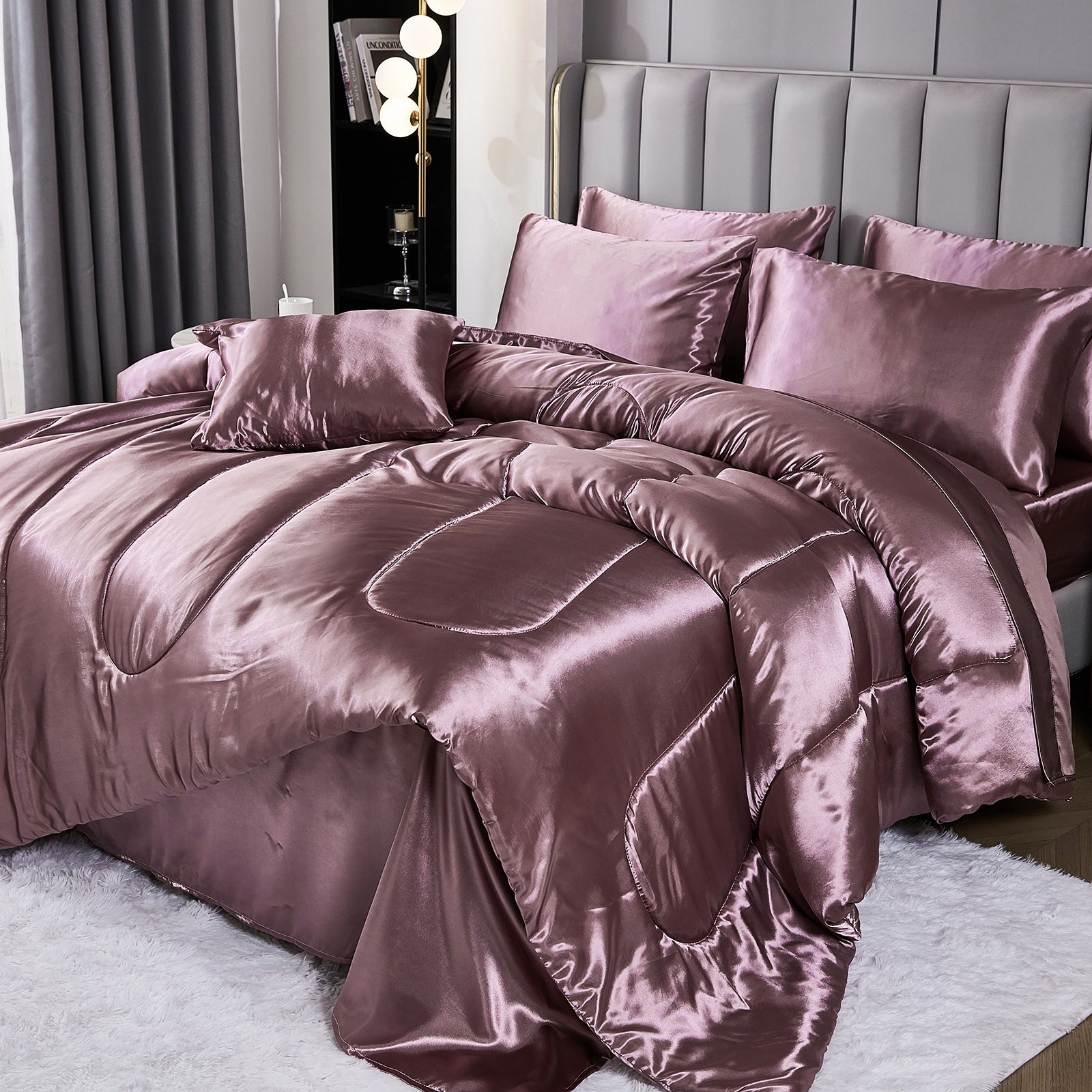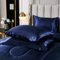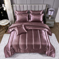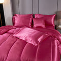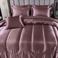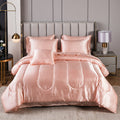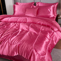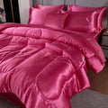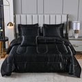 Elevate your bedroom with this Luxury Satin Comforter Set Bed in a Bag, designed to deliver elegance and comfort in one complete package. Crafted with a silky satin finish, the fabric combines the softness of silk with the durability of microfiber, giving your bedding a smooth, pearl-like sheen that brightens any room.