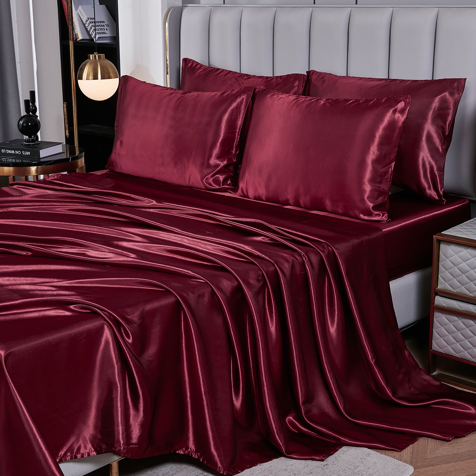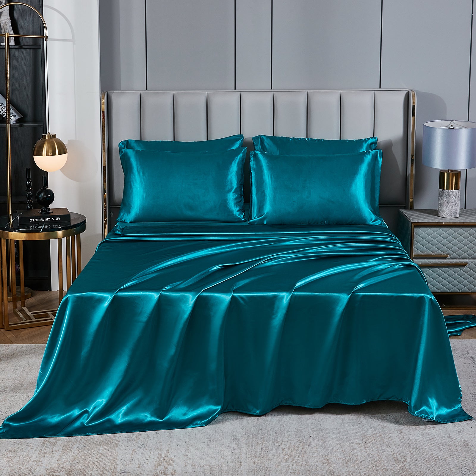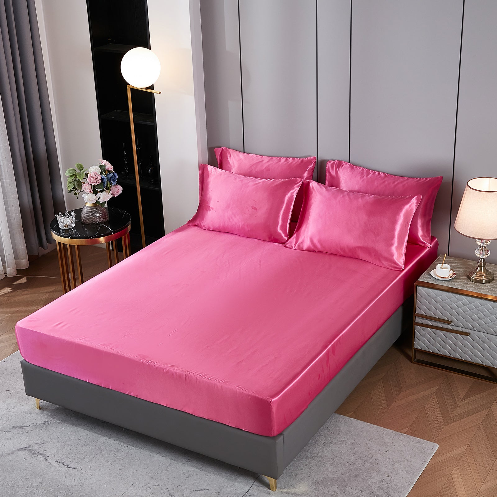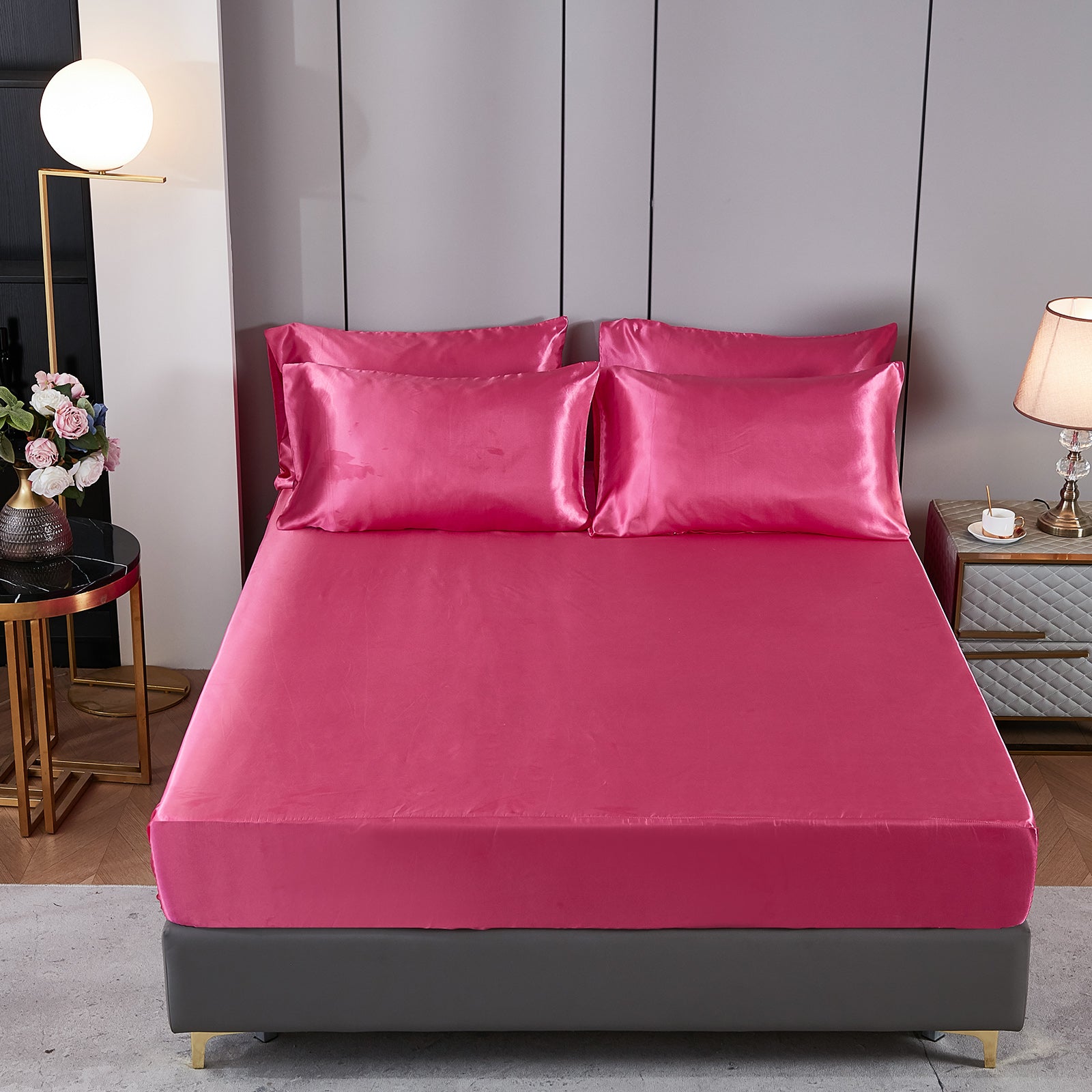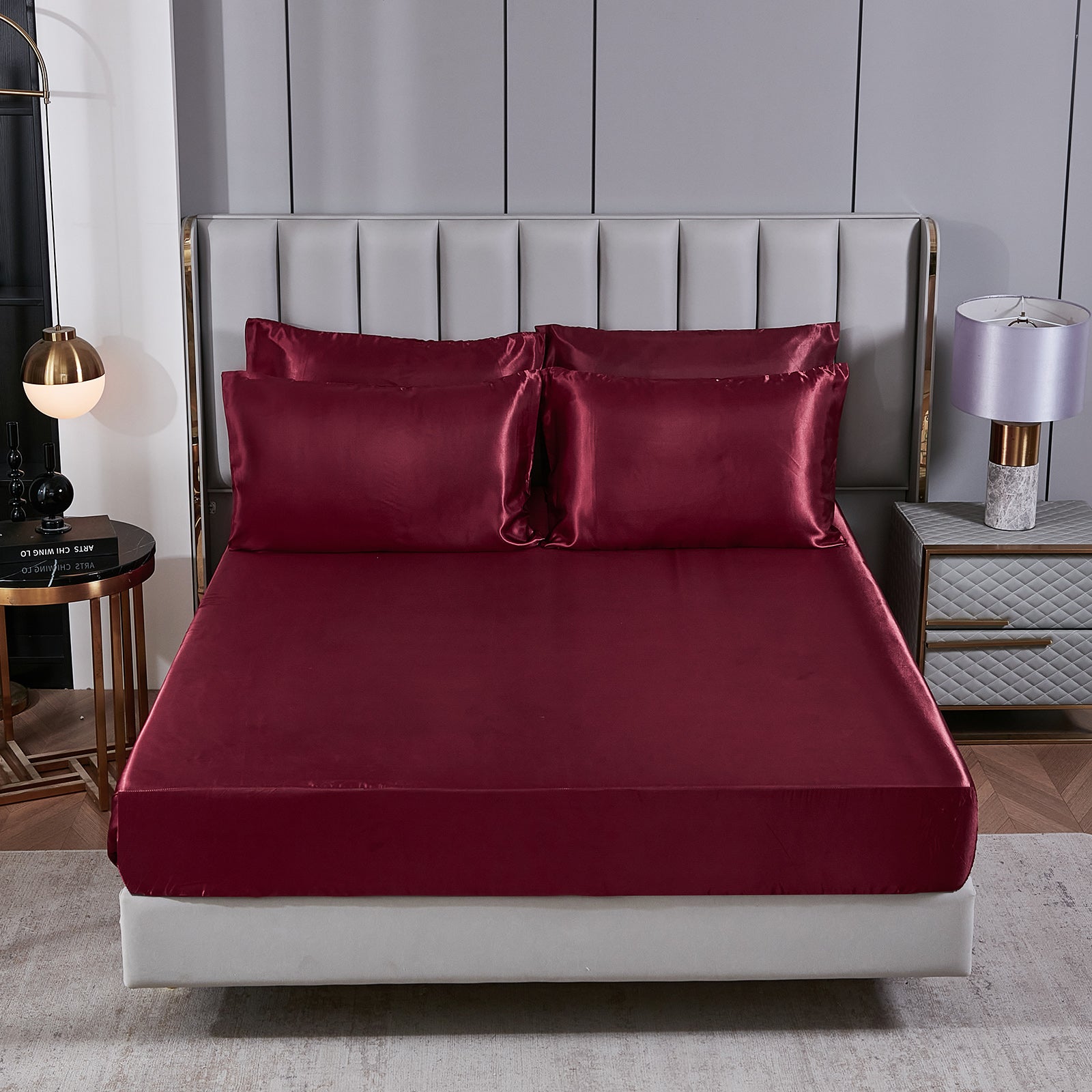 Elevate your bedroom with this Luxury Satin Comforter Set Bed in a Bag, designed to deliver elegance and comfort in one complete package. Crafted with a silky satin finish, the fabric combines the softness of silk with the durability of microfiber, giving your bedding a smooth, pearl-like sheen that brightens any room.